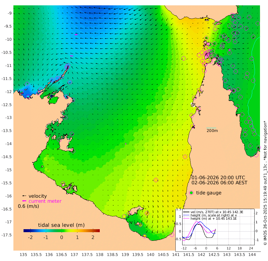 43cm/s -87T +3cm/s rms + 7cm/s -42T. ARA-GOC87 57m 16cm/s -157T +3cm/s rms + 2cm/s -2T. ARA-GOC87 60m 44cm/s -95T +2cm/s rms + 3cm/s 61T. ARA-GOC87 47m -26cm Daru -38cm Bobo Island -10cm Meer Island Barge -25cm Bramble Cay -29cm Unnamed Cay -32cm Pearce Cay -24cm Stephens Island -33cm Merrie England Shoals -35cm Mutacomal Reef -23cm Darnley Island Barge -8cm East Cay -27cm Yorke Island Barge -23cm Rennel Island -30cm Aureed Island -12cm Dungeness Reef -18cm Zagai Island -1cm Yam Island 28cm Dauan Island 16cm Saibai Island 40cm Phipi Reef -1cm Warrior Reef - West 24cm Mabuiag Island Barge -22cm Half Way Island -30cm Coconut Island -18cm Dugong Islet -17cm Poll Island -2cm Kirkcaldie Reef 1cm Suarji Island -15cm Sue Islet 70cm Hawkesbury Island 9cm Alert Patches -1cm Twin Island 59cm Badu Island 5cm St Pauls (Moa Island) 48cm Kubin (Moa Island) 22cm Ince Point 33cm Thursday Island 30cm Nardana Patches 53cm Turtle Head 55cm Round Island 71cm Goods Island 82cm Booby Island 71cm White Rocks Area 52cm Carpentaria 3cm Papou Point 66cm Bampfield Head 73cm Crab Island 72cm Red Wallis Island 58cm Packe Island -27cm Harrington Reef 92cm Herald Camp 2cm Sharp Point 56cm Red Island Point 24cm Possession Island -17cm Alpha Rock -14cm Frederick Point -43cm Wyborn Reef Light -41cm Tetley Island -14cm Triangle Reef -34cm Turtle Head Island -2cm Maclennan Cay 2cm Raine Island -26cm Mcsweeny Reef -24cm Collette Reef -10cm Shadwell Reef -30cm Hannibal Island -25cm Round Point 67cm Vrilya Point -14cm Cape Grenville -7cm Hicks Island -3cm Sir Charles Hardy Island -2cm Harvey Island -11cm Kay Reef 0cm Rocky Island -3cm Chapman Island 0cm Ham Reef -2cm Jubilee Reef -3cm Night Island -2cm Unnamed Reef No. 3 -2cm Morris Island 5cm 1st 3 Mile Opening 2cm Creech Reef -4cm Fife Island -6cm Eden Reef -1cm Stanley Island -6cm Normanby River -82cm Yabooma Island -110cm Hutchison River -96cm Elcho Island -81cm North West Crocodile Island -116cm Cape Wessel -121cm Stevens Island -125cm Guluwuru Island -100cm Hopeful Bay -106cm Auster Point -104cm Two Island Bay -125cm Cadell Strait -229cm Mallison Island -106cm Melville Bay (Gove Harbour) -120cm Truant Island -80cm Cape Arnhem -44cm Cape Grey -36cm Hawk Island -15cm Milner Bay (Groote Eylandt) 4cm Cape Beatrice 38cm West Island 35cm Centre Island 70cm Mornington Island 67cm West Wellesley Islands 105cm Bountiful Island 83cm Albert River Mouth 75cm Sweers Island 105cm Karumba 95cm Nassau River Offshore 94cm Christmas Creek 76cm Archer River 64cm Boyd Point 81cm Weipa (Humbug Point) 51cm Pennefather River 70cm Cullen Point