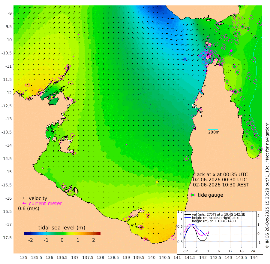 10cm/s 34T +3cm/s rms + 7cm/s -42T. ARA-GOC87 57m 15cm/s -63T +3cm/s rms + 2cm/s -2T. ARA-GOC87 60m 16cm/s 38T +2cm/s rms + 3cm/s 61T. ARA-GOC87 47m 21cm Daru 22cm Bobo Island 2cm Meer Island Barge 21cm Bramble Cay 23cm Unnamed Cay 20cm Pearce Cay 13cm Stephens Island 27cm Merrie England Shoals 28cm Mutacomal Reef 11cm Darnley Island Barge 5cm East Cay 13cm Yorke Island Barge 12cm Rennel Island 13cm Aureed Island 10cm Dungeness Reef 5cm Zagai Island 0cm Yam Island -14cm Dauan Island -12cm Saibai Island 8cm Phipi Reef 9cm Warrior Reef - West -37cm Mabuiag Island Barge 11cm Half Way Island 9cm Coconut Island 7cm Dugong Islet 2cm Poll Island 0cm Kirkcaldie Reef -14cm Suarji Island -1cm Sue Islet -101cm Hawkesbury Island -30cm Alert Patches -25cm Twin Island -76cm Badu Island -27cm St Pauls (Moa Island) -77cm Kubin (Moa Island) -46cm Ince Point -61cm Thursday Island -56cm Nardana Patches -72cm Turtle Head -92cm Round Island -100cm Goods Island -130cm Booby Island -113cm White Rocks Area -150cm Carpentaria -27cm Papou Point -157cm Bampfield Head -113cm Crab Island -121cm Red Wallis Island -89cm Packe Island 5cm Harrington Reef -126cm Herald Camp -1cm Sharp Point -61cm Red Island Point -57cm Possession Island -15cm Alpha Rock -11cm Frederick Point 15cm Wyborn Reef Light 11cm Tetley Island 0cm Triangle Reef -3cm Turtle Head Island -5cm Maclennan Cay -6cm Raine Island 12cm Mcsweeny Reef 14cm Collette Reef 3cm Shadwell Reef 21cm Hannibal Island 17cm Round Point -121cm Vrilya Point 8cm Cape Grenville 4cm Hicks Island 0cm Sir Charles Hardy Island 1cm Harvey Island 7cm Kay Reef 1cm Rocky Island -2cm Chapman Island -8cm Ham Reef -3cm Jubilee Reef -3cm Night Island -7cm Unnamed Reef No. 3 0cm Morris Island -12cm 1st 3 Mile Opening -7cm Creech Reef -4cm Fife Island 4cm Eden Reef -2cm Stanley Island 6cm Normanby River 79cm Yabooma Island 106cm Hutchison River 91cm Elcho Island 94cm North West Crocodile Island 43cm Cape Wessel 87cm Stevens Island 60cm Guluwuru Island 76cm Hopeful Bay 51cm Auster Point 50cm Two Island Bay 95cm Cadell Strait 80cm Mallison Island 58cm Melville Bay (Gove Harbour) 48cm Truant Island 36cm Cape Arnhem 45cm Cape Grey 51cm Hawk Island 54cm Milner Bay (Groote Eylandt) 59cm Cape Beatrice 53cm West Island 48cm Centre Island 99cm Mornington Island 95cm West Wellesley Islands 142cm Bountiful Island 192cm Albert River Mouth 194cm Sweers Island 174cm Karumba 72cm Nassau River Offshore 20cm Christmas Creek -31cm Archer River -65cm Boyd Point -59cm Weipa (Humbug Point) -75cm Pennefather River -108cm Cullen Point