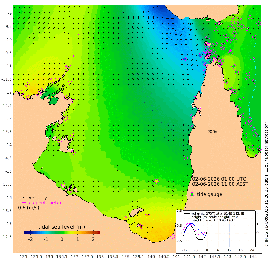 14cm/s 44T +3cm/s rms + 7cm/s -42T. ARA-GOC87 57m 14cm/s -52T +3cm/s rms + 2cm/s -2T. ARA-GOC87 60m 20cm/s 43T +2cm/s rms + 3cm/s 61T. ARA-GOC87 47m 20cm Daru 23cm Bobo Island -4cm Meer Island Barge 15cm Bramble Cay 19cm Unnamed Cay 18cm Pearce Cay 9cm Stephens Island 23cm Merrie England Shoals 27cm Mutacomal Reef 8cm Darnley Island Barge -3cm East Cay 12cm Yorke Island Barge 9cm Rennel Island 14cm Aureed Island 8cm Dungeness Reef 8cm Zagai Island 0cm Yam Island -14cm Dauan Island -9cm Saibai Island 2cm Phipi Reef 11cm Warrior Reef - West -40cm Mabuiag Island Barge 8cm Half Way Island 9cm Coconut Island 6cm Dugong Islet 3cm Poll Island -3cm Kirkcaldie Reef -13cm Suarji Island 1cm Sue Islet -121cm Hawkesbury Island -33cm Alert Patches -26cm Twin Island -92cm Badu Island -26cm St Pauls (Moa Island) -91cm Kubin (Moa Island) -50cm Ince Point -68cm Thursday Island -62cm Nardana Patches -85cm Turtle Head -108cm Round Island -119cm Goods Island -151cm Booby Island -132cm White Rocks Area -161cm Carpentaria -29cm Papou Point -178cm Bampfield Head -131cm Crab Island -139cm Red Wallis Island -104cm Packe Island 5cm Harrington Reef -148cm Herald Camp 0cm Sharp Point -74cm Red Island Point -64cm Possession Island -13cm Alpha Rock -11cm Frederick Point 16cm Wyborn Reef Light 12cm Tetley Island -4cm Triangle Reef -5cm Turtle Head Island -11cm Maclennan Cay -15cm Raine Island 10cm Mcsweeny Reef 11cm Collette Reef -3cm Shadwell Reef 17cm Hannibal Island 11cm Round Point -136cm Vrilya Point 2cm Cape Grenville -4cm Hicks Island -8cm Sir Charles Hardy Island -2cm Harvey Island 0cm Kay Reef -8cm Rocky Island -9cm Chapman Island -15cm Ham Reef -11cm Jubilee Reef -10cm Night Island -14cm Unnamed Reef No. 3 -9cm Morris Island -21cm 1st 3 Mile Opening -16cm Creech Reef -10cm Fife Island -6cm Eden Reef -11cm Stanley Island -3cm Normanby River 66cm Yabooma Island 92cm Hutchison River 80cm Elcho Island 82cm North West Crocodile Island 47cm Cape Wessel 83cm Stevens Island 66cm Guluwuru Island 70cm Hopeful Bay 50cm Auster Point 48cm Two Island Bay 91cm Cadell Strait 110cm Mallison Island 62cm Melville Bay (Gove Harbour) 54cm Truant Island 42cm Cape Arnhem 48cm Cape Grey 55cm Hawk Island 60cm Milner Bay (Groote Eylandt) 62cm Cape Beatrice 58cm West Island 53cm Centre Island 96cm Mornington Island 95cm West Wellesley Islands 133cm Bountiful Island 185cm Albert River Mouth 190cm Sweers Island 164cm Karumba 63cm Nassau River Offshore 8cm Christmas Creek -45cm Archer River -77cm Boyd Point -75cm Weipa (Humbug Point) -87cm Pennefather River -122cm Cullen Point
