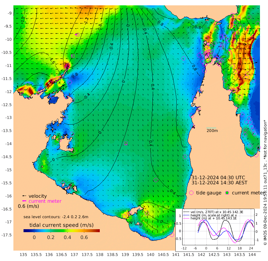 33cm/s -87T +3cm/s rms + 7cm/s -42T. ARA-GOC87 57m 29cm/s 172T +3cm/s rms + 2cm/s -2T. ARA-GOC87 60m 42cm/s -92T +2cm/s rms + 3cm/s 61T. ARA-GOC87 47m 51cm Daru 34cm Bobo Island -11cm Meer Island Barge -7cm Bramble Cay 19cm Unnamed Cay 22cm Pearce Cay 10cm Stephens Island 9cm Merrie England Shoals 44cm Mutacomal Reef 9cm Darnley Island Barge -7cm East Cay 30cm Yorke Island Barge 38cm Rennel Island 42cm Aureed Island 64cm Dungeness Reef 103cm Zagai Island 107cm Yam Island 160cm Dauan Island 152cm Saibai Island 146cm Phipi Reef 125cm Warrior Reef - West 132cm Mabuiag Island Barge 29cm Half Way Island 63cm Coconut Island 49cm Dugong Islet 84cm Poll Island 78cm Kirkcaldie Reef 125cm Suarji Island 88cm Sue Islet 122cm Hawkesbury Island 120cm Alert Patches 113cm Twin Island 124cm Badu Island 127cm St Pauls (Moa Island) 119cm Kubin (Moa Island) 123cm Ince Point 124cm Thursday Island 125cm Nardana Patches 126cm Turtle Head 123cm Round Island 114cm Goods Island 114cm Booby Island 107cm White Rocks Area 101cm Carpentaria 101cm Papou Point 131cm Bampfield Head 96cm Crab Island 119cm Red Wallis Island 127cm Packe Island 55cm Harrington Reef 145cm Herald Camp 43cm Sharp Point 105cm Red Island Point 113cm Possession Island 100cm Alpha Rock 91cm Frederick Point 52cm Wyborn Reef Light 64cm Tetley Island 16cm Triangle Reef 34cm Turtle Head Island 3cm Maclennan Cay -12cm Raine Island 24cm Mcsweeny Reef 17cm Collette Reef 3cm Shadwell Reef 7cm Hannibal Island -3cm Round Point 85cm Vrilya Point -1cm Cape Grenville -3cm Hicks Island 10cm Sir Charles Hardy Island 0cm Harvey Island -12cm Kay Reef -9cm Rocky Island -5cm Chapman Island -6cm Ham Reef -11cm Jubilee Reef -5cm Night Island -6cm Unnamed Reef No. 3 -15cm Morris Island -12cm 1st 3 Mile Opening -10cm Creech Reef -5cm Fife Island -31cm Eden Reef -17cm Stanley Island -28cm Normanby River -192cm Yabooma Island -225cm Hutchison River -203cm Elcho Island -195cm North West Crocodile Island -128cm Cape Wessel -184cm Stevens Island -120cm Guluwuru Island -164cm Hopeful Bay -146cm Auster Point -154cm Two Island Bay -197cm Cadell Strait -71cm Mallison Island -108cm Melville Bay (Gove Harbour) -109cm Truant Island -67cm Cape Arnhem -59cm Cape Grey -43cm Hawk Island -46cm Milner Bay (Groote Eylandt) -33cm Cape Beatrice -7cm West Island -5cm Centre Island 16cm Mornington Island 17cm West Wellesley Islands 5cm Bountiful Island -46cm Albert River Mouth -57cm Sweers Island -21cm Karumba 48cm Nassau River Offshore 77cm Christmas Creek 72cm Archer River 84cm Boyd Point 84cm Weipa (Humbug Point) 61cm Pennefather River 98cm Cullen Point