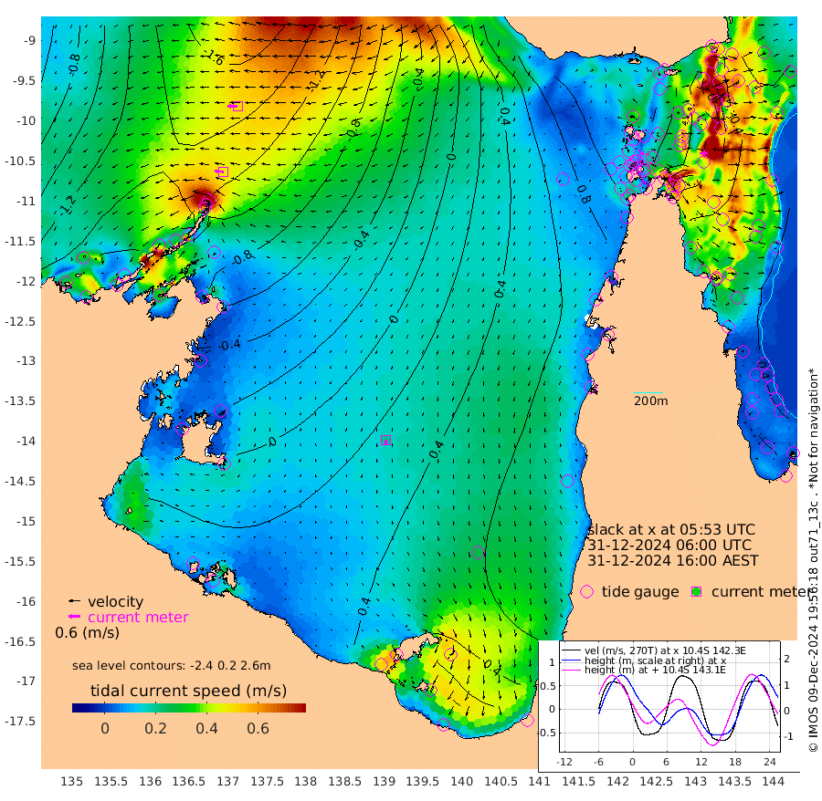 47cm/s -85T +3cm/s rms + 7cm/s -42T. ARA-GOC87 57m 22cm/s -172T +3cm/s rms + 2cm/s -2T. ARA-GOC87 60m 51cm/s -92T +2cm/s rms + 3cm/s 61T. ARA-GOC87 47m -29cm Daru -42cm Bobo Island -39cm Meer Island Barge -55cm Bramble Cay -52cm Unnamed Cay -47cm Pearce Cay -49cm Stephens Island -62cm Merrie England Shoals -42cm Mutacomal Reef -46cm Darnley Island Barge -38cm East Cay -37cm Yorke Island Barge -34cm Rennel Island -29cm Aureed Island -10cm Dungeness Reef 24cm Zagai Island 32cm Yam Island 99cm Dauan Island 88cm Saibai Island 91cm Phipi Reef 47cm Warrior Reef - West 76cm Mabuiag Island Barge -41cm Half Way Island -19cm Coconut Island -27cm Dugong Islet 3cm Poll Island 3cm Kirkcaldie Reef 46cm Suarji Island 8cm Sue Islet 96cm Hawkesbury Island 43cm Alert Patches 34cm Twin Island 91cm Badu Island 47cm St Pauls (Moa Island) 80cm Kubin (Moa Island) 59cm Ince Point 69cm Thursday Island 68cm Nardana Patches 85cm Turtle Head 92cm Round Island 93cm Goods Island 105cm Booby Island 91cm White Rocks Area 88cm Carpentaria 35cm Papou Point 110cm Bampfield Head 93cm Crab Island 103cm Red Wallis Island 94cm Packe Island -30cm Harrington Reef 131cm Herald Camp 19cm Sharp Point 76cm Red Island Point 59cm Possession Island 18cm Alpha Rock 8cm Frederick Point -38cm Wyborn Reef Light -28cm Tetley Island -21cm Triangle Reef -50cm Turtle Head Island -26cm Maclennan Cay -25cm Raine Island -42cm Mcsweeny Reef -41cm Collette Reef -31cm Shadwell Reef -55cm Hannibal Island -54cm Round Point 82cm Vrilya Point -43cm Cape Grenville -37cm Hicks Island -25cm Sir Charles Hardy Island -11cm Harvey Island -45cm Kay Reef -29cm Rocky Island -24cm Chapman Island -22cm Ham Reef -31cm Jubilee Reef -26cm Night Island -24cm Unnamed Reef No. 3 -35cm Morris Island -28cm 1st 3 Mile Opening -28cm Creech Reef -27cm Fife Island -48cm Eden Reef -38cm Stanley Island -50cm Normanby River -164cm Yabooma Island -200cm Hutchison River -173cm Elcho Island -162cm North West Crocodile Island -142cm Cape Wessel -182cm Stevens Island -151cm Guluwuru Island -152cm Hopeful Bay -148cm Auster Point -152cm Two Island Bay -194cm Cadell Strait -187cm Mallison Island -129cm Melville Bay (Gove Harbour) -137cm Truant Island -87cm Cape Arnhem -64cm Cape Grey -43cm Hawk Island -31cm Milner Bay (Groote Eylandt) -14cm Cape Beatrice 21cm West Island 25cm Centre Island 56cm Mornington Island 51cm West Wellesley Islands 66cm Bountiful Island 34cm Albert River Mouth 25cm Sweers Island 61cm Karumba 81cm Nassau River Offshore 95cm Christmas Creek 82cm Archer River 83cm Boyd Point 93cm Weipa (Humbug Point) 58cm Pennefather River 98cm Cullen Point