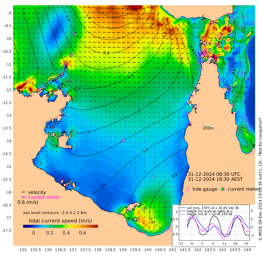 36cm/s -82T +3cm/s rms + 7cm/s -42T. ARA-GOC87 57m 16cm/s -111T +3cm/s rms + 2cm/s -2T. ARA-GOC87 60m 32cm/s -86T +2cm/s rms + 3cm/s 61T. ARA-GOC87 47m -63cm Daru -64cm Bobo Island -13cm Meer Island Barge -33cm Bramble Cay -56cm Unnamed Cay -56cm Pearce Cay -44cm Stephens Island -58cm Merrie England Shoals -73cm Mutacomal Reef -40cm Darnley Island Barge -11cm East Cay -54cm Yorke Island Barge -56cm Rennel Island -57cm Aureed Island -52cm Dungeness Reef -63cm Zagai Island -53cm Yam Island -24cm Dauan Island -35cm Saibai Island -1cm Phipi Reef -49cm Warrior Reef - West -36cm Mabuiag Island Barge -57cm Half Way Island -70cm Coconut Island -61cm Dugong Islet -66cm Poll Island -55cm Kirkcaldie Reef -57cm Suarji Island -67cm Sue Islet 8cm Hawkesbury Island -57cm Alert Patches -63cm Twin Island -3cm Badu Island -63cm St Pauls (Moa Island) -10cm Kubin (Moa Island) -43cm Ince Point -33cm Thursday Island -35cm Nardana Patches -9cm Turtle Head 6cm Round Island 13cm Goods Island 19cm Booby Island 8cm White Rocks Area -12cm Carpentaria -53cm Papou Point 9cm Bampfield Head 21cm Crab Island 10cm Red Wallis Island 1cm Packe Island -74cm Harrington Reef 39cm Herald Camp -19cm Sharp Point 2cm Red Island Point -27cm Possession Island -74cm Alpha Rock -69cm Frederick Point -84cm Wyborn Reef Light -86cm Tetley Island -22cm Triangle Reef -80cm Turtle Head Island -10cm Maclennan Cay 5cm Raine Island -53cm Mcsweeny Reef -44cm Collette Reef -16cm Shadwell Reef -47cm Hannibal Island -35cm Round Point 10cm Vrilya Point -25cm Cape Grenville -13cm Hicks Island -10cm Sir Charles Hardy Island -5cm Harvey Island -15cm Kay Reef 1cm Rocky Island 1cm Chapman Island 2cm Ham Reef -3cm Jubilee Reef -3cm Night Island 0cm Unnamed Reef No. 3 -1cm Morris Island 3cm 1st 3 Mile Opening 1cm Creech Reef -5cm Fife Island 4cm Eden Reef -1cm Stanley Island -3cm Normanby River -9cm Yabooma Island -19cm Hutchison River -13cm Elcho Island -3cm North West Crocodile Island -69cm Cape Wessel -52cm Stevens Island -80cm Guluwuru Island -28cm Hopeful Bay -52cm Auster Point -46cm Two Island Bay -50cm Cadell Strait -193cm Mallison Island -62cm Melville Bay (Gove Harbour) -77cm Truant Island -51cm Cape Arnhem -23cm Cape Grey -7cm Hawk Island 7cm Milner Bay (Groote Eylandt) 22cm Cape Beatrice 40cm West Island 44cm Centre Island 100cm Mornington Island 88cm West Wellesley Islands 144cm Bountiful Island 154cm Albert River Mouth 151cm Sweers Island 172cm Karumba 108cm Nassau River Offshore 89cm Christmas Creek 58cm Archer River 34cm Boyd Point 56cm Weipa (Humbug Point) 14cm Pennefather River 26cm Cullen Point