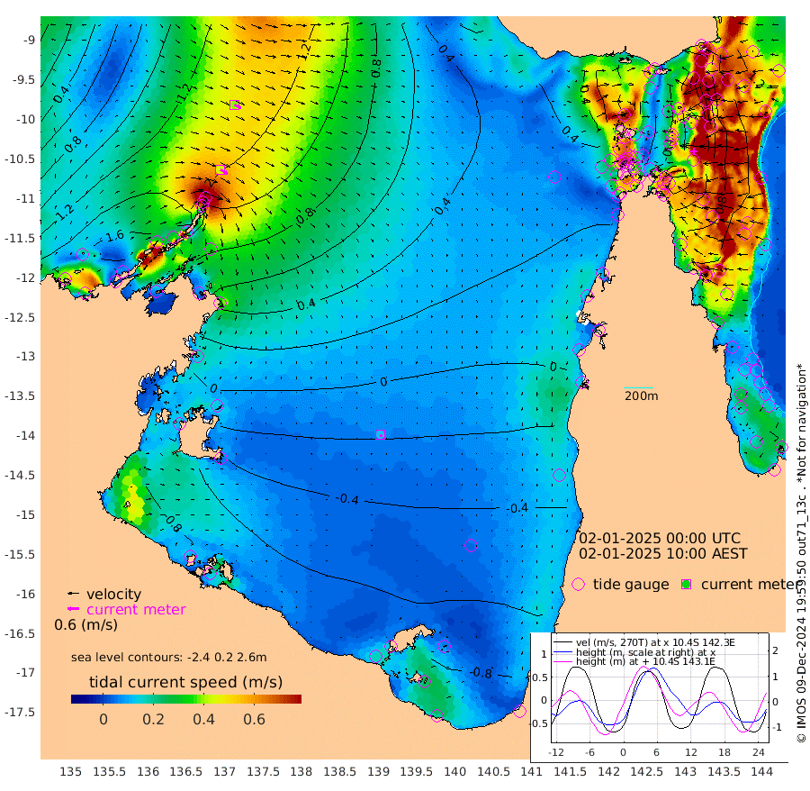 43cm/s 119T +3cm/s rms + 7cm/s -42T. ARA-GOC87 57m 12cm/s 156T +3cm/s rms + 2cm/s -2T. ARA-GOC87 60m 39cm/s 115T +2cm/s rms + 3cm/s 61T. ARA-GOC87 47m 77cm Daru 87cm Bobo Island 102cm Meer Island Barge 110cm Bramble Cay 103cm Unnamed Cay 105cm Pearce Cay 108cm Stephens Island 106cm Merrie England Shoals 84cm Mutacomal Reef 102cm Darnley Island Barge 106cm East Cay 88cm Yorke Island Barge 93cm Rennel Island 82cm Aureed Island 73cm Dungeness Reef 26cm Zagai Island 33cm Yam Island -7cm Dauan Island -18cm Saibai Island -9cm Phipi Reef 18cm Warrior Reef - West 8cm Mabuiag Island Barge 96cm Half Way Island 72cm Coconut Island 88cm Dugong Islet 55cm Poll Island 61cm Kirkcaldie Reef 26cm Suarji Island 42cm Sue Islet 91cm Hawkesbury Island 41cm Alert Patches 44cm Twin Island 69cm Badu Island 30cm St Pauls (Moa Island) 74cm Kubin (Moa Island) 42cm Ince Point 48cm Thursday Island 45cm Nardana Patches 65cm Turtle Head 68cm Round Island 93cm Goods Island 95cm Booby Island 97cm White Rocks Area 70cm Carpentaria 40cm Papou Point 108cm Bampfield Head 70cm Crab Island 86cm Red Wallis Island 77cm Packe Island 85cm Harrington Reef 77cm Herald Camp -13cm Sharp Point 50cm Red Island Point 47cm Possession Island 38cm Alpha Rock 58cm Frederick Point 84cm Wyborn Reef Light 75cm Tetley Island 83cm Triangle Reef 111cm Turtle Head Island 98cm Maclennan Cay 96cm Raine Island 94cm Mcsweeny Reef 92cm Collette Reef 90cm Shadwell Reef 105cm Hannibal Island 113cm Round Point 62cm Vrilya Point 103cm Cape Grenville 105cm Hicks Island 109cm Sir Charles Hardy Island 31cm Harvey Island 106cm Kay Reef 98cm Rocky Island 96cm Chapman Island 93cm Ham Reef 99cm Jubilee Reef 87cm Night Island 94cm Unnamed Reef No. 3 106cm Morris Island 106cm 1st 3 Mile Opening 102cm Creech Reef 92cm Fife Island 127cm Eden Reef 108cm Stanley Island 119cm Normanby River 184cm Yabooma Island 222cm Hutchison River 178cm Elcho Island 162cm North West Crocodile Island 135cm Cape Wessel 164cm Stevens Island 142cm Guluwuru Island 141cm Hopeful Bay 144cm Auster Point 150cm Two Island Bay 192cm Cadell Strait 109cm Mallison Island 115cm Melville Bay (Gove Harbour) 129cm Truant Island 72cm Cape Arnhem 24cm Cape Grey -7cm Hawk Island -60cm Milner Bay (Groote Eylandt) -69cm Cape Beatrice -132cm West Island -134cm Centre Island -143cm Mornington Island -137cm West Wellesley Islands -159cm Bountiful Island -179cm Albert River Mouth -211cm Sweers Island -189cm Karumba -98cm Nassau River Offshore -44cm Christmas Creek 10cm Archer River 32cm Boyd Point 37cm Weipa (Humbug Point) 35cm Pennefather River 46cm Cullen Point