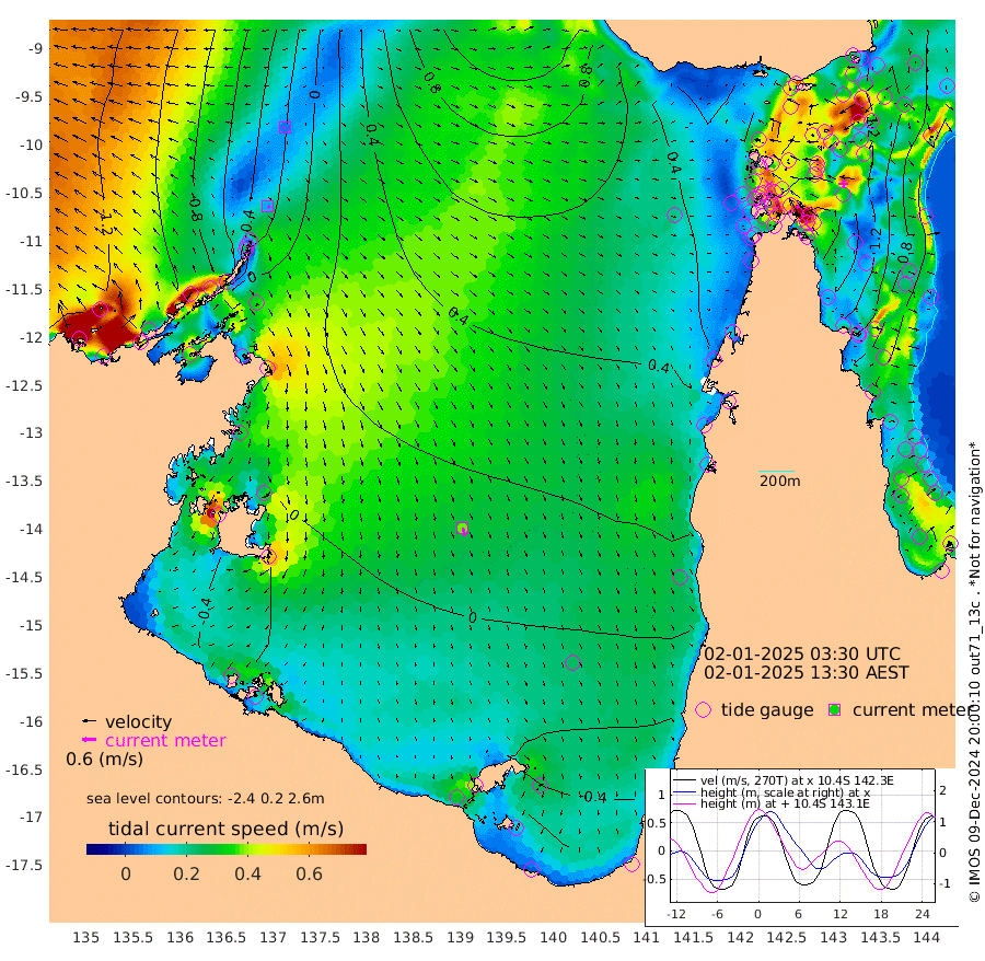 10cm/s 127T +3cm/s rms + 7cm/s -42T. ARA-GOC87 57m 38cm/s 164T +3cm/s rms + 2cm/s -2T. ARA-GOC87 60m 6cm/s -115T +2cm/s rms + 3cm/s 61T. ARA-GOC87 47m 163cm Daru 146cm Bobo Island 73cm Meer Island Barge 102cm Bramble Cay 141cm Unnamed Cay 135cm Pearce Cay 125cm Stephens Island 136cm Merrie England Shoals 165cm Mutacomal Reef 117cm Darnley Island Barge 79cm East Cay 138cm Yorke Island Barge 147cm Rennel Island 140cm Aureed Island 156cm Dungeness Reef 164cm Zagai Island 169cm Yam Island 170cm Dauan Island 159cm Saibai Island 155cm Phipi Reef 179cm Warrior Reef - West 136cm Mabuiag Island Barge 141cm Half Way Island 159cm Coconut Island 157cm Dugong Islet 164cm Poll Island 164cm Kirkcaldie Reef 164cm Suarji Island 163cm Sue Islet 112cm Hawkesbury Island 164cm Alert Patches 166cm Twin Island 115cm Badu Island 171cm St Pauls (Moa Island) 127cm Kubin (Moa Island) 150cm Ince Point 138cm Thursday Island 142cm Nardana Patches 128cm Turtle Head 111cm Round Island 100cm Goods Island 81cm Booby Island 83cm White Rocks Area 65cm Carpentaria 143cm Papou Point 99cm Bampfield Head 65cm Crab Island 90cm Red Wallis Island 122cm Packe Island 164cm Harrington Reef 110cm Herald Camp 50cm Sharp Point 100cm Red Island Point 129cm Possession Island 162cm Alpha Rock 167cm Frederick Point 169cm Wyborn Reef Light 173cm Tetley Island 85cm Triangle Reef 160cm Turtle Head Island 78cm Maclennan Cay 50cm Raine Island 133cm Mcsweeny Reef 120cm Collette Reef 82cm Shadwell Reef 124cm Hannibal Island 106cm Round Point 56cm Vrilya Point 94cm Cape Grenville 85cm Hicks Island 97cm Sir Charles Hardy Island 29cm Harvey Island 76cm Kay Reef 61cm Rocky Island 56cm Chapman Island 54cm Ham Reef 61cm Jubilee Reef 59cm Night Island 56cm Unnamed Reef No. 3 61cm Morris Island 57cm 1st 3 Mile Opening 60cm Creech Reef 67cm Fife Island 55cm Eden Reef 62cm Stanley Island 62cm Normanby River -94cm Yabooma Island -99cm Hutchison River -107cm Elcho Island -109cm North West Crocodile Island -26cm Cape Wessel -65cm Stevens Island 19cm Guluwuru Island -73cm Hopeful Bay -47cm Auster Point -48cm Two Island Bay -48cm Cadell Strait 174cm Mallison Island 2cm Melville Bay (Gove Harbour) 10cm Truant Island 10cm Cape Arnhem -18cm Cape Grey -26cm Hawk Island -64cm Milner Bay (Groote Eylandt) -59cm Cape Beatrice -75cm West Island -80cm Centre Island -59cm Mornington Island -51cm West Wellesley Islands -89cm Bountiful Island -140cm Albert River Mouth -170cm Sweers Island -131cm Karumba -12cm Nassau River Offshore 35cm Christmas Creek 39cm Archer River 58cm Boyd Point 50cm Weipa (Humbug Point) 42cm Pennefather River 59cm Cullen Point