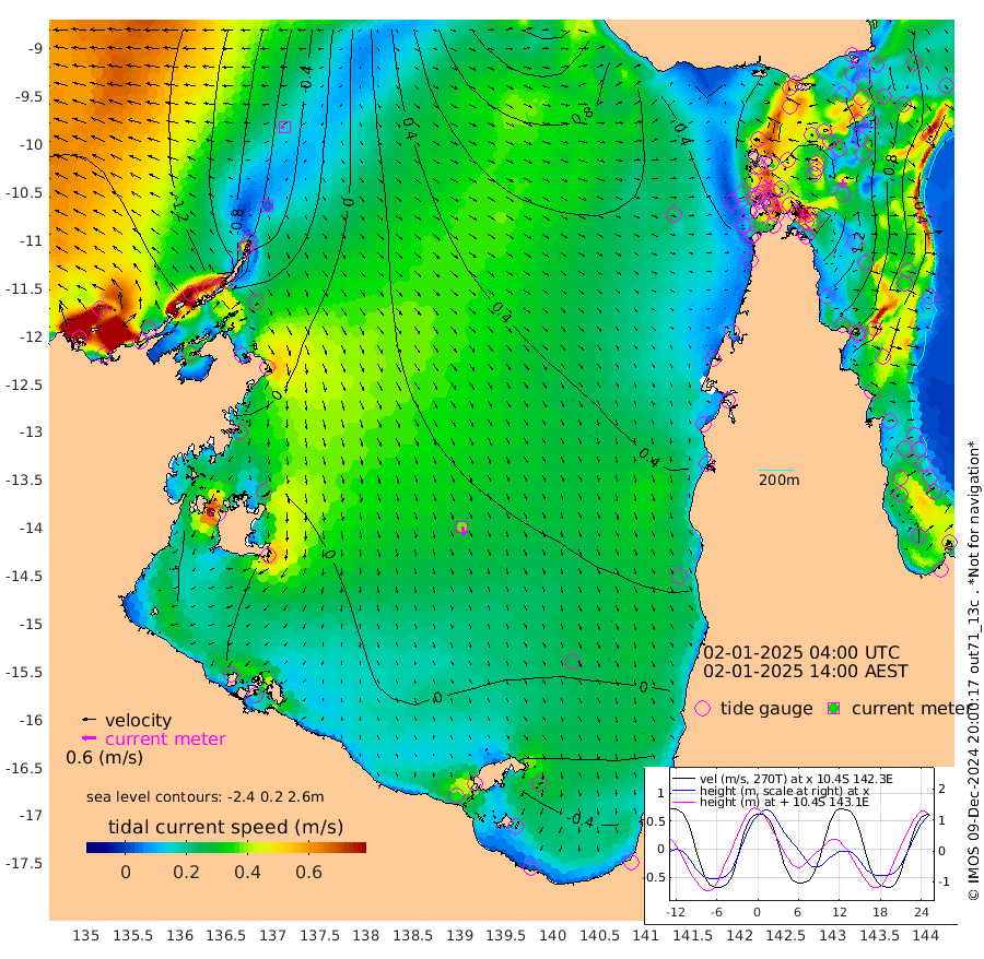 4cm/s -149T +3cm/s rms + 7cm/s -42T. ARA-GOC87 57m 38cm/s 165T +3cm/s rms + 2cm/s -2T. ARA-GOC87 60m 16cm/s -97T +2cm/s rms + 3cm/s 61T. ARA-GOC87 47m 146cm Daru 126cm Bobo Island 54cm Meer Island Barge 79cm Bramble Cay 119cm Unnamed Cay 112cm Pearce Cay 102cm Stephens Island 113cm Merrie England Shoals 146cm Mutacomal Reef 96cm Darnley Island Barge 59cm East Cay 119cm Yorke Island Barge 127cm Rennel Island 122cm Aureed Island 141cm Dungeness Reef 159cm Zagai Island 164cm Yam Island 176cm Dauan Island 167cm Saibai Island 159cm Phipi Reef 177cm Warrior Reef - West 141cm Mabuiag Island Barge 122cm Half Way Island 144cm Coconut Island 140cm Dugong Islet 153cm Poll Island 153cm Kirkcaldie Reef 161cm Suarji Island 155cm Sue Islet 113cm Hawkesbury Island 161cm Alert Patches 161cm Twin Island 117cm Badu Island 169cm St Pauls (Moa Island) 127cm Kubin (Moa Island) 149cm Ince Point 139cm Thursday Island 142cm Nardana Patches 129cm Turtle Head 113cm Round Island 100cm Goods Island 84cm Booby Island 85cm White Rocks Area 73cm Carpentaria 139cm Papou Point 101cm Bampfield Head 71cm Crab Island 94cm Red Wallis Island 124cm Packe Island 147cm Harrington Reef 116cm Herald Camp 52cm Sharp Point 102cm Red Island Point 127cm Possession Island 157cm Alpha Rock 157cm Frederick Point 151cm Wyborn Reef Light 157cm Tetley Island 70cm Triangle Reef 137cm Turtle Head Island 61cm Maclennan Cay 34cm Raine Island 113cm Mcsweeny Reef 101cm Collette Reef 65cm Shadwell Reef 101cm Hannibal Island 83cm Round Point 62cm Vrilya Point 74cm Cape Grenville 65cm Hicks Island 78cm Sir Charles Hardy Island 23cm Harvey Island 57cm Kay Reef 43cm Rocky Island 40cm Chapman Island 39cm Ham Reef 43cm Jubilee Reef 44cm Night Island 41cm Unnamed Reef No. 3 42cm Morris Island 39cm 1st 3 Mile Opening 43cm Creech Reef 51cm Fife Island 32cm Eden Reef 43cm Stanley Island 39cm Normanby River -137cm Yabooma Island -151cm Hutchison River -149cm Elcho Island -148cm North West Crocodile Island -58cm Cape Wessel -107cm Stevens Island -17cm Guluwuru Island -109cm Hopeful Bay -83cm Auster Point -84cm Two Island Bay -97cm Cadell Strait 140cm Mallison Island -29cm Melville Bay (Gove Harbour) -23cm Truant Island -11cm Cape Arnhem -30cm Cape Grey -33cm Hawk Island -62cm Milner Bay (Groote Eylandt) -54cm Cape Beatrice -58cm West Island -63cm Centre Island -41cm Mornington Island -35cm West Wellesley Islands -71cm Bountiful Island -123cm Albert River Mouth -151cm Sweers Island -110cm Karumba 3cm Nassau River Offshore 48cm Christmas Creek 47cm Archer River 65cm Boyd Point 56cm Weipa (Humbug Point) 48cm Pennefather River 68cm Cullen Point