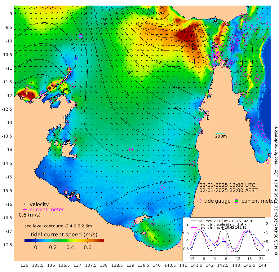 5cm/s 2T +3cm/s rms + 7cm/s -42T. ARA-GOC87 57m 20cm/s -66T +3cm/s rms + 2cm/s -2T. ARA-GOC87 60m 13cm/s 35T +2cm/s rms + 3cm/s 61T. ARA-GOC87 47m -6cm Daru 2cm Bobo Island 23cm Meer Island Barge 25cm Bramble Cay 10cm Unnamed Cay 16cm Pearce Cay 15cm Stephens Island 14cm Merrie England Shoals -6cm Mutacomal Reef 14cm Darnley Island Barge 25cm East Cay 2cm Yorke Island Barge 0cm Rennel Island 0cm Aureed Island -6cm Dungeness Reef -43cm Zagai Island -44cm Yam Island -58cm Dauan Island -72cm Saibai Island -17cm Phipi Reef -39cm Warrior Reef - West -79cm Mabuiag Island Barge 1cm Half Way Island -21cm Coconut Island -10cm Dugong Islet -31cm Poll Island -28cm Kirkcaldie Reef -49cm Suarji Island -42cm Sue Islet -84cm Hawkesbury Island -60cm Alert Patches -60cm Twin Island -81cm Badu Island -66cm St Pauls (Moa Island) -74cm Kubin (Moa Island) -71cm Ince Point -77cm Thursday Island -75cm Nardana Patches -71cm Turtle Head -72cm Round Island -78cm Goods Island -98cm Booby Island -90cm White Rocks Area -138cm Carpentaria -60cm Papou Point -113cm Bampfield Head -84cm Crab Island -100cm Red Wallis Island -76cm Packe Island -18cm Harrington Reef -83cm Herald Camp -21cm Sharp Point -61cm Red Island Point -56cm Possession Island -62cm Alpha Rock -44cm Frederick Point -21cm Wyborn Reef Light -30cm Tetley Island 6cm Triangle Reef -14cm Turtle Head Island 14cm Maclennan Cay 21cm Raine Island 3cm Mcsweeny Reef 9cm Collette Reef 16cm Shadwell Reef 18cm Hannibal Island 24cm Round Point -94cm Vrilya Point 20cm Cape Grenville 24cm Hicks Island 13cm Sir Charles Hardy Island 7cm Harvey Island 22cm Kay Reef 25cm Rocky Island 22cm Chapman Island 15cm Ham Reef 19cm Jubilee Reef 21cm Night Island 15cm Unnamed Reef No. 3 26cm Morris Island 21cm 1st 3 Mile Opening 21cm Creech Reef 21cm Fife Island 40cm Eden Reef 27cm Stanley Island 36cm Normanby River 110cm Yabooma Island 129cm Hutchison River 112cm Elcho Island 114cm North West Crocodile Island 29cm Cape Wessel 86cm Stevens Island 31cm Guluwuru Island 89cm Hopeful Bay 58cm Auster Point 61cm Two Island Bay 101cm Cadell Strait -43cm Mallison Island 41cm Melville Bay (Gove Harbour) 29cm Truant Island 20cm Cape Arnhem 34cm Cape Grey 49cm Hawk Island 50cm Milner Bay (Groote Eylandt) 55cm Cape Beatrice 49cm West Island 52cm Centre Island 116cm Mornington Island 107cm West Wellesley Islands 165cm Bountiful Island 211cm Albert River Mouth 228cm Sweers Island 211cm Karumba 97cm Nassau River Offshore 47cm Christmas Creek -2cm Archer River -42cm Boyd Point -25cm Weipa (Humbug Point) -49cm Pennefather River -79cm Cullen Point