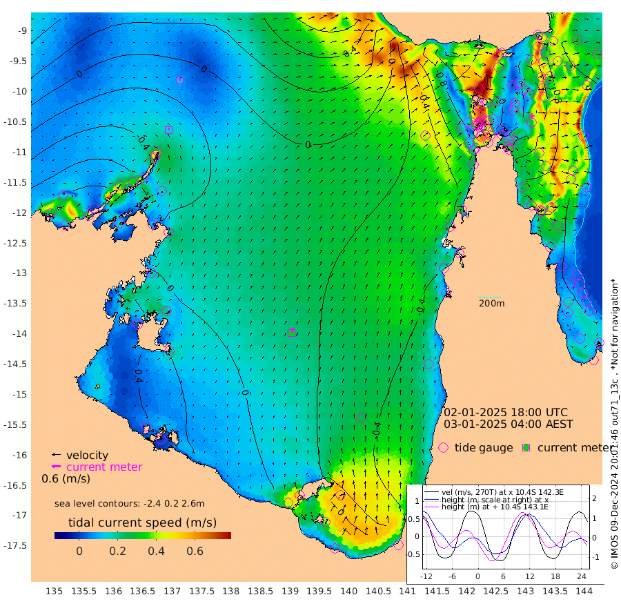 15cm/s 3T +3cm/s rms + 7cm/s -42T. ARA-GOC87 57m 32cm/s 16T +3cm/s rms + 2cm/s -2T. ARA-GOC87 60m 12cm/s 24T +2cm/s rms + 3cm/s 61T. ARA-GOC87 47m -81cm Daru -80cm Bobo Island -92cm Meer Island Barge -99cm Bramble Cay -94cm Unnamed Cay -99cm Pearce Cay -98cm Stephens Island -94cm Merrie England Shoals -83cm Mutacomal Reef -90cm Darnley Island Barge -100cm East Cay -81cm Yorke Island Barge -91cm Rennel Island -80cm Aureed Island -87cm Dungeness Reef -46cm Zagai Island -62cm Yam Island -61cm Dauan Island -31cm Saibai Island -79cm Phipi Reef -63cm Warrior Reef - West -36cm Mabuiag Island Barge -90cm Half Way Island -71cm Coconut Island -88cm Dugong Islet -67cm Poll Island -76cm Kirkcaldie Reef -54cm Suarji Island -49cm Sue Islet -118cm Hawkesbury Island -61cm Alert Patches -60cm Twin Island -97cm Badu Island -52cm St Pauls (Moa Island) -103cm Kubin (Moa Island) -65cm Ince Point -71cm Thursday Island -70cm Nardana Patches -99cm Turtle Head -99cm Round Island -120cm Goods Island -111cm Booby Island -110cm White Rocks Area -44cm Carpentaria -50cm Papou Point -107cm Bampfield Head -90cm Crab Island -107cm Red Wallis Island -118cm Packe Island -78cm Harrington Reef -128cm Herald Camp 0cm Sharp Point -81cm Red Island Point -68cm Possession Island -43cm Alpha Rock -65cm Frederick Point -71cm Wyborn Reef Light -66cm Tetley Island -80cm Triangle Reef -85cm Turtle Head Island -93cm Maclennan Cay -90cm Raine Island -85cm Mcsweeny Reef -84cm Collette Reef -85cm Shadwell Reef -94cm Hannibal Island -103cm Round Point -67cm Vrilya Point -95cm Cape Grenville -100cm Hicks Island -108cm Sir Charles Hardy Island -30cm Harvey Island -95cm Kay Reef -94cm Rocky Island -93cm Chapman Island -86cm Ham Reef -90cm Jubilee Reef -86cm Night Island -88cm Unnamed Reef No. 3 -98cm Morris Island -96cm 1st 3 Mile Opening -95cm Creech Reef -89cm Fife Island -116cm Eden Reef -99cm Stanley Island -107cm Normanby River -92cm Yabooma Island -109cm Hutchison River -79cm Elcho Island -77cm North West Crocodile Island -22cm Cape Wessel -54cm Stevens Island -32cm Guluwuru Island -54cm Hopeful Bay -37cm Auster Point -45cm Two Island Bay -81cm Cadell Strait 20cm Mallison Island -27cm Melville Bay (Gove Harbour) -25cm Truant Island -8cm Cape Arnhem 16cm Cape Grey 17cm Hawk Island 60cm Milner Bay (Groote Eylandt) 47cm Cape Beatrice 83cm West Island 82cm Centre Island 13cm Mornington Island 16cm West Wellesley Islands -3cm Bountiful Island 8cm Albert River Mouth 49cm Sweers Island -3cm Karumba -50cm Nassau River Offshore -82cm Christmas Creek -82cm Archer River -74cm Boyd Point -97cm Weipa (Humbug Point) -54cm Pennefather River -75cm Cullen Point