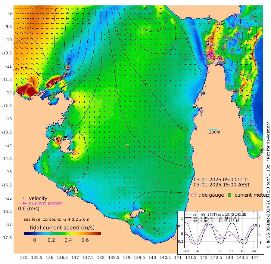 7cm/s -96T +3cm/s rms + 7cm/s -42T. ARA-GOC87 57m 38cm/s 165T +3cm/s rms + 2cm/s -2T. ARA-GOC87 60m 21cm/s -92T +2cm/s rms + 3cm/s 61T. ARA-GOC87 47m 125cm Daru 104cm Bobo Island 40cm Meer Island Barge 61cm Bramble Cay 97cm Unnamed Cay 87cm Pearce Cay 83cm Stephens Island 92cm Merrie England Shoals 123cm Mutacomal Reef 78cm Darnley Island Barge 44cm East Cay 99cm Yorke Island Barge 105cm Rennel Island 99cm Aureed Island 118cm Dungeness Reef 140cm Zagai Island 147cm Yam Island 161cm Dauan Island 155cm Saibai Island 141cm Phipi Reef 158cm Warrior Reef - West 126cm Mabuiag Island Barge 101cm Half Way Island 120cm Coconut Island 118cm Dugong Islet 131cm Poll Island 135cm Kirkcaldie Reef 136cm Suarji Island 136cm Sue Islet 95cm Hawkesbury Island 138cm Alert Patches 139cm Twin Island 99cm Badu Island 148cm St Pauls (Moa Island) 109cm Kubin (Moa Island) 130cm Ince Point 121cm Thursday Island 124cm Nardana Patches 110cm Turtle Head 94cm Round Island 83cm Goods Island 70cm Booby Island 67cm White Rocks Area 67cm Carpentaria 122cm Papou Point 78cm Bampfield Head 63cm Crab Island 81cm Red Wallis Island 107cm Packe Island 123cm Harrington Reef 102cm Herald Camp 49cm Sharp Point 90cm Red Island Point 106cm Possession Island 137cm Alpha Rock 135cm Frederick Point 125cm Wyborn Reef Light 132cm Tetley Island 55cm Triangle Reef 111cm Turtle Head Island 48cm Maclennan Cay 23cm Raine Island 92cm Mcsweeny Reef 81cm Collette Reef 51cm Shadwell Reef 80cm Hannibal Island 62cm Round Point 59cm Vrilya Point 58cm Cape Grenville 50cm Hicks Island 63cm Sir Charles Hardy Island 18cm Harvey Island 42cm Kay Reef 31cm Rocky Island 26cm Chapman Island 28cm Ham Reef 32cm Jubilee Reef 33cm Night Island 30cm Unnamed Reef No. 3 29cm Morris Island 26cm 1st 3 Mile Opening 31cm Creech Reef 39cm Fife Island 18cm Eden Reef 31cm Stanley Island 26cm Normanby River -161cm Yabooma Island -181cm Hutchison River -172cm Elcho Island -168cm North West Crocodile Island -77cm Cape Wessel -130cm Stevens Island -35cm Guluwuru Island -130cm Hopeful Bay -104cm Auster Point -102cm Two Island Bay -118cm Cadell Strait 126cm Mallison Island -47cm Melville Bay (Gove Harbour) -43cm Truant Island -23cm Cape Arnhem -37cm Cape Grey -38cm Hawk Island -59cm Milner Bay (Groote Eylandt) -48cm Cape Beatrice -43cm West Island -50cm Centre Island -28cm Mornington Island -23cm West Wellesley Islands -58cm Bountiful Island -106cm Albert River Mouth -137cm Sweers Island -92cm Karumba 14cm Nassau River Offshore 53cm Christmas Creek 46cm Archer River 61cm Boyd Point 52cm Weipa (Humbug Point) 45cm Pennefather River 64cm Cullen Point