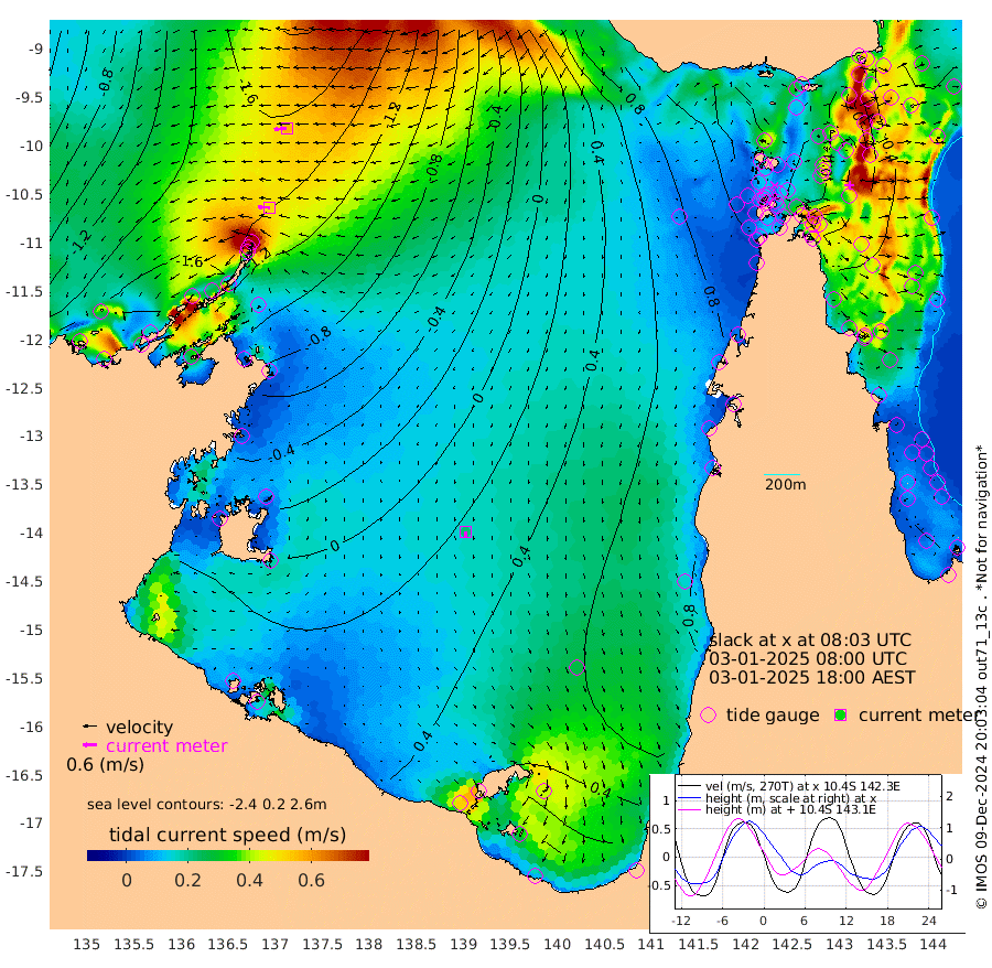 50cm/s -87T +3cm/s rms + 7cm/s -42T. ARA-GOC87 57m 22cm/s -173T +3cm/s rms + 2cm/s -2T. ARA-GOC87 60m 56cm/s -96T +2cm/s rms + 3cm/s 61T. ARA-GOC87 47m -35cm Daru -51cm Bobo Island -46cm Meer Island Barge -55cm Bramble Cay -51cm Unnamed Cay -58cm Pearce Cay -54cm Stephens Island -52cm Merrie England Shoals -36cm Mutacomal Reef -53cm Darnley Island Barge -44cm East Cay -47cm Yorke Island Barge -40cm Rennel Island -42cm Aureed Island -22cm Dungeness Reef 5cm Zagai Island 19cm Yam Island 64cm Dauan Island 58cm Saibai Island 61cm Phipi Reef 24cm Warrior Reef - West 55cm Mabuiag Island Barge -41cm Half Way Island -26cm Coconut Island -33cm Dugong Islet -7cm Poll Island -1cm Kirkcaldie Reef 21cm Suarji Island -5cm Sue Islet 85cm Hawkesbury Island 30cm Alert Patches 23cm Twin Island 78cm Badu Island 31cm St Pauls (Moa Island) 69cm Kubin (Moa Island) 48cm Ince Point 59cm Thursday Island 56cm Nardana Patches 73cm Turtle Head 77cm Round Island 85cm Goods Island 101cm Booby Island 87cm White Rocks Area 94cm Carpentaria 22cm Papou Point 88cm Bampfield Head 97cm Crab Island 106cm Red Wallis Island 94cm Packe Island -35cm Harrington Reef 116cm Herald Camp 18cm Sharp Point 68cm Red Island Point 40cm Possession Island 14cm Alpha Rock -1cm Frederick Point -41cm Wyborn Reef Light -31cm Tetley Island -28cm Triangle Reef -59cm Turtle Head Island -33cm Maclennan Cay -31cm Raine Island -47cm Mcsweeny Reef -44cm Collette Reef -35cm Shadwell Reef -54cm Hannibal Island -53cm Round Point 95cm Vrilya Point -41cm Cape Grenville -43cm Hicks Island -33cm Sir Charles Hardy Island -13cm Harvey Island -42cm Kay Reef -35cm Rocky Island -31cm Chapman Island -29cm Ham Reef -36cm Jubilee Reef -28cm Night Island -27cm Unnamed Reef No. 3 -39cm Morris Island -37cm 1st 3 Mile Opening -34cm Creech Reef -36cm Fife Island -52cm Eden Reef -39cm Stanley Island -52cm Normanby River -193cm Yabooma Island -232cm Hutchison River -195cm Elcho Island -180cm North West Crocodile Island -167cm Cape Wessel -200cm Stevens Island -178cm Guluwuru Island -172cm Hopeful Bay -178cm Auster Point -177cm Two Island Bay -228cm Cadell Strait -178cm Mallison Island -157cm Melville Bay (Gove Harbour) -169cm Truant Island -109cm Cape Arnhem -84cm Cape Grey -55cm Hawk Island -33cm Milner Bay (Groote Eylandt) -11cm Cape Beatrice 33cm West Island 38cm Centre Island 64cm Mornington Island 56cm West Wellesley Islands 56cm Bountiful Island 45cm Albert River Mouth 22cm Sweers Island 68cm Karumba 93cm Nassau River Offshore 103cm Christmas Creek 87cm Archer River 81cm Boyd Point 91cm Weipa (Humbug Point) 72cm Pennefather River 103cm Cullen Point