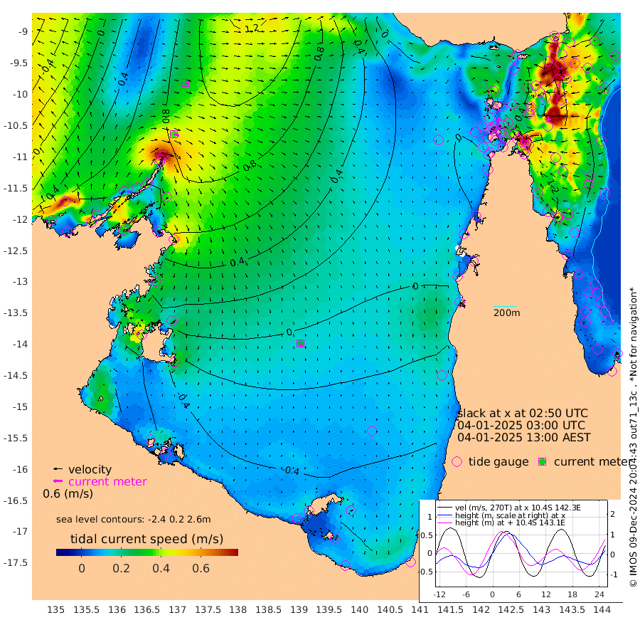 36cm/s 109T +3cm/s rms + 7cm/s -42T. ARA-GOC87 57m 26cm/s 165T +3cm/s rms + 2cm/s -2T. ARA-GOC87 60m 27cm/s 101T +2cm/s rms + 3cm/s 61T. ARA-GOC87 47m 134cm Daru 133cm Bobo Island 102cm Meer Island Barge 119cm Bramble Cay 133cm Unnamed Cay 138cm Pearce Cay 132cm Stephens Island 128cm Merrie England Shoals 132cm Mutacomal Reef 126cm Darnley Island Barge 107cm East Cay 129cm Yorke Island Barge 132cm Rennel Island 125cm Aureed Island 125cm Dungeness Reef 105cm Zagai Island 110cm Yam Island 93cm Dauan Island 81cm Saibai Island 77cm Phipi Reef 112cm Warrior Reef - West 68cm Mabuiag Island Barge 130cm Half Way Island 121cm Coconut Island 135cm Dugong Islet 115cm Poll Island 118cm Kirkcaldie Reef 93cm Suarji Island 110cm Sue Islet 81cm Hawkesbury Island 93cm Alert Patches 101cm Twin Island 74cm Badu Island 98cm St Pauls (Moa Island) 87cm Kubin (Moa Island) 86cm Ince Point 78cm Thursday Island 80cm Nardana Patches 79cm Turtle Head 66cm Round Island 71cm Goods Island 52cm Booby Island 58cm White Rocks Area 25cm Carpentaria 91cm Papou Point 63cm Bampfield Head 36cm Crab Island 54cm Red Wallis Island 75cm Packe Island 133cm Harrington Reef 67cm Herald Camp 16cm Sharp Point 63cm Red Island Point 74cm Possession Island 96cm Alpha Rock 115cm Frederick Point 134cm Wyborn Reef Light 131cm Tetley Island 93cm Triangle Reef 147cm Turtle Head Island 100cm Maclennan Cay 82cm Raine Island 126cm Mcsweeny Reef 116cm Collette Reef 95cm Shadwell Reef 125cm Hannibal Island 121cm Round Point 22cm Vrilya Point 106cm Cape Grenville 109cm Hicks Island 118cm Sir Charles Hardy Island 34cm Harvey Island 99cm Kay Reef 90cm Rocky Island 85cm Chapman Island 84cm Ham Reef 91cm Jubilee Reef 81cm Night Island 83cm Unnamed Reef No. 3 94cm Morris Island 90cm 1st 3 Mile Opening 91cm Creech Reef 95cm Fife Island 104cm Eden Reef 94cm Stanley Island 105cm Normanby River 103cm Yabooma Island 126cm Hutchison River 87cm Elcho Island 78cm North West Crocodile Island 103cm Cape Wessel 102cm Stevens Island 137cm Guluwuru Island 79cm Hopeful Bay 95cm Auster Point 104cm Two Island Bay 150cm Cadell Strait 205cm Mallison Island 107cm Melville Bay (Gove Harbour) 120cm Truant Island 74cm Cape Arnhem 27cm Cape Grey -4cm Hawk Island -60cm Milner Bay (Groote Eylandt) -65cm Cape Beatrice -118cm West Island -128cm Centre Island -107cm Mornington Island -98cm West Wellesley Islands -117cm Bountiful Island -155cm Albert River Mouth -188cm Sweers Island -158cm Karumba -60cm Nassau River Offshore -12cm Christmas Creek 7cm Archer River 27cm Boyd Point 25cm Weipa (Humbug Point) 9cm Pennefather River 22cm Cullen Point
