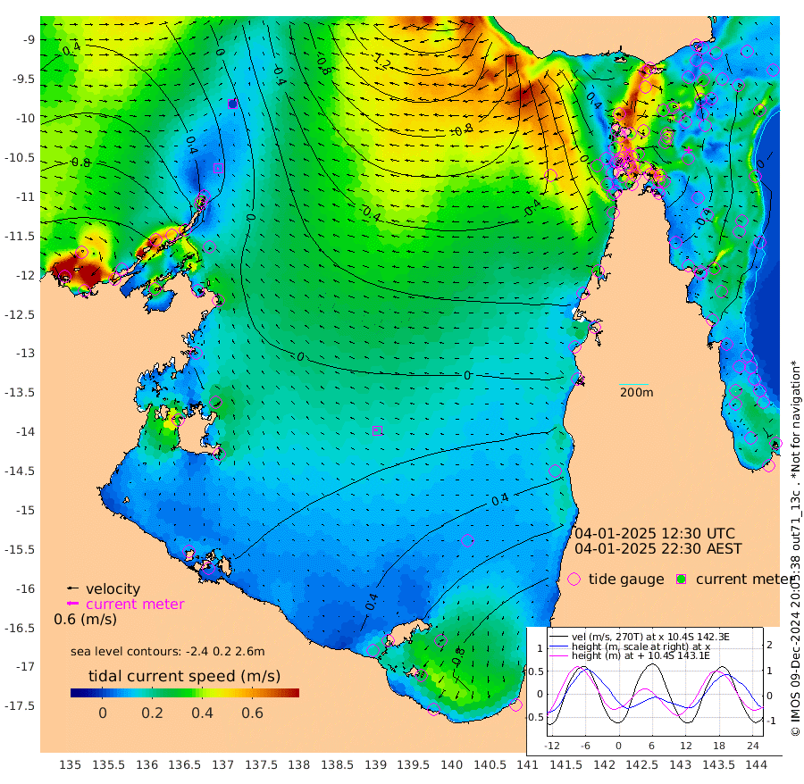 7cm/s -117T +3cm/s rms + 7cm/s -42T. ARA-GOC87 57m 18cm/s -79T +3cm/s rms + 2cm/s -2T. ARA-GOC87 60m 0cm/s -100T +2cm/s rms + 3cm/s 61T. ARA-GOC87 47m -50cm Daru -44cm Bobo Island -11cm Meer Island Barge -18cm Bramble Cay -40cm Unnamed Cay -26cm Pearce Cay -31cm Stephens Island -37cm Merrie England Shoals -51cm Mutacomal Reef -32cm Darnley Island Barge -11cm East Cay -44cm Yorke Island Barge -41cm Rennel Island -38cm Aureed Island -38cm Dungeness Reef -61cm Zagai Island -60cm Yam Island -41cm Dauan Island -63cm Saibai Island -13cm Phipi Reef -52cm Warrior Reef - West -57cm Mabuiag Island Barge -40cm Half Way Island -53cm Coconut Island -49cm Dugong Islet -52cm Poll Island -56cm Kirkcaldie Reef -55cm Suarji Island -69cm Sue Islet -28cm Hawkesbury Island -58cm Alert Patches -61cm Twin Island -26cm Badu Island -64cm St Pauls (Moa Island) -32cm Kubin (Moa Island) -53cm Ince Point -47cm Thursday Island -48cm Nardana Patches -28cm Turtle Head -30cm Round Island -15cm Goods Island -21cm Booby Island -18cm White Rocks Area -69cm Carpentaria -60cm Papou Point -47cm Bampfield Head -16cm Crab Island -22cm Red Wallis Island -19cm Packe Island -57cm Harrington Reef -26cm Herald Camp -23cm Sharp Point -29cm Red Island Point -45cm Possession Island -72cm Alpha Rock -62cm Frederick Point -62cm Wyborn Reef Light -66cm Tetley Island -16cm Triangle Reef -57cm Turtle Head Island -14cm Maclennan Cay 1cm Raine Island -38cm Mcsweeny Reef -33cm Collette Reef -15cm Shadwell Reef -31cm Hannibal Island -16cm Round Point -27cm Vrilya Point -19cm Cape Grenville -13cm Hicks Island -21cm Sir Charles Hardy Island -6cm Harvey Island -14cm Kay Reef -3cm Rocky Island 2cm Chapman Island -7cm Ham Reef -8cm Jubilee Reef -1cm Night Island -5cm Unnamed Reef No. 3 -3cm Morris Island -3cm 1st 3 Mile Opening -4cm Creech Reef -4cm Fife Island 8cm Eden Reef -4cm Stanley Island -1cm Normanby River 100cm Yabooma Island 111cm Hutchison River 101cm Elcho Island 103cm North West Crocodile Island 9cm Cape Wessel 67cm Stevens Island -11cm Guluwuru Island 72cm Hopeful Bay 37cm Auster Point 38cm Two Island Bay 70cm Cadell Strait -116cm Mallison Island 8cm Melville Bay (Gove Harbour) -3cm Truant Island -4cm Cape Arnhem 3cm Cape Grey 24cm Hawk Island 28cm Milner Bay (Groote Eylandt) 35cm Cape Beatrice 30cm West Island 35cm Centre Island 92cm Mornington Island 84cm West Wellesley Islands 128cm Bountiful Island 178cm Albert River Mouth 182cm Sweers Island 178cm Karumba 93cm Nassau River Offshore 58cm Christmas Creek 28cm Archer River -5cm Boyd Point 18cm Weipa (Humbug Point) -5cm Pennefather River -18cm Cullen Point