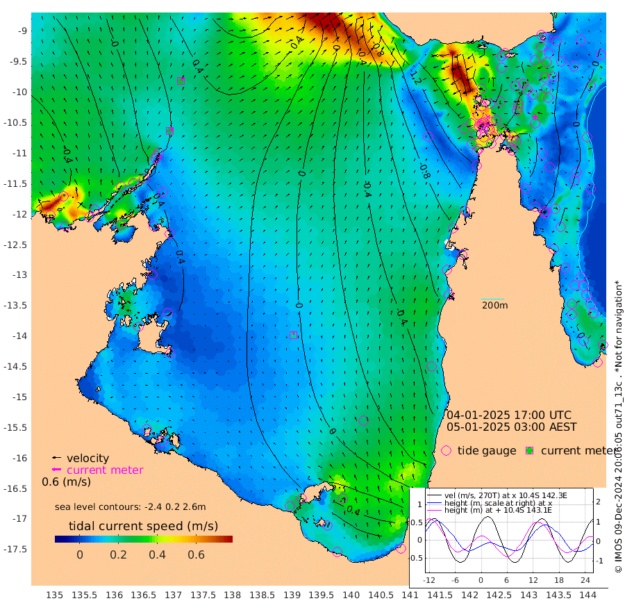 25cm/s 53T +3cm/s rms + 7cm/s -42T. ARA-GOC87 57m 18cm/s 2T +3cm/s rms + 2cm/s -2T. ARA-GOC87 60m 30cm/s 46T +2cm/s rms + 3cm/s 61T. ARA-GOC87 47m 25cm Daru 26cm Bobo Island -1cm Meer Island Barge 6cm Bramble Cay 17cm Unnamed Cay 13cm Pearce Cay 14cm Stephens Island 18cm Merrie England Shoals 17cm Mutacomal Reef 18cm Darnley Island Barge -7cm East Cay 23cm Yorke Island Barge 10cm Rennel Island 19cm Aureed Island 6cm Dungeness Reef 8cm Zagai Island -15cm Yam Island -36cm Dauan Island -26cm Saibai Island -25cm Phipi Reef -2cm Warrior Reef - West -56cm Mabuiag Island Barge 9cm Half Way Island 11cm Coconut Island 6cm Dugong Islet -2cm Poll Island -7cm Kirkcaldie Reef -15cm Suarji Island 8cm Sue Islet -172cm Hawkesbury Island -34cm Alert Patches -32cm Twin Island -142cm Badu Island -28cm St Pauls (Moa Island) -126cm Kubin (Moa Island) -64cm Ince Point -86cm Thursday Island -80cm Nardana Patches -118cm Turtle Head -130cm Round Island -168cm Goods Island -192cm Booby Island -185cm White Rocks Area -156cm Carpentaria -36cm Papou Point -180cm Bampfield Head -161cm Crab Island -188cm Red Wallis Island -152cm Packe Island 13cm Harrington Reef -178cm Herald Camp 3cm Sharp Point -112cm Red Island Point -60cm Possession Island -15cm Alpha Rock -10cm Frederick Point 20cm Wyborn Reef Light 15cm Tetley Island -9cm Triangle Reef 16cm Turtle Head Island -14cm Maclennan Cay -20cm Raine Island 17cm Mcsweeny Reef 16cm Collette Reef 0cm Shadwell Reef 19cm Hannibal Island 3cm Round Point -147cm Vrilya Point -2cm Cape Grenville -5cm Hicks Island -19cm Sir Charles Hardy Island 0cm Harvey Island -9cm Kay Reef -14cm Rocky Island -22cm Chapman Island -21cm Ham Reef -14cm Jubilee Reef -11cm Night Island -23cm Unnamed Reef No. 3 -14cm Morris Island -18cm 1st 3 Mile Opening -17cm Creech Reef -3cm Fife Island -18cm Eden Reef -14cm Stanley Island -13cm Normanby River -37cm Yabooma Island -28cm Hutchison River -25cm Elcho Island -31cm North West Crocodile Island 18cm Cape Wessel 9cm Stevens Island 57cm Guluwuru Island 3cm Hopeful Bay 15cm Auster Point 11cm Two Island Bay 20cm Cadell Strait 174cm Mallison Island 52cm Melville Bay (Gove Harbour) 53cm Truant Island 50cm Cape Arnhem 59cm Cape Grey 61cm Hawk Island 73cm Milner Bay (Groote Eylandt) 61cm Cape Beatrice 71cm West Island 68cm Centre Island 69cm Mornington Island 67cm West Wellesley Islands 71cm Bountiful Island 92cm Albert River Mouth 141cm Sweers Island 83cm Karumba 6cm Nassau River Offshore -41cm Christmas Creek -81cm Archer River -95cm Boyd Point -113cm Weipa (Humbug Point) -88cm Pennefather River -140cm Cullen Point