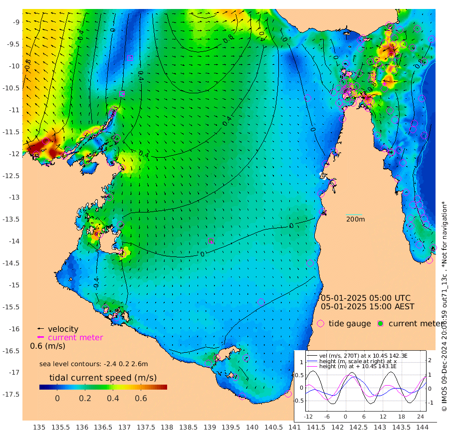 18cm/s 97T +3cm/s rms + 7cm/s -42T. ARA-GOC87 57m 29cm/s 164T +3cm/s rms + 2cm/s -2T. ARA-GOC87 60m 9cm/s 75T +2cm/s rms + 3cm/s 61T. ARA-GOC87 47m 125cm Daru 117cm Bobo Island 76cm Meer Island Barge 93cm Bramble Cay 112cm Unnamed Cay 109cm Pearce Cay 109cm Stephens Island 107cm Merrie England Shoals 119cm Mutacomal Reef 105cm Darnley Island Barge 81cm East Cay 113cm Yorke Island Barge 113cm Rennel Island 108cm Aureed Island 110cm Dungeness Reef 107cm Zagai Island 113cm Yam Island 101cm Dauan Island 97cm Saibai Island 83cm Phipi Reef 119cm Warrior Reef - West 67cm Mabuiag Island Barge 112cm Half Way Island 108cm Coconut Island 119cm Dugong Islet 106cm Poll Island 114cm Kirkcaldie Reef 86cm Suarji Island 111cm Sue Islet 43cm Hawkesbury Island 83cm Alert Patches 92cm Twin Island 41cm Badu Island 95cm St Pauls (Moa Island) 58cm Kubin (Moa Island) 74cm Ince Point 62cm Thursday Island 65cm Nardana Patches 52cm Turtle Head 36cm Round Island 28cm Goods Island 9cm Booby Island 10cm White Rocks Area 3cm Carpentaria 84cm Papou Point 14cm Bampfield Head 7cm Crab Island 16cm Red Wallis Island 44cm Packe Island 118cm Harrington Reef 39cm Herald Camp 26cm Sharp Point 45cm Red Island Point 57cm Possession Island 94cm Alpha Rock 105cm Frederick Point 119cm Wyborn Reef Light 118cm Tetley Island 72cm Triangle Reef 120cm Turtle Head Island 76cm Maclennan Cay 55cm Raine Island 106cm Mcsweeny Reef 97cm Collette Reef 74cm Shadwell Reef 103cm Hannibal Island 92cm Round Point 2cm Vrilya Point 83cm Cape Grenville 83cm Hicks Island 94cm Sir Charles Hardy Island 28cm Harvey Island 73cm Kay Reef 64cm Rocky Island 57cm Chapman Island 60cm Ham Reef 66cm Jubilee Reef 59cm Night Island 58cm Unnamed Reef No. 3 65cm Morris Island 60cm 1st 3 Mile Opening 64cm Creech Reef 73cm Fife Island 67cm Eden Reef 67cm Stanley Island 73cm Normanby River -16cm Yabooma Island -11cm Hutchison River -29cm Elcho Island -30cm North West Crocodile Island 31cm Cape Wessel 1cm Stevens Island 78cm Guluwuru Island -12cm Hopeful Bay 10cm Auster Point 23cm Two Island Bay 47cm Cadell Strait 211cm Mallison Island 50cm Melville Bay (Gove Harbour) 59cm Truant Island 40cm Cape Arnhem 10cm Cape Grey -12cm Hawk Island -50cm Milner Bay (Groote Eylandt) -48cm Cape Beatrice -73cm West Island -84cm Centre Island -58cm Mornington Island -53cm West Wellesley Islands -73cm Bountiful Island -114cm Albert River Mouth -143cm Sweers Island -108cm Karumba -22cm Nassau River Offshore 12cm Christmas Creek 7cm Archer River 21cm Boyd Point 12cm Weipa (Humbug Point) -1cm Pennefather River 8cm Cullen Point