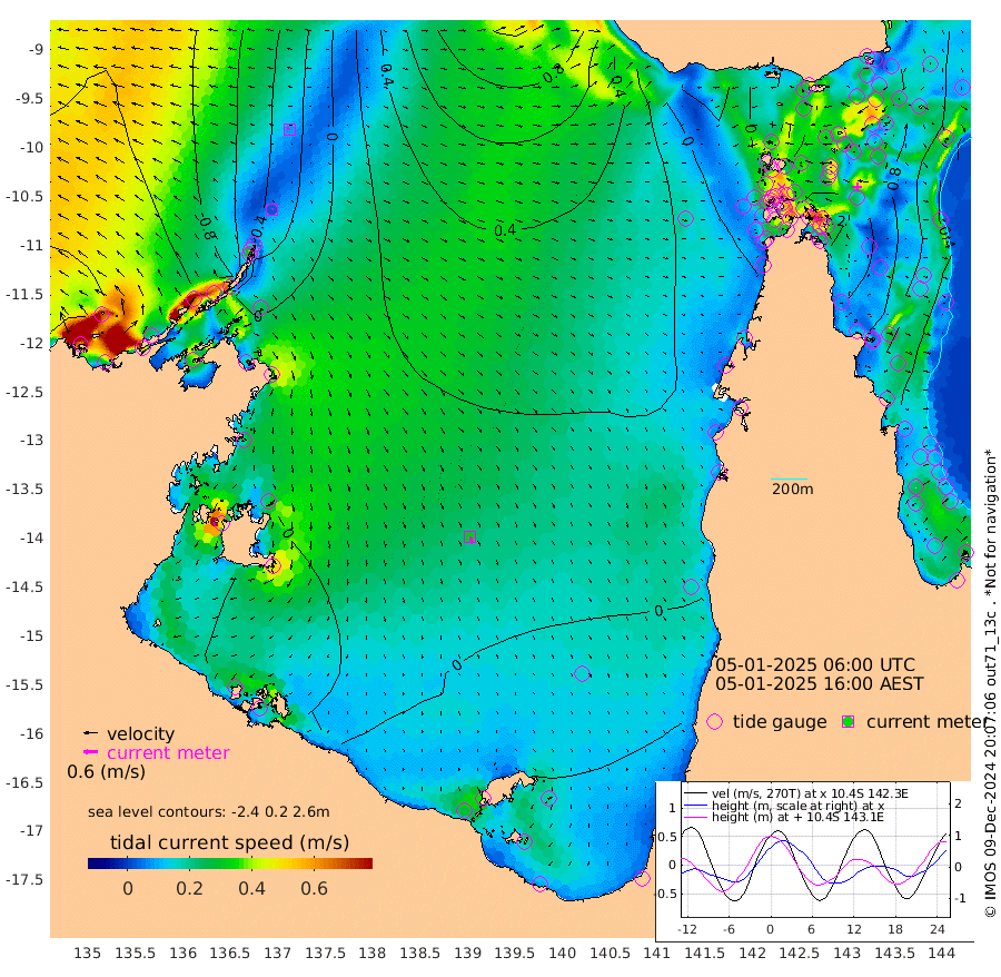 3cm/s 55T +3cm/s rms + 7cm/s -42T. ARA-GOC87 57m 31cm/s 163T +3cm/s rms + 2cm/s -2T. ARA-GOC87 60m 9cm/s -72T +2cm/s rms + 3cm/s 61T. ARA-GOC87 47m 112cm Daru 98cm Bobo Island 52cm Meer Island Barge 69cm Bramble Cay 94cm Unnamed Cay 84cm Pearce Cay 86cm Stephens Island 91cm Merrie England Shoals 108cm Mutacomal Reef 83cm Darnley Island Barge 57cm East Cay 95cm Yorke Island Barge 96cm Rennel Island 90cm Aureed Island 97cm Dungeness Reef 105cm Zagai Island 113cm Yam Island 102cm Dauan Island 104cm Saibai Island 86cm Phipi Reef 117cm Warrior Reef - West 73cm Mabuiag Island Barge 97cm Half Way Island 98cm Coconut Island 106cm Dugong Islet 100cm Poll Island 111cm Kirkcaldie Reef 85cm Suarji Island 108cm Sue Islet 40cm Hawkesbury Island 86cm Alert Patches 93cm Twin Island 40cm Badu Island 98cm St Pauls (Moa Island) 56cm Kubin (Moa Island) 78cm Ince Point 67cm Thursday Island 69cm Nardana Patches 52cm Turtle Head 37cm Round Island 25cm Goods Island 11cm Booby Island 8cm White Rocks Area 18cm Carpentaria 85cm Papou Point 11cm Bampfield Head 15cm Crab Island 22cm Red Wallis Island 48cm Packe Island 106cm Harrington Reef 43cm Herald Camp 34cm Sharp Point 49cm Red Island Point 58cm Possession Island 97cm Alpha Rock 101cm Frederick Point 106cm Wyborn Reef Light 108cm Tetley Island 53cm Triangle Reef 100cm Turtle Head Island 55cm Maclennan Cay 33cm Raine Island 88cm Mcsweeny Reef 80cm Collette Reef 55cm Shadwell Reef 82cm Hannibal Island 68cm Round Point 16cm Vrilya Point 64cm Cape Grenville 60cm Hicks Island 70cm Sir Charles Hardy Island 21cm Harvey Island 53cm Kay Reef 42cm Rocky Island 33cm Chapman Island 39cm Ham Reef 44cm Jubilee Reef 40cm Night Island 38cm Unnamed Reef No. 3 42cm Morris Island 35cm 1st 3 Mile Opening 42cm Creech Reef 50cm Fife Island 37cm Eden Reef 44cm Stanley Island 46cm Normanby River -108cm Yabooma Island -119cm Hutchison River -117cm Elcho Island -113cm North West Crocodile Island -35cm Cape Wessel -81cm Stevens Island 11cm Guluwuru Island -86cm Hopeful Bay -62cm Auster Point -50cm Two Island Bay -51cm Cadell Strait 164cm Mallison Island -11cm Melville Bay (Gove Harbour) -6cm Truant Island 0cm Cape Arnhem -15cm Cape Grey -26cm Hawk Island -47cm Milner Bay (Groote Eylandt) -39cm Cape Beatrice -40cm West Island -50cm Centre Island -29cm Mornington Island -27cm West Wellesley Islands -53cm Bountiful Island -92cm Albert River Mouth -122cm Sweers Island -82cm Karumba 3cm Nassau River Offshore 32cm Christmas Creek 18cm Archer River 29cm Boyd Point 17cm Weipa (Humbug Point) 13cm Pennefather River 21cm Cullen Point