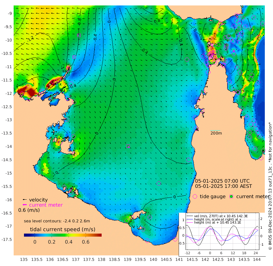 15cm/s -75T +3cm/s rms + 7cm/s -42T. ARA-GOC87 57m 29cm/s 163T +3cm/s rms + 2cm/s -2T. ARA-GOC87 60m 25cm/s -87T +2cm/s rms + 3cm/s 61T. ARA-GOC87 47m 80cm Daru 63cm Bobo Island 21cm Meer Island Barge 35cm Bramble Cay 60cm Unnamed Cay 46cm Pearce Cay 50cm Stephens Island 60cm Merrie England Shoals 80cm Mutacomal Reef 48cm Darnley Island Barge 25cm East Cay 61cm Yorke Island Barge 64cm Rennel Island 57cm Aureed Island 70cm Dungeness Reef 85cm Zagai Island 97cm Yam Island 91cm Dauan Island 96cm Saibai Island 79cm Phipi Reef 98cm Warrior Reef - West 72cm Mabuiag Island Barge 66cm Half Way Island 72cm Coconut Island 76cm Dugong Islet 79cm Poll Island 92cm Kirkcaldie Reef 73cm Suarji Island 88cm Sue Islet 47cm Hawkesbury Island 78cm Alert Patches 83cm Twin Island 44cm Badu Island 89cm St Pauls (Moa Island) 57cm Kubin (Moa Island) 75cm Ince Point 68cm Thursday Island 70cm Nardana Patches 55cm Turtle Head 43cm Round Island 33cm Goods Island 28cm Booby Island 22cm White Rocks Area 42cm Carpentaria 76cm Papou Point 20cm Bampfield Head 33cm Crab Island 39cm Red Wallis Island 57cm Packe Island 78cm Harrington Reef 55cm Herald Camp 36cm Sharp Point 55cm Red Island Point 55cm Possession Island 86cm Alpha Rock 83cm Frederick Point 76cm Wyborn Reef Light 81cm Tetley Island 28cm Triangle Reef 63cm Turtle Head Island 27cm Maclennan Cay 8cm Raine Island 55cm Mcsweeny Reef 49cm Collette Reef 28cm Shadwell Reef 49cm Hannibal Island 34cm Round Point 39cm Vrilya Point 36cm Cape Grenville 28cm Hicks Island 38cm Sir Charles Hardy Island 12cm Harvey Island 25cm Kay Reef 14cm Rocky Island 7cm Chapman Island 14cm Ham Reef 16cm Jubilee Reef 17cm Night Island 14cm Unnamed Reef No. 3 13cm Morris Island 7cm 1st 3 Mile Opening 15cm Creech Reef 20cm Fife Island 3cm Eden Reef 16cm Stanley Island 13cm Normanby River -175cm Yabooma Island -200cm Hutchison River -181cm Elcho Island -170cm North West Crocodile Island -95cm Cape Wessel -147cm Stevens Island -61cm Guluwuru Island -143cm Hopeful Bay -123cm Auster Point -113cm Two Island Bay -138cm Cadell Strait 77cm Mallison Island -72cm Melville Bay (Gove Harbour) -73cm Truant Island -44cm Cape Arnhem -42cm Cape Grey -41cm Hawk Island -43cm Milner Bay (Groote Eylandt) -29cm Cape Beatrice -8cm West Island -14cm Centre Island -1cm Mornington Island -2cm West Wellesley Islands -29cm Bountiful Island -62cm Albert River Mouth -92cm Sweers Island -47cm Karumba 28cm Nassau River Offshore 50cm Christmas Creek 33cm Archer River 40cm Boyd Point 30cm Weipa (Humbug Point) 31cm Pennefather River 42cm Cullen Point