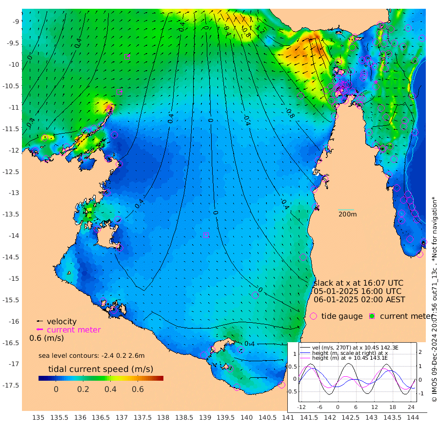 28cm/s 81T +3cm/s rms + 7cm/s -42T. ARA-GOC87 57m 12cm/s -40T +3cm/s rms + 2cm/s -2T. ARA-GOC87 60m 33cm/s 66T +2cm/s rms + 3cm/s 61T. ARA-GOC87 47m 11cm Daru 18cm Bobo Island 21cm Meer Island Barge 21cm Bramble Cay 13cm Unnamed Cay 23cm Pearce Cay 20cm Stephens Island 13cm Merrie England Shoals -1cm Mutacomal Reef 23cm Darnley Island Barge 16cm East Cay 16cm Yorke Island Barge 6cm Rennel Island 16cm Aureed Island 0cm Dungeness Reef -17cm Zagai Island -38cm Yam Island -39cm Dauan Island -50cm Saibai Island -23cm Phipi Reef -18cm Warrior Reef - West -74cm Mabuiag Island Barge 6cm Half Way Island -4cm Coconut Island -4cm Dugong Islet -19cm Poll Island -26cm Kirkcaldie Reef -38cm Suarji Island -22cm Sue Islet -141cm Hawkesbury Island -55cm Alert Patches -53cm Twin Island -114cm Badu Island -53cm St Pauls (Moa Island) -105cm Kubin (Moa Island) -74cm Ince Point -89cm Thursday Island -84cm Nardana Patches -98cm Turtle Head -113cm Round Island -127cm Goods Island -151cm Booby Island -146cm White Rocks Area -157cm Carpentaria -57cm Papou Point -155cm Bampfield Head -127cm Crab Island -151cm Red Wallis Island -120cm Packe Island -5cm Harrington Reef -148cm Herald Camp -15cm Sharp Point -101cm Red Island Point -69cm Possession Island -48cm Alpha Rock -31cm Frederick Point -1cm Wyborn Reef Light -9cm Tetley Island 7cm Triangle Reef 5cm Turtle Head Island 6cm Maclennan Cay 12cm Raine Island 15cm Mcsweeny Reef 16cm Collette Reef 15cm Shadwell Reef 22cm Hannibal Island 20cm Round Point -126cm Vrilya Point 10cm Cape Grenville 16cm Hicks Island 2cm Sir Charles Hardy Island 5cm Harvey Island 8cm Kay Reef 13cm Rocky Island 10cm Chapman Island 5cm Ham Reef 11cm Jubilee Reef 14cm Night Island 5cm Unnamed Reef No. 3 15cm Morris Island 13cm 1st 3 Mile Opening 12cm Creech Reef 27cm Fife Island 23cm Eden Reef 13cm Stanley Island 18cm Normanby River 75cm Yabooma Island 100cm Hutchison River 84cm Elcho Island 74cm North West Crocodile Island 65cm Cape Wessel 92cm Stevens Island 96cm Guluwuru Island 83cm Hopeful Bay 77cm Auster Point 77cm Two Island Bay 125cm Cadell Strait 151cm Mallison Island 93cm Melville Bay (Gove Harbour) 93cm Truant Island 72cm Cape Arnhem 63cm Cape Grey 63cm Hawk Island 54cm Milner Bay (Groote Eylandt) 47cm Cape Beatrice 29cm West Island 26cm Centre Island 67cm Mornington Island 63cm West Wellesley Islands 83cm Bountiful Island 122cm Albert River Mouth 155cm Sweers Island 111cm Karumba 32cm Nassau River Offshore -9cm Christmas Creek -47cm Archer River -70cm Boyd Point -71cm Weipa (Humbug Point) -69cm Pennefather River -116cm Cullen Point