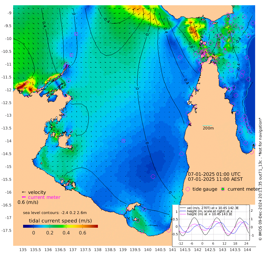 14cm/s -110T +3cm/s rms + 7cm/s -42T. ARA-GOC87 57m 9cm/s -10T +3cm/s rms + 2cm/s -2T. ARA-GOC87 60m 12cm/s -139T +2cm/s rms + 3cm/s 61T. ARA-GOC87 47m -40cm Daru -39cm Bobo Island -27cm Meer Island Barge -34cm Bramble Cay -35cm Unnamed Cay -33cm Pearce Cay -39cm Stephens Island -42cm Merrie England Shoals -34cm Mutacomal Reef -40cm Darnley Island Barge -26cm East Cay -37cm Yorke Island Barge -29cm Rennel Island -31cm Aureed Island -21cm Dungeness Reef -6cm Zagai Island -1cm Yam Island 26cm Dauan Island 24cm Saibai Island 16cm Phipi Reef -8cm Warrior Reef - West 51cm Mabuiag Island Barge -36cm Half Way Island -21cm Coconut Island -28cm Dugong Islet -9cm Poll Island -18cm Kirkcaldie Reef 26cm Suarji Island -12cm Sue Islet 109cm Hawkesbury Island 27cm Alert Patches 19cm Twin Island 94cm Badu Island 21cm St Pauls (Moa Island) 76cm Kubin (Moa Island) 42cm Ince Point 56cm Thursday Island 53cm Nardana Patches 74cm Turtle Head 95cm Round Island 105cm Goods Island 120cm Booby Island 123cm White Rocks Area 98cm Carpentaria 24cm Papou Point 143cm Bampfield Head 87cm Crab Island 110cm Red Wallis Island 82cm Packe Island -28cm Harrington Reef 111cm Herald Camp -3cm Sharp Point 63cm Red Island Point 52cm Possession Island 10cm Alpha Rock -2cm Frederick Point -25cm Wyborn Reef Light -20cm Tetley Island -14cm Triangle Reef -26cm Turtle Head Island -18cm Maclennan Cay -13cm Raine Island -35cm Mcsweeny Reef -33cm Collette Reef -24cm Shadwell Reef -40cm Hannibal Island -31cm Round Point 70cm Vrilya Point -28cm Cape Grenville -25cm Hicks Island -17cm Sir Charles Hardy Island -10cm Harvey Island -23cm Kay Reef -17cm Rocky Island -8cm Chapman Island -12cm Ham Reef -18cm Jubilee Reef -22cm Night Island -13cm Unnamed Reef No. 3 -20cm Morris Island -11cm 1st 3 Mile Opening -18cm Creech Reef -31cm Fife Island -22cm Eden Reef -22cm Stanley Island -25cm Normanby River 79cm Yabooma Island 77cm Hutchison River 69cm Elcho Island 67cm North West Crocodile Island 26cm Cape Wessel 41cm Stevens Island -19cm Guluwuru Island 45cm Hopeful Bay 38cm Auster Point 25cm Two Island Bay 9cm Cadell Strait -160cm Mallison Island -7cm Melville Bay (Gove Harbour) -5cm Truant Island -13cm Cape Arnhem -11cm Cape Grey -14cm Hawk Island -15cm Milner Bay (Groote Eylandt) -20cm Cape Beatrice -28cm West Island -24cm Centre Island -53cm Mornington Island -46cm West Wellesley Islands -34cm Bountiful Island -52cm Albert River Mouth -56cm Sweers Island -54cm Karumba -44cm Nassau River Offshore -21cm Christmas Creek 19cm Archer River 37cm Boyd Point 48cm Weipa (Humbug Point) 28cm Pennefather River 70cm Cullen Point