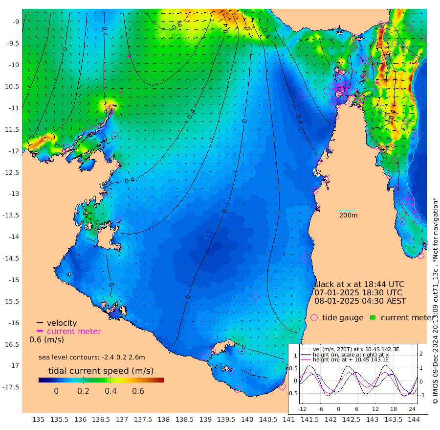 28cm/s 91T +3cm/s rms + 7cm/s -42T. ARA-GOC87 57m 1cm/s 81T +3cm/s rms + 2cm/s -2T. ARA-GOC87 60m 26cm/s 78T +2cm/s rms + 3cm/s 61T. ARA-GOC87 47m 22cm Daru 32cm Bobo Island 50cm Meer Island Barge 45cm Bramble Cay 32cm Unnamed Cay 35cm Pearce Cay 43cm Stephens Island 36cm Merrie England Shoals 11cm Mutacomal Reef 49cm Darnley Island Barge 46cm East Cay 35cm Yorke Island Barge 22cm Rennel Island 30cm Aureed Island 5cm Dungeness Reef -21cm Zagai Island -40cm Yam Island -61cm Dauan Island -61cm Saibai Island -50cm Phipi Reef -28cm Warrior Reef - West -77cm Mabuiag Island Barge 23cm Half Way Island 8cm Coconut Island 10cm Dugong Islet -17cm Poll Island -16cm Kirkcaldie Reef -43cm Suarji Island -16cm Sue Islet -117cm Hawkesbury Island -49cm Alert Patches -47cm Twin Island -99cm Badu Island -54cm St Pauls (Moa Island) -89cm Kubin (Moa Island) -66cm Ince Point -76cm Thursday Island -74cm Nardana Patches -82cm Turtle Head -94cm Round Island -97cm Goods Island -107cm Booby Island -112cm White Rocks Area -85cm Carpentaria -52cm Papou Point -102cm Bampfield Head -87cm Crab Island -111cm Red Wallis Island -96cm Packe Island 11cm Harrington Reef -117cm Herald Camp -18cm Sharp Point -84cm Red Island Point -59cm Possession Island -40cm Alpha Rock -22cm Frederick Point 11cm Wyborn Reef Light 1cm Tetley Island 29cm Triangle Reef 22cm Turtle Head Island 35cm Maclennan Cay 43cm Raine Island 36cm Mcsweeny Reef 39cm Collette Reef 42cm Shadwell Reef 47cm Hannibal Island 44cm Round Point -77cm Vrilya Point 40cm Cape Grenville 43cm Hicks Island 35cm Sir Charles Hardy Island 14cm Harvey Island 43cm Kay Reef 43cm Rocky Island 39cm Chapman Island 39cm Ham Reef 44cm Jubilee Reef 42cm Night Island 39cm Unnamed Reef No. 3 48cm Morris Island 47cm 1st 3 Mile Opening 46cm Creech Reef 56cm Fife Island 60cm Eden Reef 49cm Stanley Island 51cm Normanby River 11cm Yabooma Island 37cm Hutchison River 28cm Elcho Island 13cm North West Crocodile Island 45cm Cape Wessel 41cm Stevens Island 89cm Guluwuru Island 35cm Hopeful Bay 44cm Auster Point 43cm Two Island Bay 73cm Cadell Strait 185cm Mallison Island 75cm Melville Bay (Gove Harbour) 79cm Truant Island 62cm Cape Arnhem 46cm Cape Grey 37cm Hawk Island 21cm Milner Bay (Groote Eylandt) 15cm Cape Beatrice -4cm West Island -5cm Centre Island 12cm Mornington Island 8cm West Wellesley Islands 0cm Bountiful Island 14cm Albert River Mouth 34cm Sweers Island 5cm Karumba -8cm Nassau River Offshore -20cm Christmas Creek -32cm Archer River -40cm Boyd Point -48cm Weipa (Humbug Point) -35cm Pennefather River -76cm Cullen Point