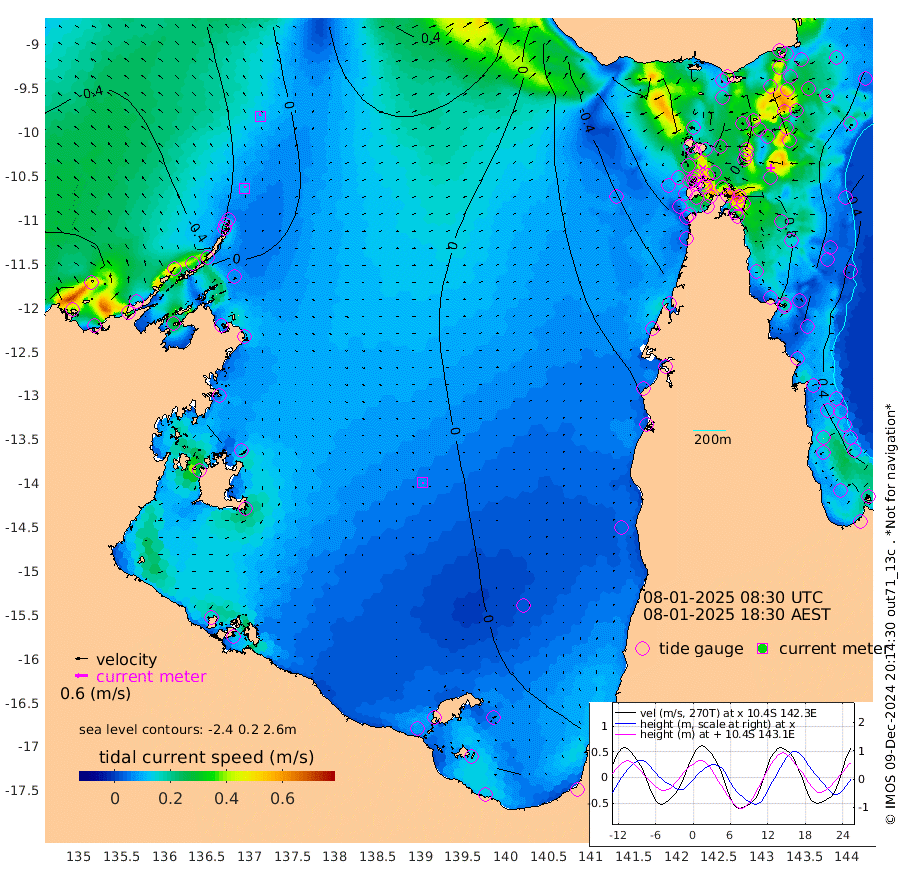 11cm/s 7T +3cm/s rms + 7cm/s -42T. ARA-GOC87 57m 7cm/s 157T +3cm/s rms + 2cm/s -2T. ARA-GOC87 60m 12cm/s -8T +2cm/s rms + 3cm/s 61T. ARA-GOC87 47m 65cm Daru 65cm Bobo Island 46cm Meer Island Barge 59cm Bramble Cay 67cm Unnamed Cay 56cm Pearce Cay 66cm Stephens Island 71cm Merrie England Shoals 68cm Mutacomal Reef 64cm Darnley Island Barge 52cm East Cay 64cm Yorke Island Barge 59cm Rennel Island 55cm Aureed Island 45cm Dungeness Reef 27cm Zagai Island 36cm Yam Island -19cm Dauan Island -4cm Saibai Island -12cm Phipi Reef 27cm Warrior Reef - West -28cm Mabuiag Island Barge 65cm Half Way Island 46cm Coconut Island 62cm Dugong Islet 35cm Poll Island 50cm Kirkcaldie Reef 1cm Suarji Island 41cm Sue Islet -64cm Hawkesbury Island -4cm Alert Patches 9cm Twin Island -75cm Badu Island 3cm St Pauls (Moa Island) -44cm Kubin (Moa Island) -17cm Ince Point -31cm Thursday Island -29cm Nardana Patches -52cm Turtle Head -55cm Round Island -79cm Goods Island -94cm Booby Island -90cm White Rocks Area -68cm Carpentaria 8cm Papou Point -96cm Bampfield Head -74cm Crab Island -82cm Red Wallis Island -54cm Packe Island 61cm Harrington Reef -57cm Herald Camp 9cm Sharp Point -31cm Red Island Point -20cm Possession Island 23cm Alpha Rock 32cm Frederick Point 56cm Wyborn Reef Light 52cm Tetley Island 33cm Triangle Reef 54cm Turtle Head Island 43cm Maclennan Cay 26cm Raine Island 58cm Mcsweeny Reef 56cm Collette Reef 40cm Shadwell Reef 64cm Hannibal Island 56cm Round Point -65cm Vrilya Point 56cm Cape Grenville 51cm Hicks Island 53cm Sir Charles Hardy Island 19cm Harvey Island 51cm Kay Reef 38cm Rocky Island 27cm Chapman Island 33cm Ham Reef 37cm Jubilee Reef 34cm Night Island 32cm Unnamed Reef No. 3 39cm Morris Island 26cm 1st 3 Mile Opening 36cm Creech Reef 39cm Fife Island 42cm Eden Reef 43cm Stanley Island 54cm Normanby River -57cm Yabooma Island -63cm Hutchison River -59cm Elcho Island -52cm North West Crocodile Island -10cm Cape Wessel -37cm Stevens Island 19cm Guluwuru Island -37cm Hopeful Bay -29cm Auster Point -11cm Two Island Bay -14cm Cadell Strait 116cm Mallison Island 1cm Melville Bay (Gove Harbour) 0cm Truant Island 3cm Cape Arnhem 4cm Cape Grey 2cm Hawk Island 1cm Milner Bay (Groote Eylandt) 6cm Cape Beatrice 16cm West Island 11cm Centre Island 23cm Mornington Island 19cm West Wellesley Islands 17cm Bountiful Island 4cm Albert River Mouth -4cm Sweers Island 11cm Karumba 19cm Nassau River Offshore 9cm Christmas Creek -25cm Archer River -33cm Boyd Point -44cm Weipa (Humbug Point) -43cm Pennefather River -55cm Cullen Point