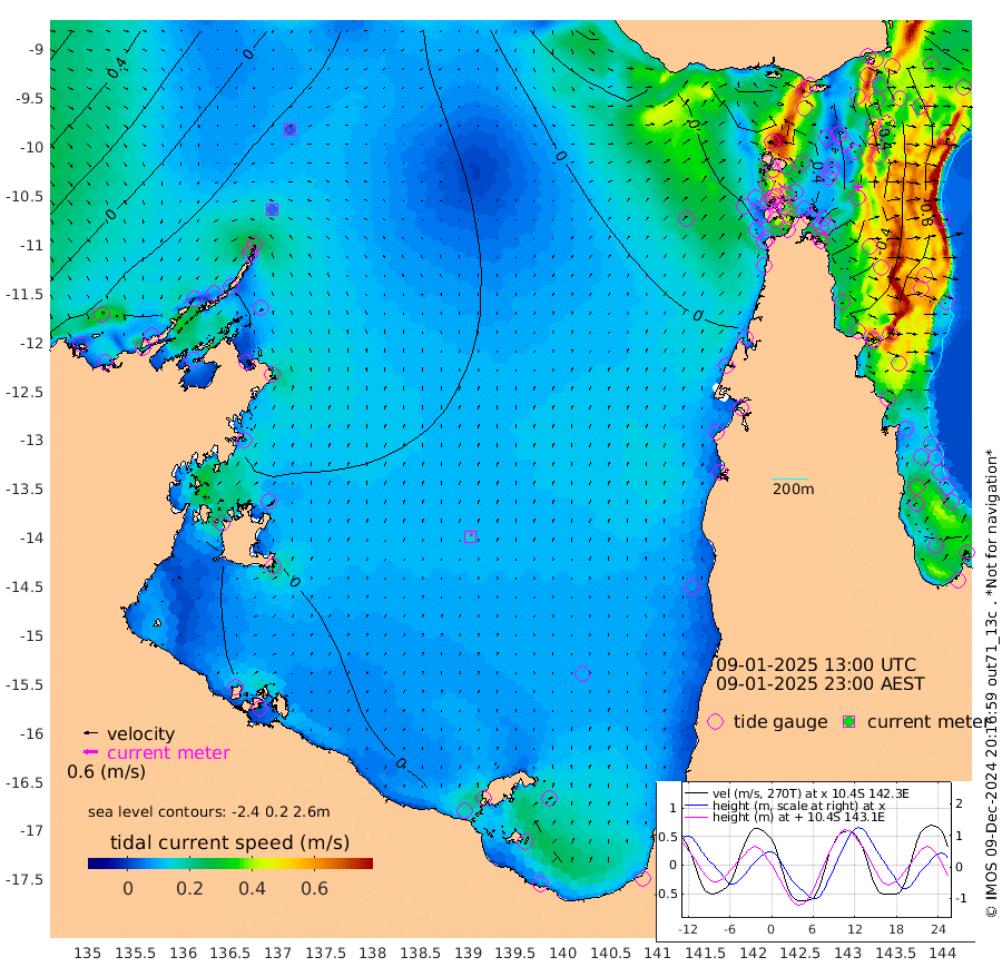6cm/s -70T +3cm/s rms + 7cm/s -42T. ARA-GOC87 57m 15cm/s 13T +3cm/s rms + 2cm/s -2T. ARA-GOC87 60m 4cm/s -107T +2cm/s rms + 3cm/s 61T. ARA-GOC87 47m -33cm Daru -41cm Bobo Island -77cm Meer Island Barge -67cm Bramble Cay -49cm Unnamed Cay -48cm Pearce Cay -61cm Stephens Island -47cm Merrie England Shoals -23cm Mutacomal Reef -66cm Darnley Island Barge -80cm East Cay -48cm Yorke Island Barge -42cm Rennel Island -44cm Aureed Island -25cm Dungeness Reef -1cm Zagai Island 8cm Yam Island 4cm Dauan Island 8cm Saibai Island 0cm Phipi Reef -5cm Warrior Reef - West 26cm Mabuiag Island Barge -32cm Half Way Island -23cm Coconut Island -26cm Dugong Islet -1cm Poll Island -4cm Kirkcaldie Reef 5cm Suarji Island -2cm Sue Islet 12cm Hawkesbury Island 13cm Alert Patches 15cm Twin Island 10cm Badu Island 24cm St Pauls (Moa Island) 8cm Kubin (Moa Island) 18cm Ince Point 20cm Thursday Island 19cm Nardana Patches 3cm Turtle Head -1cm Round Island -5cm Goods Island 0cm Booby Island 6cm White Rocks Area 5cm Carpentaria 19cm Papou Point -28cm Bampfield Head 7cm Crab Island 10cm Red Wallis Island 6cm Packe Island -20cm Harrington Reef -11cm Herald Camp 18cm Sharp Point 15cm Red Island Point 5cm Possession Island 16cm Alpha Rock 0cm Frederick Point -22cm Wyborn Reef Light -13cm Tetley Island -59cm Triangle Reef -26cm Turtle Head Island -71cm Maclennan Cay -80cm Raine Island -51cm Mcsweeny Reef -57cm Collette Reef -70cm Shadwell Reef -63cm Hannibal Island -68cm Round Point 19cm Vrilya Point -67cm Cape Grenville -75cm Hicks Island -87cm Sir Charles Hardy Island -22cm Harvey Island -77cm Kay Reef -82cm Rocky Island -83cm Chapman Island -82cm Ham Reef -80cm Jubilee Reef -71cm Night Island -80cm Unnamed Reef No. 3 -85cm Morris Island -86cm 1st 3 Mile Opening -83cm Creech Reef -85cm Fife Island -102cm Eden Reef -85cm Stanley Island -87cm Normanby River -37cm Yabooma Island -63cm Hutchison River -43cm Elcho Island -28cm North West Crocodile Island -43cm Cape Wessel -33cm Stevens Island -77cm Guluwuru Island -40cm Hopeful Bay -41cm Auster Point -36cm Two Island Bay -59cm Cadell Strait -114cm Mallison Island -62cm Melville Bay (Gove Harbour) -66cm Truant Island -48cm Cape Arnhem -28cm Cape Grey -15cm Hawk Island 19cm Milner Bay (Groote Eylandt) 19cm Cape Beatrice 49cm West Island 49cm Centre Island 7cm Mornington Island 9cm West Wellesley Islands -6cm Bountiful Island 13cm Albert River Mouth 19cm Sweers Island 14cm Karumba -4cm Nassau River Offshore -23cm Christmas Creek -23cm Archer River -24cm Boyd Point -32cm Weipa (Humbug Point) 7cm Pennefather River 2cm Cullen Point
