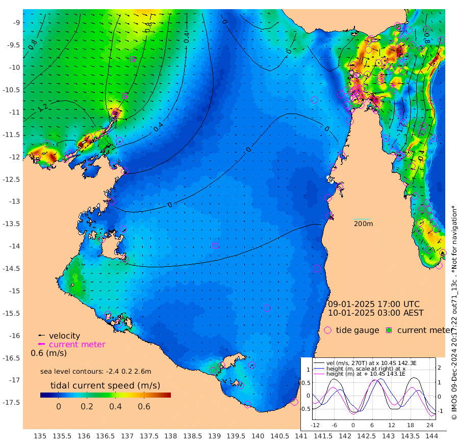 28cm/s 120T +3cm/s rms + 7cm/s -42T. ARA-GOC87 57m 7cm/s -2T +3cm/s rms + 2cm/s -2T. ARA-GOC87 60m 29cm/s 114T +2cm/s rms + 3cm/s 61T. ARA-GOC87 47m -119cm Daru -110cm Bobo Island -54cm Meer Island Barge -80cm Bramble Cay -115cm Unnamed Cay -98cm Pearce Cay -100cm Stephens Island -114cm Merrie England Shoals -130cm Mutacomal Reef -91cm Darnley Island Barge -62cm East Cay -105cm Yorke Island Barge -112cm Rennel Island -106cm Aureed Island -113cm Dungeness Reef -100cm Zagai Island -111cm Yam Island -57cm Dauan Island -63cm Saibai Island -77cm Phipi Reef -102cm Warrior Reef - West -51cm Mabuiag Island Barge -113cm Half Way Island -113cm Coconut Island -124cm Dugong Islet -111cm Poll Island -121cm Kirkcaldie Reef -113cm Suarji Island -111cm Sue Islet -7cm Hawkesbury Island -97cm Alert Patches -100cm Twin Island 0cm Badu Island -98cm St Pauls (Moa Island) -32cm Kubin (Moa Island) -72cm Ince Point -57cm Thursday Island -61cm Nardana Patches -35cm Turtle Head -32cm Round Island 2cm Goods Island 21cm Booby Island 9cm White Rocks Area 10cm Carpentaria -84cm Papou Point -4cm Bampfield Head 26cm Crab Island 13cm Red Wallis Island -23cm Packe Island -132cm Harrington Reef -27cm Herald Camp -36cm Sharp Point -32cm Red Island Point -73cm Possession Island -105cm Alpha Rock -111cm Frederick Point -121cm Wyborn Reef Light -120cm Tetley Island -53cm Triangle Reef -114cm Turtle Head Island -60cm Maclennan Cay -28cm Raine Island -99cm Mcsweeny Reef -92cm Collette Reef -56cm Shadwell Reef -100cm Hannibal Island -80cm Round Point 29cm Vrilya Point -81cm Cape Grenville -68cm Hicks Island -73cm Sir Charles Hardy Island -25cm Harvey Island -65cm Kay Reef -45cm Rocky Island -32cm Chapman Island -35cm Ham Reef -40cm Jubilee Reef -42cm Night Island -35cm Unnamed Reef No. 3 -45cm Morris Island -37cm 1st 3 Mile Opening -42cm Creech Reef -36cm Fife Island -41cm Eden Reef -50cm Stanley Island -55cm Normanby River 134cm Yabooma Island 149cm Hutchison River 139cm Elcho Island 131cm North West Crocodile Island 81cm Cape Wessel 121cm Stevens Island 58cm Guluwuru Island 111cm Hopeful Bay 95cm Auster Point 96cm Two Island Bay 136cm Cadell Strait 35cm Mallison Island 62cm Melville Bay (Gove Harbour) 66cm Truant Island 39cm Cape Arnhem 15cm Cape Grey 4cm Hawk Island -7cm Milner Bay (Groote Eylandt) -17cm Cape Beatrice -48cm West Island -50cm Centre Island -55cm Mornington Island -60cm West Wellesley Islands -60cm Bountiful Island -29cm Albert River Mouth -24cm Sweers Island -37cm Karumba -44cm Nassau River Offshore -38cm Christmas Creek -2cm Archer River -1cm Boyd Point 7cm Weipa (Humbug Point) 20cm Pennefather River 14cm Cullen Point