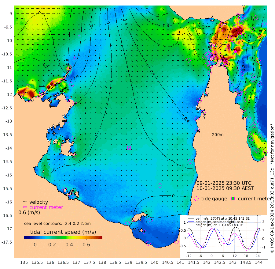 9cm/s -100T +3cm/s rms + 7cm/s -42T. ARA-GOC87 57m 17cm/s 154T +3cm/s rms + 2cm/s -2T. ARA-GOC87 60m 16cm/s -102T +2cm/s rms + 3cm/s 61T. ARA-GOC87 47m 135cm Daru 129cm Bobo Island 74cm Meer Island Barge 98cm Bramble Cay 133cm Unnamed Cay 125cm Pearce Cay 120cm Stephens Island 134cm Merrie England Shoals 145cm Mutacomal Reef 111cm Darnley Island Barge 78cm East Cay 124cm Yorke Island Barge 133cm Rennel Island 128cm Aureed Island 136cm Dungeness Reef 115cm Zagai Island 118cm Yam Island 71cm Dauan Island 68cm Saibai Island 89cm Phipi Reef 111cm Warrior Reef - West 77cm Mabuiag Island Barge 134cm Half Way Island 141cm Coconut Island 144cm Dugong Islet 133cm Poll Island 140cm Kirkcaldie Reef 141cm Suarji Island 129cm Sue Islet 64cm Hawkesbury Island 139cm Alert Patches 134cm Twin Island 64cm Badu Island 130cm St Pauls (Moa Island) 80cm Kubin (Moa Island) 113cm Ince Point 105cm Thursday Island 106cm Nardana Patches 92cm Turtle Head 78cm Round Island 70cm Goods Island 62cm Booby Island 68cm White Rocks Area 71cm Carpentaria 110cm Papou Point 85cm Bampfield Head 45cm Crab Island 62cm Red Wallis Island 80cm Packe Island 158cm Harrington Reef 67cm Herald Camp 37cm Sharp Point 72cm Red Island Point 111cm Possession Island 127cm Alpha Rock 141cm Frederick Point 144cm Wyborn Reef Light 142cm Tetley Island 74cm Triangle Reef 152cm Turtle Head Island 78cm Maclennan Cay 50cm Raine Island 123cm Mcsweeny Reef 113cm Collette Reef 77cm Shadwell Reef 122cm Hannibal Island 101cm Round Point 49cm Vrilya Point 99cm Cape Grenville 84cm Hicks Island 85cm Sir Charles Hardy Island 29cm Harvey Island 83cm Kay Reef 61cm Rocky Island 52cm Chapman Island 51cm Ham Reef 60cm Jubilee Reef 61cm Night Island 56cm Unnamed Reef No. 3 66cm Morris Island 65cm 1st 3 Mile Opening 65cm Creech Reef 56cm Fife Island 64cm Eden Reef 70cm Stanley Island 69cm Normanby River -147cm Yabooma Island -150cm Hutchison River -144cm Elcho Island -147cm North West Crocodile Island -82cm Cape Wessel -125cm Stevens Island -49cm Guluwuru Island -120cm Hopeful Bay -91cm Auster Point -105cm Two Island Bay -138cm Cadell Strait -27cm Mallison Island -57cm Melville Bay (Gove Harbour) -55cm Truant Island -32cm Cape Arnhem -23cm Cape Grey -21cm Hawk Island -24cm Milner Bay (Groote Eylandt) -17cm Cape Beatrice 0cm West Island 4cm Centre Island -10cm Mornington Island -3cm West Wellesley Islands -37cm Bountiful Island -77cm Albert River Mouth -83cm Sweers Island -72cm Karumba -3cm Nassau River Offshore 22cm Christmas Creek 28cm Archer River 40cm Boyd Point 30cm Weipa (Humbug Point) 42cm Pennefather River 39cm Cullen Point