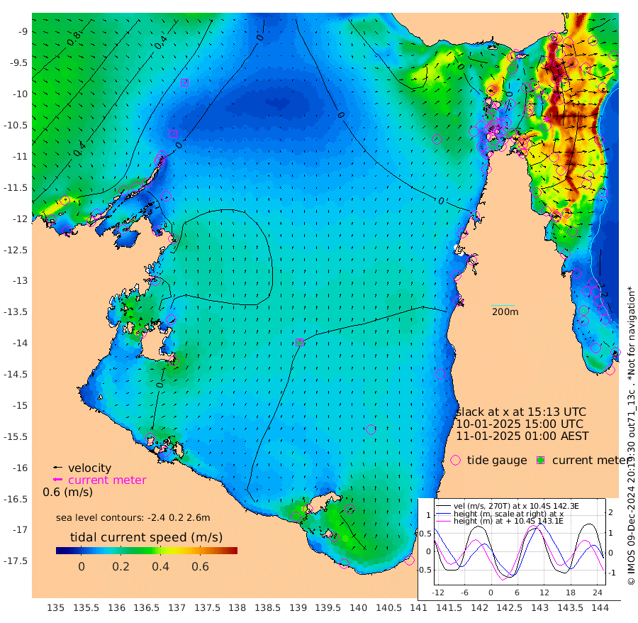 5cm/s 122T +3cm/s rms + 7cm/s -42T. ARA-GOC87 57m 22cm/s 12T +3cm/s rms + 2cm/s -2T. ARA-GOC87 60m 9cm/s 125T +2cm/s rms + 3cm/s 61T. ARA-GOC87 47m -98cm Daru -106cm Bobo Island -116cm Meer Island Barge -123cm Bramble Cay -118cm Unnamed Cay -112cm Pearce Cay -123cm Stephens Island -120cm Merrie England Shoals -99cm Mutacomal Reef -122cm Darnley Island Barge -125cm East Cay -108cm Yorke Island Barge -106cm Rennel Island -105cm Aureed Island -87cm Dungeness Reef -43cm Zagai Island -42cm Yam Island -5cm Dauan Island -3cm Saibai Island -27cm Phipi Reef -48cm Warrior Reef - West 17cm Mabuiag Island Barge -100cm Half Way Island -84cm Coconut Island -95cm Dugong Islet -57cm Poll Island -68cm Kirkcaldie Reef -40cm Suarji Island -54cm Sue Islet 14cm Hawkesbury Island -28cm Alert Patches -30cm Twin Island 18cm Badu Island -15cm St Pauls (Moa Island) -1cm Kubin (Moa Island) -10cm Ince Point -1cm Thursday Island -3cm Nardana Patches -9cm Turtle Head -4cm Round Island 0cm Goods Island 16cm Booby Island 14cm White Rocks Area 21cm Carpentaria -16cm Papou Point -9cm Bampfield Head 21cm Crab Island 18cm Red Wallis Island -5cm Packe Island -94cm Harrington Reef -11cm Herald Camp 3cm Sharp Point 0cm Red Island Point -20cm Possession Island -31cm Alpha Rock -56cm Frederick Point -87cm Wyborn Reef Light -76cm Tetley Island -94cm Triangle Reef -90cm Turtle Head Island -111cm Maclennan Cay -104cm Raine Island -110cm Mcsweeny Reef -113cm Collette Reef -107cm Shadwell Reef -126cm Hannibal Island -124cm Round Point 31cm Vrilya Point -122cm Cape Grenville -121cm Hicks Island -133cm Sir Charles Hardy Island -38cm Harvey Island -124cm Kay Reef -116cm Rocky Island -111cm Chapman Island -109cm Ham Reef -111cm Jubilee Reef -103cm Night Island -110cm Unnamed Reef No. 3 -120cm Morris Island -113cm 1st 3 Mile Opening -116cm Creech Reef -114cm Fife Island -139cm Eden Reef -123cm Stanley Island -132cm Normanby River 23cm Yabooma Island 1cm Hutchison River 17cm Elcho Island 26cm North West Crocodile Island -2cm Cape Wessel 20cm Stevens Island -47cm Guluwuru Island 9cm Hopeful Bay 7cm Auster Point 9cm Two Island Bay -3cm Cadell Strait -100cm Mallison Island -29cm Melville Bay (Gove Harbour) -28cm Truant Island -24cm Cape Arnhem -14cm Cape Grey -9cm Hawk Island 19cm Milner Bay (Groote Eylandt) 10cm Cape Beatrice 26cm West Island 25cm Centre Island -29cm Mornington Island -28cm West Wellesley Islands -41cm Bountiful Island -16cm Albert River Mouth -1cm Sweers Island -20cm Karumba -43cm Nassau River Offshore -55cm Christmas Creek -34cm Archer River -25cm Boyd Point -31cm Weipa (Humbug Point) 11cm Pennefather River 11cm Cullen Point