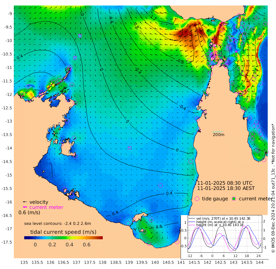 13cm/s -25T +3cm/s rms + 7cm/s -42T. ARA-GOC87 57m 15cm/s -72T +3cm/s rms + 2cm/s -2T. ARA-GOC87 60m 14cm/s 2T +2cm/s rms + 3cm/s 61T. ARA-GOC87 47m -28cm Daru -17cm Bobo Island 28cm Meer Island Barge 21cm Bramble Cay -6cm Unnamed Cay -12cm Pearce Cay 3cm Stephens Island -3cm Merrie England Shoals -28cm Mutacomal Reef 8cm Darnley Island Barge 34cm East Cay -13cm Yorke Island Barge -21cm Rennel Island -18cm Aureed Island -41cm Dungeness Reef -66cm Zagai Island -66cm Yam Island -82cm Dauan Island -76cm Saibai Island -65cm Phipi Reef -62cm Warrior Reef - West -102cm Mabuiag Island Barge -24cm Half Way Island -47cm Coconut Island -37cm Dugong Islet -65cm Poll Island -59cm Kirkcaldie Reef -87cm Suarji Island -65cm Sue Islet -113cm Hawkesbury Island -103cm Alert Patches -96cm Twin Island -115cm Badu Island -106cm St Pauls (Moa Island) -102cm Kubin (Moa Island) -105cm Ince Point -111cm Thursday Island -109cm Nardana Patches -104cm Turtle Head -95cm Round Island -106cm Goods Island -119cm Booby Island -115cm White Rocks Area -122cm Carpentaria -89cm Papou Point -116cm Bampfield Head -102cm Crab Island -115cm Red Wallis Island -100cm Packe Island -49cm Harrington Reef -89cm Herald Camp -31cm Sharp Point -89cm Red Island Point -92cm Possession Island -82cm Alpha Rock -75cm Frederick Point -43cm Wyborn Reef Light -53cm Tetley Island 9cm Triangle Reef -55cm Turtle Head Island 21cm Maclennan Cay 33cm Raine Island -10cm Mcsweeny Reef 1cm Collette Reef 20cm Shadwell Reef 7cm Hannibal Island 19cm Round Point -110cm Vrilya Point 21cm Cape Grenville 27cm Hicks Island 32cm Sir Charles Hardy Island 7cm Harvey Island 33cm Kay Reef 38cm Rocky Island 38cm Chapman Island 37cm Ham Reef 33cm Jubilee Reef 29cm Night Island 35cm Unnamed Reef No. 3 38cm Morris Island 28cm 1st 3 Mile Opening 33cm Creech Reef 37cm Fife Island 53cm Eden Reef 38cm Stanley Island 48cm Normanby River 73cm Yabooma Island 87cm Hutchison River 78cm Elcho Island 77cm North West Crocodile Island 42cm Cape Wessel 62cm Stevens Island 50cm Guluwuru Island 72cm Hopeful Bay 44cm Auster Point 52cm Two Island Bay 76cm Cadell Strait 72cm Mallison Island 47cm Melville Bay (Gove Harbour) 40cm Truant Island 30cm Cape Arnhem 30cm Cape Grey 38cm Hawk Island 35cm Milner Bay (Groote Eylandt) 39cm Cape Beatrice 32cm West Island 31cm Centre Island 88cm Mornington Island 80cm West Wellesley Islands 128cm Bountiful Island 156cm Albert River Mouth 156cm Sweers Island 151cm Karumba 70cm Nassau River Offshore 36cm Christmas Creek -12cm Archer River -40cm Boyd Point -28cm Weipa (Humbug Point) -72cm Pennefather River -79cm Cullen Point