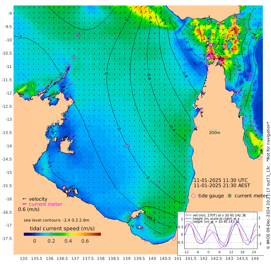19cm/s 30T +3cm/s rms + 7cm/s -42T. ARA-GOC87 57m 18cm/s -9T +3cm/s rms + 2cm/s -2T. ARA-GOC87 60m 24cm/s 34T +2cm/s rms + 3cm/s 61T. ARA-GOC87 47m 59cm Daru 67cm Bobo Island 29cm Meer Island Barge 51cm Bramble Cay 64cm Unnamed Cay 61cm Pearce Cay 60cm Stephens Island 70cm Merrie England Shoals 69cm Mutacomal Reef 54cm Darnley Island Barge 35cm East Cay 57cm Yorke Island Barge 55cm Rennel Island 57cm Aureed Island 42cm Dungeness Reef 14cm Zagai Island 15cm Yam Island -64cm Dauan Island -52cm Saibai Island -41cm Phipi Reef 5cm Warrior Reef - West -67cm Mabuiag Island Barge 63cm Half Way Island 44cm Coconut Island 58cm Dugong Islet 31cm Poll Island 35cm Kirkcaldie Reef -1cm Suarji Island 27cm Sue Islet -143cm Hawkesbury Island -22cm Alert Patches -7cm Twin Island -143cm Badu Island -15cm St Pauls (Moa Island) -101cm Kubin (Moa Island) -49cm Ince Point -71cm Thursday Island -66cm Nardana Patches -105cm Turtle Head -113cm Round Island -150cm Goods Island -177cm Booby Island -157cm White Rocks Area -151cm Carpentaria -13cm Papou Point -179cm Bampfield Head -152cm Crab Island -160cm Red Wallis Island -117cm Packe Island 64cm Harrington Reef -144cm Herald Camp 5cm Sharp Point -85cm Red Island Point -46cm Possession Island 10cm Alpha Rock 22cm Frederick Point 57cm Wyborn Reef Light 50cm Tetley Island 17cm Triangle Reef 54cm Turtle Head Island 23cm Maclennan Cay 2cm Raine Island 53cm Mcsweeny Reef 48cm Collette Reef 22cm Shadwell Reef 60cm Hannibal Island 50cm Round Point -142cm Vrilya Point 45cm Cape Grenville 35cm Hicks Island 24cm Sir Charles Hardy Island 14cm Harvey Island 34cm Kay Reef 16cm Rocky Island 5cm Chapman Island 6cm Ham Reef 12cm Jubilee Reef 17cm Night Island 7cm Unnamed Reef No. 3 18cm Morris Island 2cm 1st 3 Mile Opening 12cm Creech Reef 18cm Fife Island 21cm Eden Reef 21cm Stanley Island 37cm Normanby River -1cm Yabooma Island 0cm Hutchison River 1cm Elcho Island 7cm North West Crocodile Island 23cm Cape Wessel 22cm Stevens Island 32cm Guluwuru Island 16cm Hopeful Bay 17cm Auster Point 27cm Two Island Bay 27cm Cadell Strait 75cm Mallison Island 26cm Melville Bay (Gove Harbour) 24cm Truant Island 20cm Cape Arnhem 32cm Cape Grey 42cm Hawk Island 59cm Milner Bay (Groote Eylandt) 57cm Cape Beatrice 74cm West Island 73cm Centre Island 71cm Mornington Island 71cm West Wellesley Islands 78cm Bountiful Island 98cm Albert River Mouth 119cm Sweers Island 92cm Karumba 27cm Nassau River Offshore -22cm Christmas Creek -75cm Archer River -95cm Boyd Point -108cm Weipa (Humbug Point) -96cm Pennefather River -129cm Cullen Point
