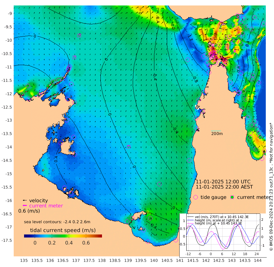 18cm/s 29T +3cm/s rms + 7cm/s -42T. ARA-GOC87 57m 20cm/s -2T +3cm/s rms + 2cm/s -2T. ARA-GOC87 60m 22cm/s 34T +2cm/s rms + 3cm/s 61T. ARA-GOC87 47m 56cm Daru 61cm Bobo Island 12cm Meer Island Barge 36cm Bramble Cay 55cm Unnamed Cay 52cm Pearce Cay 49cm Stephens Island 60cm Merrie England Shoals 66cm Mutacomal Reef 41cm Darnley Island Barge 16cm East Cay 50cm Yorke Island Barge 49cm Rennel Island 52cm Aureed Island 42cm Dungeness Reef 23cm Zagai Island 25cm Yam Island -50cm Dauan Island -38cm Saibai Island -31cm Phipi Reef 13cm Warrior Reef - West -50cm Mabuiag Island Barge 58cm Half Way Island 45cm Coconut Island 57cm Dugong Islet 38cm Poll Island 40cm Kirkcaldie Reef 12cm Suarji Island 34cm Sue Islet -131cm Hawkesbury Island -9cm Alert Patches 6cm Twin Island -129cm Badu Island 2cm St Pauls (Moa Island) -90cm Kubin (Moa Island) -34cm Ince Point -56cm Thursday Island -51cm Nardana Patches -94cm Turtle Head -103cm Round Island -141cm Goods Island -166cm Booby Island -146cm White Rocks Area -138cm Carpentaria 0cm Papou Point -169cm Bampfield Head -142cm Crab Island -148cm Red Wallis Island -108cm Packe Island 65cm Harrington Reef -136cm Herald Camp 11cm Sharp Point -75cm Red Island Point -35cm Possession Island 22cm Alpha Rock 29cm Frederick Point 57cm Wyborn Reef Light 53cm Tetley Island 6cm Triangle Reef 55cm Turtle Head Island 9cm Maclennan Cay -16cm Raine Island 45cm Mcsweeny Reef 38cm Collette Reef 7cm Shadwell Reef 47cm Hannibal Island 35cm Round Point -130cm Vrilya Point 30cm Cape Grenville 19cm Hicks Island 6cm Sir Charles Hardy Island 9cm Harvey Island 15cm Kay Reef -2cm Rocky Island -14cm Chapman Island -12cm Ham Reef -5cm Jubilee Reef 2cm Night Island -11cm Unnamed Reef No. 3 -1cm Morris Island -15cm 1st 3 Mile Opening -6cm Creech Reef 0cm Fife Island -3cm Eden Reef 2cm Stanley Island 16cm Normanby River -16cm Yabooma Island -20cm Hutchison River -16cm Elcho Island -8cm North West Crocodile Island 13cm Cape Wessel 9cm Stevens Island 17cm Guluwuru Island 1cm Hopeful Bay 6cm Auster Point 16cm Two Island Bay 9cm Cadell Strait 53cm Mallison Island 14cm Melville Bay (Gove Harbour) 12cm Truant Island 12cm Cape Arnhem 26cm Cape Grey 37cm Hawk Island 60cm Milner Bay (Groote Eylandt) 56cm Cape Beatrice 79cm West Island 78cm Centre Island 63cm Mornington Island 65cm West Wellesley Islands 65cm Bountiful Island 83cm Albert River Mouth 107cm Sweers Island 78cm Karumba 17cm Nassau River Offshore -31cm Christmas Creek -80cm Archer River -95cm Boyd Point -111cm Weipa (Humbug Point) -90cm Pennefather River -122cm Cullen Point