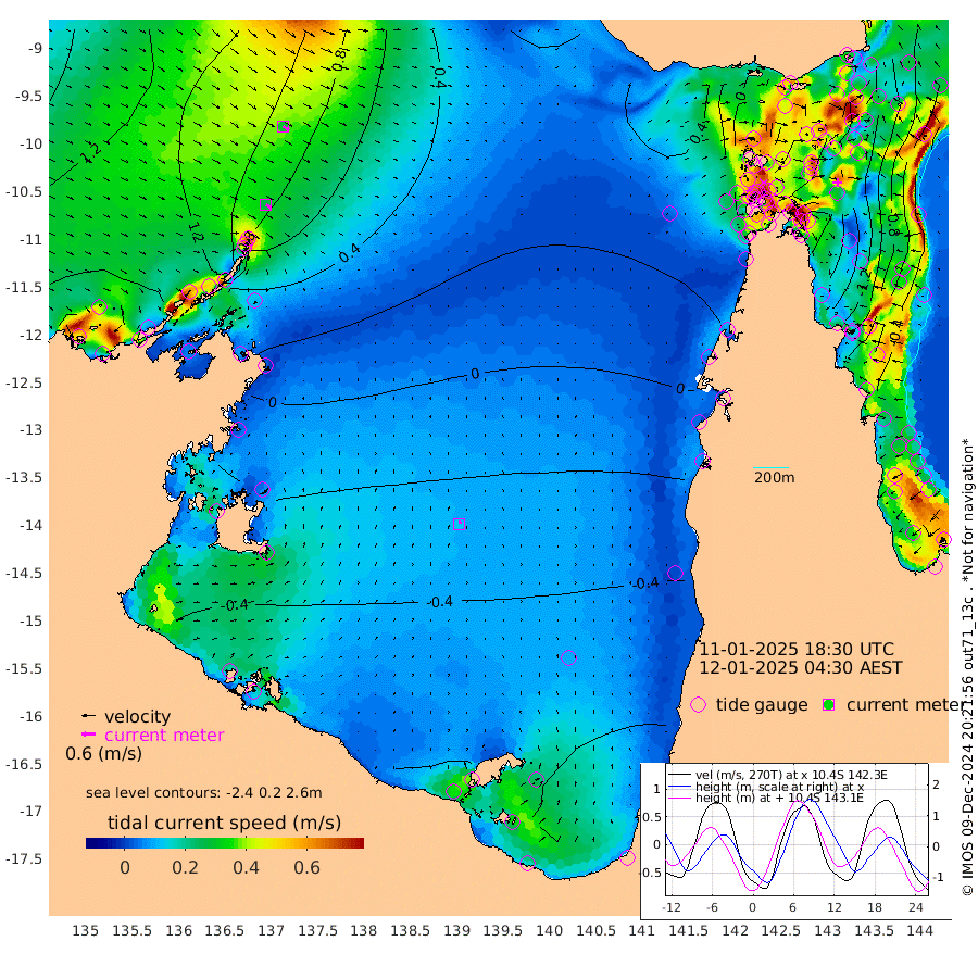 27cm/s 125T +3cm/s rms + 7cm/s -42T. ARA-GOC87 57m 12cm/s 22T +3cm/s rms + 2cm/s -2T. ARA-GOC87 60m 30cm/s 122T +2cm/s rms + 3cm/s 61T. ARA-GOC87 47m -144cm Daru -135cm Bobo Island -60cm Meer Island Barge -91cm Bramble Cay -130cm Unnamed Cay -124cm Pearce Cay -117cm Stephens Island -127cm Merrie England Shoals -150cm Mutacomal Reef -105cm Darnley Island Barge -69cm East Cay -124cm Yorke Island Barge -133cm Rennel Island -132cm Aureed Island -141cm Dungeness Reef -127cm Zagai Island -134cm Yam Island -91cm Dauan Island -84cm Saibai Island -116cm Phipi Reef -137cm Warrior Reef - West -58cm Mabuiag Island Barge -133cm Half Way Island -136cm Coconut Island -146cm Dugong Islet -136cm Poll Island -142cm Kirkcaldie Reef -140cm Suarji Island -130cm Sue Islet 17cm Hawkesbury Island -113cm Alert Patches -118cm Twin Island 8cm Badu Island -119cm St Pauls (Moa Island) -26cm Kubin (Moa Island) -82cm Ince Point -60cm Thursday Island -66cm Nardana Patches -35cm Turtle Head -14cm Round Island 18cm Goods Island 52cm Booby Island 33cm White Rocks Area 60cm Carpentaria -96cm Papou Point 42cm Bampfield Head 51cm Crab Island 38cm Red Wallis Island -15cm Packe Island -155cm Harrington Reef 2cm Herald Camp -43cm Sharp Point -26cm Red Island Point -74cm Possession Island -116cm Alpha Rock -131cm Frederick Point -139cm Wyborn Reef Light -138cm Tetley Island -61cm Triangle Reef -130cm Turtle Head Island -66cm Maclennan Cay -29cm Raine Island -117cm Mcsweeny Reef -105cm Collette Reef -62cm Shadwell Reef -113cm Hannibal Island -91cm Round Point 59cm Vrilya Point -86cm Cape Grenville -75cm Hicks Island -76cm Sir Charles Hardy Island -28cm Harvey Island -64cm Kay Reef -47cm Rocky Island -34cm Chapman Island -32cm Ham Reef -40cm Jubilee Reef -47cm Night Island -34cm Unnamed Reef No. 3 -47cm Morris Island -38cm 1st 3 Mile Opening -44cm Creech Reef -46cm Fife Island -42cm Eden Reef -49cm Stanley Island -57cm Normanby River 136cm Yabooma Island 147cm Hutchison River 141cm Elcho Island 132cm North West Crocodile Island 87cm Cape Wessel 121cm Stevens Island 54cm Guluwuru Island 114cm Hopeful Bay 99cm Auster Point 102cm Two Island Bay 122cm Cadell Strait 28cm Mallison Island 54cm Melville Bay (Gove Harbour) 61cm Truant Island 31cm Cape Arnhem 8cm Cape Grey -8cm Hawk Island -20cm Milner Bay (Groote Eylandt) -34cm Cape Beatrice -67cm West Island -66cm Centre Island -105cm Mornington Island -110cm West Wellesley Islands -119cm Bountiful Island -105cm Albert River Mouth -99cm Sweers Island -110cm Karumba -93cm Nassau River Offshore -70cm Christmas Creek -8cm Archer River 6cm Boyd Point 10cm Weipa (Humbug Point) 33cm Pennefather River 39cm Cullen Point