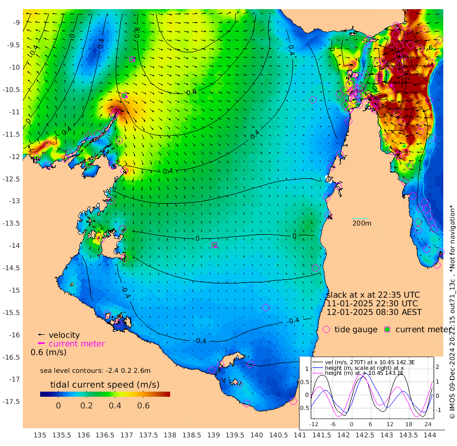 35cm/s 117T +3cm/s rms + 7cm/s -42T. ARA-GOC87 57m 24cm/s 161T +3cm/s rms + 2cm/s -2T. ARA-GOC87 60m 27cm/s 115T +2cm/s rms + 3cm/s 61T. ARA-GOC87 47m 119cm Daru 135cm Bobo Island 135cm Meer Island Barge 150cm Bramble Cay 144cm Unnamed Cay 152cm Pearce Cay 152cm Stephens Island 153cm Merrie England Shoals 126cm Mutacomal Reef 147cm Darnley Island Barge 144cm East Cay 132cm Yorke Island Barge 133cm Rennel Island 130cm Aureed Island 106cm Dungeness Reef 46cm Zagai Island 44cm Yam Island -19cm Dauan Island -18cm Saibai Island -4cm Phipi Reef 39cm Warrior Reef - West -8cm Mabuiag Island Barge 134cm Half Way Island 113cm Coconut Island 124cm Dugong Islet 80cm Poll Island 89cm Kirkcaldie Reef 45cm Suarji Island 71cm Sue Islet 40cm Hawkesbury Island 55cm Alert Patches 58cm Twin Island 26cm Badu Island 36cm St Pauls (Moa Island) 37cm Kubin (Moa Island) 37cm Ince Point 34cm Thursday Island 33cm Nardana Patches 40cm Turtle Head 28cm Round Island 48cm Goods Island 43cm Booby Island 44cm White Rocks Area 43cm Carpentaria 41cm Papou Point 54cm Bampfield Head 30cm Crab Island 40cm Red Wallis Island 45cm Packe Island 130cm Harrington Reef 26cm Herald Camp -5cm Sharp Point 35cm Red Island Point 43cm Possession Island 54cm Alpha Rock 86cm Frederick Point 121cm Wyborn Reef Light 109cm Tetley Island 114cm Triangle Reef 145cm Turtle Head Island 128cm Maclennan Cay 120cm Raine Island 138cm Mcsweeny Reef 136cm Collette Reef 123cm Shadwell Reef 154cm Hannibal Island 156cm Round Point 33cm Vrilya Point 144cm Cape Grenville 139cm Hicks Island 142cm Sir Charles Hardy Island 43cm Harvey Island 146cm Kay Reef 129cm Rocky Island 128cm Chapman Island 123cm Ham Reef 128cm Jubilee Reef 118cm Night Island 128cm Unnamed Reef No. 3 138cm Morris Island 129cm 1st 3 Mile Opening 133cm Creech Reef 130cm Fife Island 161cm Eden Reef 141cm Stanley Island 154cm Normanby River 44cm Yabooma Island 78cm Hutchison River 50cm Elcho Island 35cm North West Crocodile Island 68cm Cape Wessel 57cm Stevens Island 102cm Guluwuru Island 48cm Hopeful Bay 62cm Auster Point 60cm Two Island Bay 91cm Cadell Strait 161cm Mallison Island 74cm Melville Bay (Gove Harbour) 84cm Truant Island 52cm Cape Arnhem 15cm Cape Grey -7cm Hawk Island -57cm Milner Bay (Groote Eylandt) -58cm Cape Beatrice -101cm West Island -100cm Centre Island -94cm Mornington Island -92cm West Wellesley Islands -124cm Bountiful Island -162cm Albert River Mouth -177cm Sweers Island -160cm Karumba -56cm Nassau River Offshore -11cm Christmas Creek 23cm Archer River 32cm Boyd Point 28cm Weipa (Humbug Point) 33cm Pennefather River 21cm Cullen Point