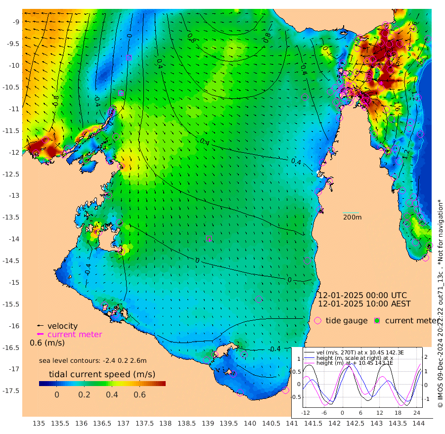 17cm/s 127T +3cm/s rms + 7cm/s -42T. ARA-GOC87 57m 31cm/s 163T +3cm/s rms + 2cm/s -2T. ARA-GOC87 60m 8cm/s 152T +2cm/s rms + 3cm/s 61T. ARA-GOC87 47m 181cm Daru 184cm Bobo Island 129cm Meer Island Barge 158cm Bramble Cay 184cm Unnamed Cay 190cm Pearce Cay 181cm Stephens Island 187cm Merrie England Shoals 188cm Mutacomal Reef 169cm Darnley Island Barge 139cm East Cay 175cm Yorke Island Barge 184cm Rennel Island 180cm Aureed Island 176cm Dungeness Reef 134cm Zagai Island 136cm Yam Island 77cm Dauan Island 70cm Saibai Island 93cm Phipi Reef 134cm Warrior Reef - West 73cm Mabuiag Island Barge 185cm Half Way Island 180cm Coconut Island 189cm Dugong Islet 162cm Poll Island 170cm Kirkcaldie Reef 148cm Suarji Island 152cm Sue Islet 81cm Hawkesbury Island 148cm Alert Patches 150cm Twin Island 75cm Badu Island 138cm St Pauls (Moa Island) 94cm Kubin (Moa Island) 121cm Ince Point 111cm Thursday Island 111cm Nardana Patches 102cm Turtle Head 79cm Round Island 84cm Goods Island 68cm Booby Island 76cm White Rocks Area 62cm Carpentaria 123cm Papou Point 83cm Bampfield Head 49cm Crab Island 71cm Red Wallis Island 95cm Packe Island 203cm Harrington Reef 70cm Herald Camp 31cm Sharp Point 86cm Red Island Point 115cm Possession Island 138cm Alpha Rock 169cm Frederick Point 186cm Wyborn Reef Light 180cm Tetley Island 121cm Triangle Reef 204cm Turtle Head Island 130cm Maclennan Cay 101cm Raine Island 175cm Mcsweeny Reef 163cm Collette Reef 124cm Shadwell Reef 178cm Hannibal Island 164cm Round Point 49cm Vrilya Point 151cm Cape Grenville 140cm Hicks Island 144cm Sir Charles Hardy Island 46cm Harvey Island 137cm Kay Reef 114cm Rocky Island 107cm Chapman Island 103cm Ham Reef 113cm Jubilee Reef 109cm Night Island 109cm Unnamed Reef No. 3 121cm Morris Island 114cm 1st 3 Mile Opening 119cm Creech Reef 116cm Fife Island 131cm Eden Reef 125cm Stanley Island 134cm Normanby River -67cm Yabooma Island -52cm Hutchison River -68cm Elcho Island -75cm North West Crocodile Island -10cm Cape Wessel -47cm Stevens Island 32cm Guluwuru Island -53cm Hopeful Bay -23cm Auster Point -29cm Two Island Bay -23cm Cadell Strait 85cm Mallison Island 11cm Melville Bay (Gove Harbour) 18cm Truant Island 13cm Cape Arnhem -6cm Cape Grey -20cm Hawk Island -56cm Milner Bay (Groote Eylandt) -50cm Cape Beatrice -67cm West Island -67cm Centre Island -60cm Mornington Island -52cm West Wellesley Islands -91cm Bountiful Island -144cm Albert River Mouth -162cm Sweers Island -136cm Karumba -23cm Nassau River Offshore 20cm Christmas Creek 35cm Archer River 48cm Boyd Point 39cm Weipa (Humbug Point) 44cm Pennefather River 39cm Cullen Point