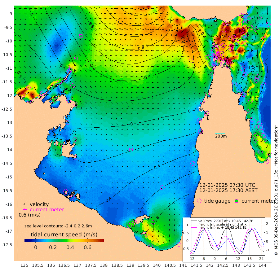 30cm/s -76T +3cm/s rms + 7cm/s -42T. ARA-GOC87 57m 16cm/s -96T +3cm/s rms + 2cm/s -2T. ARA-GOC87 60m 25cm/s -78T +2cm/s rms + 3cm/s 61T. ARA-GOC87 47m -88cm Daru -90cm Bobo Island -30cm Meer Island Barge -51cm Bramble Cay -78cm Unnamed Cay -88cm Pearce Cay -73cm Stephens Island -80cm Merrie England Shoals -93cm Mutacomal Reef -65cm Darnley Island Barge -29cm East Cay -80cm Yorke Island Barge -83cm Rennel Island -84cm Aureed Island -84cm Dungeness Reef -76cm Zagai Island -73cm Yam Island -23cm Dauan Island -28cm Saibai Island -18cm Phipi Reef -62cm Warrior Reef - West -45cm Mabuiag Island Barge -92cm Half Way Island -94cm Coconut Island -97cm Dugong Islet -92cm Poll Island -90cm Kirkcaldie Reef -82cm Suarji Island -89cm Sue Islet -25cm Hawkesbury Island -86cm Alert Patches -92cm Twin Island -21cm Badu Island -90cm St Pauls (Moa Island) -38cm Kubin (Moa Island) -69cm Ince Point -61cm Thursday Island -61cm Nardana Patches -34cm Turtle Head -22cm Round Island -13cm Goods Island -10cm Booby Island -17cm White Rocks Area -35cm Carpentaria -80cm Papou Point -16cm Bampfield Head -5cm Crab Island -15cm Red Wallis Island -25cm Packe Island -113cm Harrington Reef 4cm Herald Camp -25cm Sharp Point -31cm Red Island Point -62cm Possession Island -89cm Alpha Rock -99cm Frederick Point -103cm Wyborn Reef Light -105cm Tetley Island -34cm Triangle Reef -123cm Turtle Head Island -30cm Maclennan Cay -5cm Raine Island -76cm Mcsweeny Reef -62cm Collette Reef -28cm Shadwell Reef -67cm Hannibal Island -54cm Round Point -21cm Vrilya Point -44cm Cape Grenville -34cm Hicks Island -23cm Sir Charles Hardy Island -14cm Harvey Island -28cm Kay Reef -11cm Rocky Island -4cm Chapman Island -6cm Ham Reef -14cm Jubilee Reef -16cm Night Island -8cm Unnamed Reef No. 3 -14cm Morris Island -12cm 1st 3 Mile Opening -14cm Creech Reef -16cm Fife Island -9cm Eden Reef -16cm Stanley Island -21cm Normanby River 23cm Yabooma Island 22cm Hutchison River 26cm Elcho Island 29cm North West Crocodile Island -30cm Cape Wessel -6cm Stevens Island -36cm Guluwuru Island 13cm Hopeful Bay -21cm Auster Point -22cm Two Island Bay -14cm Cadell Strait -67cm Mallison Island -23cm Melville Bay (Gove Harbour) -36cm Truant Island -21cm Cape Arnhem -7cm Cape Grey 8cm Hawk Island 18cm Milner Bay (Groote Eylandt) 29cm Cape Beatrice 34cm West Island 36cm Centre Island 99cm Mornington Island 91cm West Wellesley Islands 146cm Bountiful Island 176cm Albert River Mouth 164cm Sweers Island 176cm Karumba 99cm Nassau River Offshore 77cm Christmas Creek 44cm Archer River 19cm Boyd Point 43cm Weipa (Humbug Point) -11cm Pennefather River 4cm Cullen Point
