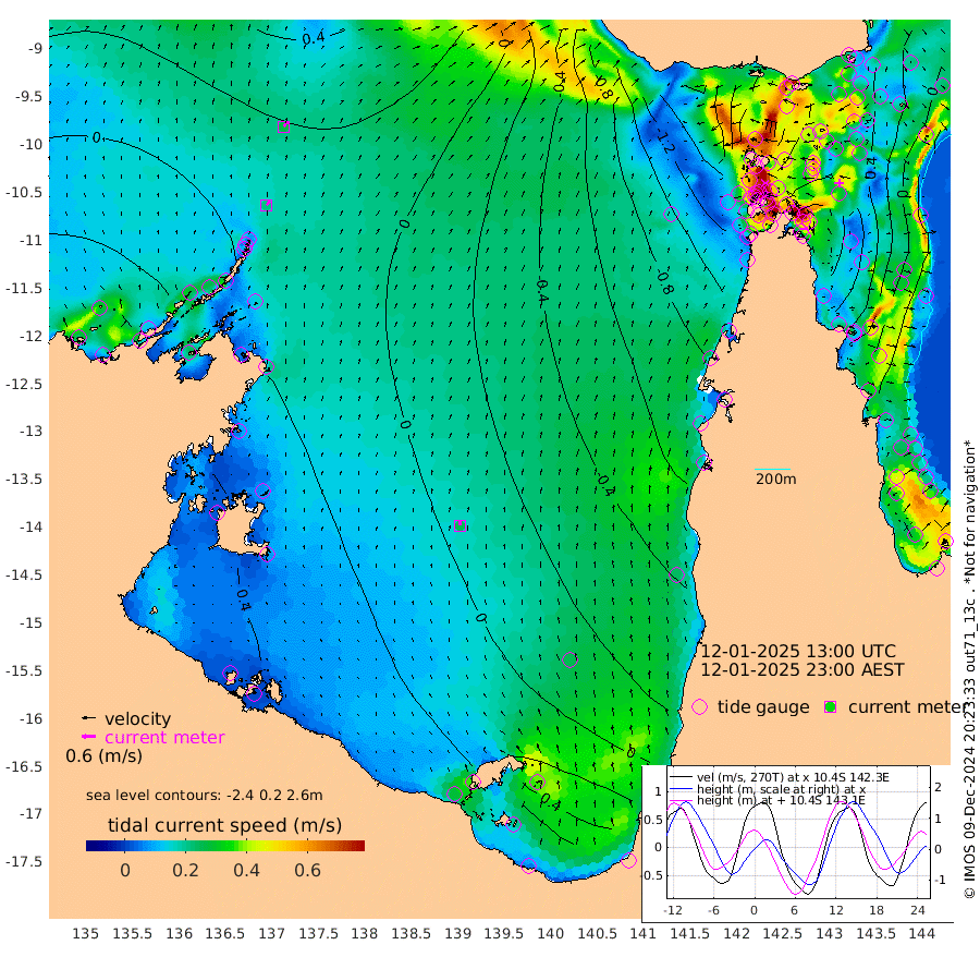 21cm/s 37T +3cm/s rms + 7cm/s -42T. ARA-GOC87 57m 25cm/s -1T +3cm/s rms + 2cm/s -2T. ARA-GOC87 60m 27cm/s 40T +2cm/s rms + 3cm/s 61T. ARA-GOC87 47m 49cm Daru 54cm Bobo Island -2cm Meer Island Barge 21cm Bramble Cay 42cm Unnamed Cay 44cm Pearce Cay 37cm Stephens Island 45cm Merrie England Shoals 56cm Mutacomal Reef 29cm Darnley Island Barge 0cm East Cay 41cm Yorke Island Barge 40cm Rennel Island 47cm Aureed Island 37cm Dungeness Reef 28cm Zagai Island 23cm Yam Island -42cm Dauan Island -33cm Saibai Island -27cm Phipi Reef 16cm Warrior Reef - West -47cm Mabuiag Island Barge 48cm Half Way Island 41cm Coconut Island 49cm Dugong Islet 37cm Poll Island 33cm Kirkcaldie Reef 18cm Suarji Island 32cm Sue Islet -150cm Hawkesbury Island -9cm Alert Patches 6cm Twin Island -139cm Badu Island 5cm St Pauls (Moa Island) -100cm Kubin (Moa Island) -36cm Ince Point -60cm Thursday Island -54cm Nardana Patches -102cm Turtle Head -114cm Round Island -156cm Goods Island -184cm Booby Island -161cm White Rocks Area -153cm Carpentaria -1cm Papou Point -185cm Bampfield Head -158cm Crab Island -165cm Red Wallis Island -122cm Packe Island 59cm Harrington Reef -157cm Herald Camp 13cm Sharp Point -88cm Red Island Point -38cm Possession Island 21cm Alpha Rock 27cm Frederick Point 52cm Wyborn Reef Light 49cm Tetley Island -5cm Triangle Reef 48cm Turtle Head Island -6cm Maclennan Cay -30cm Raine Island 36cm Mcsweeny Reef 26cm Collette Reef -6cm Shadwell Reef 34cm Hannibal Island 19cm Round Point -147cm Vrilya Point 13cm Cape Grenville 3cm Hicks Island -12cm Sir Charles Hardy Island 5cm Harvey Island -4cm Kay Reef -18cm Rocky Island -29cm Chapman Island -29cm Ham Reef -21cm Jubilee Reef -12cm Night Island -28cm Unnamed Reef No. 3 -18cm Morris Island -30cm 1st 3 Mile Opening -22cm Creech Reef -12cm Fife Island -23cm Eden Reef -17cm Stanley Island -4cm Normanby River -11cm Yabooma Island -14cm Hutchison River -9cm Elcho Island -4cm North West Crocodile Island 22cm Cape Wessel 18cm Stevens Island 25cm Guluwuru Island 7cm Hopeful Bay 16cm Auster Point 23cm Two Island Bay 18cm Cadell Strait 58cm Mallison Island 25cm Melville Bay (Gove Harbour) 25cm Truant Island 23cm Cape Arnhem 36cm Cape Grey 47cm Hawk Island 73cm Milner Bay (Groote Eylandt) 66cm Cape Beatrice 89cm West Island 87cm Centre Island 68cm Mornington Island 72cm West Wellesley Islands 70cm Bountiful Island 96cm Albert River Mouth 127cm Sweers Island 85cm Karumba 12cm Nassau River Offshore -44cm Christmas Creek -95cm Archer River -108cm Boyd Point -126cm Weipa (Humbug Point) -102cm Pennefather River -138cm Cullen Point