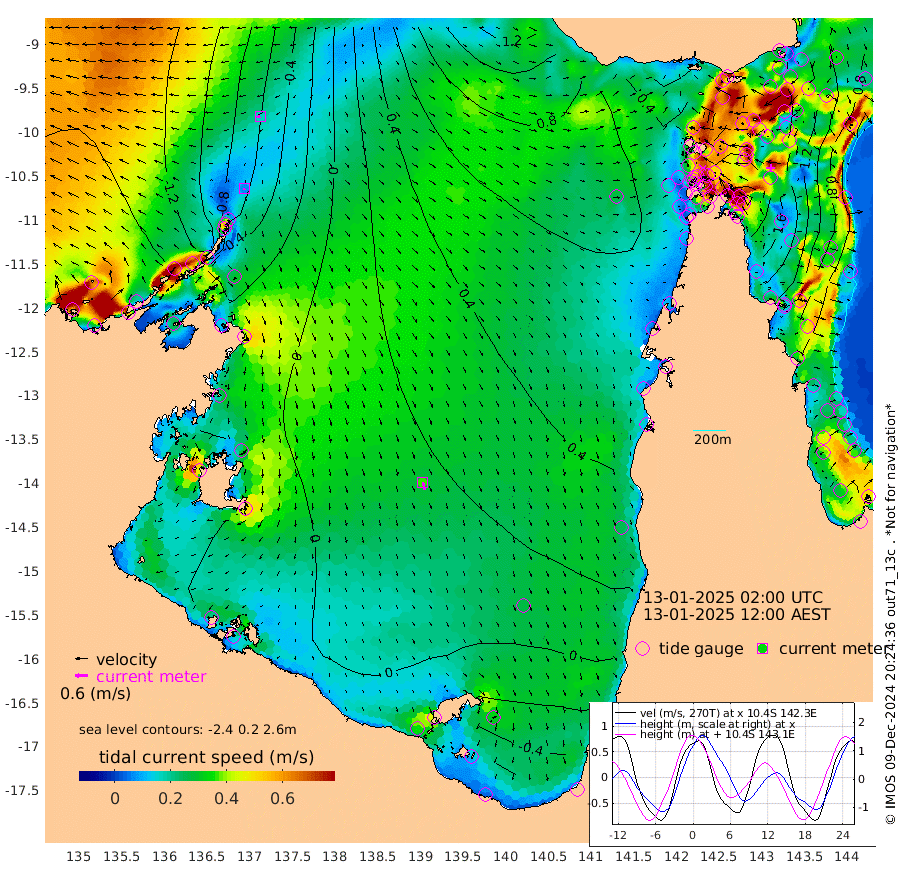 7cm/s -148T +3cm/s rms + 7cm/s -42T. ARA-GOC87 57m 36cm/s 165T +3cm/s rms + 2cm/s -2T. ARA-GOC87 60m 17cm/s -107T +2cm/s rms + 3cm/s 61T. ARA-GOC87 47m 181cm Daru 170cm Bobo Island 85cm Meer Island Barge 113cm Bramble Cay 156cm Unnamed Cay 165cm Pearce Cay 147cm Stephens Island 150cm Merrie England Shoals 179cm Mutacomal Reef 135cm Darnley Island Barge 92cm East Cay 158cm Yorke Island Barge 171cm Rennel Island 168cm Aureed Island 186cm Dungeness Reef 180cm Zagai Island 185cm Yam Island 168cm Dauan Island 154cm Saibai Island 171cm Phipi Reef 193cm Warrior Reef - West 144cm Mabuiag Island Barge 169cm Half Way Island 184cm Coconut Island 188cm Dugong Islet 189cm Poll Island 193cm Kirkcaldie Reef 201cm Suarji Island 183cm Sue Islet 127cm Hawkesbury Island 195cm Alert Patches 195cm Twin Island 128cm Badu Island 199cm St Pauls (Moa Island) 143cm Kubin (Moa Island) 174cm Ince Point 163cm Thursday Island 166cm Nardana Patches 151cm Turtle Head 123cm Round Island 120cm Goods Island 102cm Booby Island 108cm White Rocks Area 84cm Carpentaria 169cm Papou Point 112cm Bampfield Head 81cm Crab Island 108cm Red Wallis Island 137cm Packe Island 202cm Harrington Reef 119cm Herald Camp 56cm Sharp Point 128cm Red Island Point 157cm Possession Island 176cm Alpha Rock 196cm Frederick Point 183cm Wyborn Reef Light 186cm Tetley Island 94cm Triangle Reef 193cm Turtle Head Island 94cm Maclennan Cay 56cm Raine Island 151cm Mcsweeny Reef 133cm Collette Reef 88cm Shadwell Reef 138cm Hannibal Island 117cm Round Point 74cm Vrilya Point 107cm Cape Grenville 99cm Hicks Island 104cm Sir Charles Hardy Island 34cm Harvey Island 83cm Kay Reef 68cm Rocky Island 59cm Chapman Island 58cm Ham Reef 67cm Jubilee Reef 68cm Night Island 62cm Unnamed Reef No. 3 70cm Morris Island 68cm 1st 3 Mile Opening 71cm Creech Reef 72cm Fife Island 64cm Eden Reef 70cm Stanley Island 73cm Normanby River -142cm Yabooma Island -147cm Hutchison River -152cm Elcho Island -149cm North West Crocodile Island -72cm Cape Wessel -125cm Stevens Island -32cm Guluwuru Island -128cm Hopeful Bay -89cm Auster Point -95cm Two Island Bay -105cm Cadell Strait 6cm Mallison Island -43cm Melville Bay (Gove Harbour) -39cm Truant Island -22cm Cape Arnhem -28cm Cape Grey -35cm Hawk Island -60cm Milner Bay (Groote Eylandt) -48cm Cape Beatrice -45cm West Island -48cm Centre Island -34cm Mornington Island -25cm West Wellesley Islands -61cm Bountiful Island -121cm Albert River Mouth -144cm Sweers Island -105cm Karumba 7cm Nassau River Offshore 49cm Christmas Creek 51cm Archer River 68cm Boyd Point 59cm Weipa (Humbug Point) 58cm Pennefather River 68cm Cullen Point