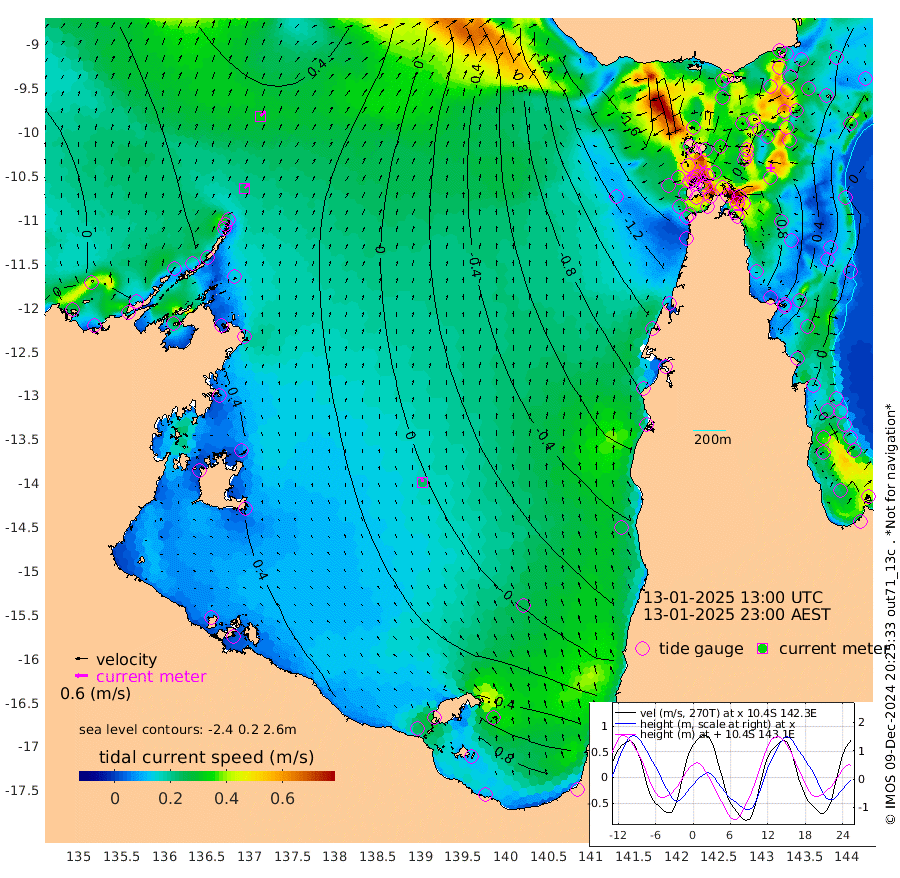24cm/s 45T +3cm/s rms + 7cm/s -42T. ARA-GOC87 57m 24cm/s -12T +3cm/s rms + 2cm/s -2T. ARA-GOC87 60m 32cm/s 45T +2cm/s rms + 3cm/s 61T. ARA-GOC87 47m 54cm Daru 64cm Bobo Island 19cm Meer Island Barge 41cm Bramble Cay 53cm Unnamed Cay 59cm Pearce Cay 51cm Stephens Island 57cm Merrie England Shoals 59cm Mutacomal Reef 45cm Darnley Island Barge 22cm East Cay 50cm Yorke Island Barge 48cm Rennel Island 57cm Aureed Island 39cm Dungeness Reef 19cm Zagai Island 9cm Yam Island -56cm Dauan Island -49cm Saibai Island -35cm Phipi Reef 9cm Warrior Reef - West -73cm Mabuiag Island Barge 53cm Half Way Island 42cm Coconut Island 49cm Dugong Islet 29cm Poll Island 23cm Kirkcaldie Reef 6cm Suarji Island 21cm Sue Islet -181cm Hawkesbury Island -28cm Alert Patches -12cm Twin Island -162cm Badu Island -17cm St Pauls (Moa Island) -124cm Kubin (Moa Island) -59cm Ince Point -85cm Thursday Island -79cm Nardana Patches -122cm Turtle Head -140cm Round Island -177cm Goods Island -212cm Booby Island -186cm White Rocks Area -189cm Carpentaria -21cm Papou Point -214cm Bampfield Head -184cm Crab Island -193cm Red Wallis Island -144cm Packe Island 58cm Harrington Reef -187cm Herald Camp 4cm Sharp Point -111cm Red Island Point -59cm Possession Island 3cm Alpha Rock 16cm Frederick Point 52cm Wyborn Reef Light 45cm Tetley Island 11cm Triangle Reef 45cm Turtle Head Island 11cm Maclennan Cay -8cm Raine Island 47cm Mcsweeny Reef 40cm Collette Reef 12cm Shadwell Reef 50cm Hannibal Island 40cm Round Point -178cm Vrilya Point 30cm Cape Grenville 23cm Hicks Island 8cm Sir Charles Hardy Island 10cm Harvey Island 17cm Kay Reef 4cm Rocky Island -4cm Chapman Island -7cm Ham Reef 0cm Jubilee Reef 8cm Night Island -5cm Unnamed Reef No. 3 6cm Morris Island -9cm 1st 3 Mile Opening 0cm Creech Reef 14cm Fife Island 7cm Eden Reef 6cm Stanley Island 22cm Normanby River 23cm Yabooma Island 32cm Hutchison River 29cm Elcho Island 30cm North West Crocodile Island 47cm Cape Wessel 52cm Stevens Island 58cm Guluwuru Island 41cm Hopeful Bay 43cm Auster Point 46cm Two Island Bay 59cm Cadell Strait 101cm Mallison Island 55cm Melville Bay (Gove Harbour) 54cm Truant Island 44cm Cape Arnhem 53cm Cape Grey 63cm Hawk Island 82cm Milner Bay (Groote Eylandt) 75cm Cape Beatrice 88cm West Island 86cm Centre Island 92cm Mornington Island 95cm West Wellesley Islands 105cm Bountiful Island 141cm Albert River Mouth 172cm Sweers Island 125cm Karumba 34cm Nassau River Offshore -30cm Christmas Creek -92cm Archer River -115cm Boyd Point -128cm Weipa (Humbug Point) -119cm Pennefather River -161cm Cullen Point