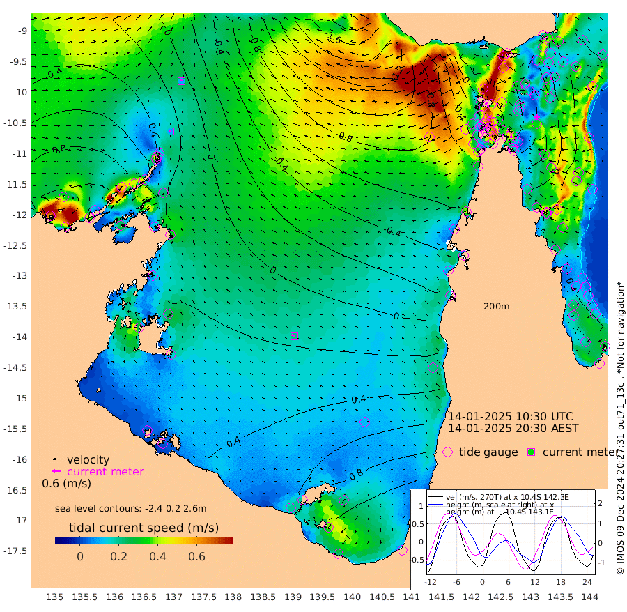 9cm/s -44T +3cm/s rms + 7cm/s -42T. ARA-GOC87 57m 20cm/s -67T +3cm/s rms + 2cm/s -2T. ARA-GOC87 60m 9cm/s 5T +2cm/s rms + 3cm/s 61T. ARA-GOC87 47m -35cm Daru -26cm Bobo Island 15cm Meer Island Barge 16cm Bramble Cay -11cm Unnamed Cay -14cm Pearce Cay -7cm Stephens Island -2cm Merrie England Shoals -27cm Mutacomal Reef -6cm Darnley Island Barge 21cm East Cay -25cm Yorke Island Barge -26cm Rennel Island -26cm Aureed Island -42cm Dungeness Reef -73cm Zagai Island -73cm Yam Island -84cm Dauan Island -86cm Saibai Island -52cm Phipi Reef -68cm Warrior Reef - West -97cm Mabuiag Island Barge -30cm Half Way Island -47cm Coconut Island -44cm Dugong Islet -64cm Poll Island -61cm Kirkcaldie Reef -82cm Suarji Island -72cm Sue Islet -99cm Hawkesbury Island -92cm Alert Patches -91cm Twin Island -90cm Badu Island -103cm St Pauls (Moa Island) -94cm Kubin (Moa Island) -96cm Ince Point -99cm Thursday Island -98cm Nardana Patches -86cm Turtle Head -89cm Round Island -82cm Goods Island -97cm Booby Island -86cm White Rocks Area -123cm Carpentaria -90cm Papou Point -116cm Bampfield Head -80cm Crab Island -93cm Red Wallis Island -82cm Packe Island -53cm Harrington Reef -94cm Herald Camp -30cm Sharp Point -73cm Red Island Point -89cm Possession Island -83cm Alpha Rock -75cm Frederick Point -47cm Wyborn Reef Light -57cm Tetley Island 1cm Triangle Reef -61cm Turtle Head Island 8cm Maclennan Cay 25cm Raine Island -17cm Mcsweeny Reef -5cm Collette Reef 12cm Shadwell Reef 2cm Hannibal Island 15cm Round Point -90cm Vrilya Point 13cm Cape Grenville 14cm Hicks Island 13cm Sir Charles Hardy Island 2cm Harvey Island 26cm Kay Reef 27cm Rocky Island 33cm Chapman Island 24cm Ham Reef 22cm Jubilee Reef 20cm Night Island 26cm Unnamed Reef No. 3 28cm Morris Island 19cm 1st 3 Mile Opening 22cm Creech Reef 23cm Fife Island 44cm Eden Reef 29cm Stanley Island 36cm Normanby River 88cm Yabooma Island 105cm Hutchison River 96cm Elcho Island 97cm North West Crocodile Island 24cm Cape Wessel 73cm Stevens Island 21cm Guluwuru Island 79cm Hopeful Bay 39cm Auster Point 35cm Two Island Bay 71cm Cadell Strait 9cm Mallison Island 28cm Melville Bay (Gove Harbour) 16cm Truant Island 12cm Cape Arnhem 23cm Cape Grey 39cm Hawk Island 47cm Milner Bay (Groote Eylandt) 55cm Cape Beatrice 51cm West Island 54cm Centre Island 122cm Mornington Island 117cm West Wellesley Islands 171cm Bountiful Island 224cm Albert River Mouth 223cm Sweers Island 214cm Karumba 107cm Nassau River Offshore 60cm Christmas Creek 12cm Archer River -33cm Boyd Point -12cm Weipa (Humbug Point) -49cm Pennefather River -71cm Cullen Point