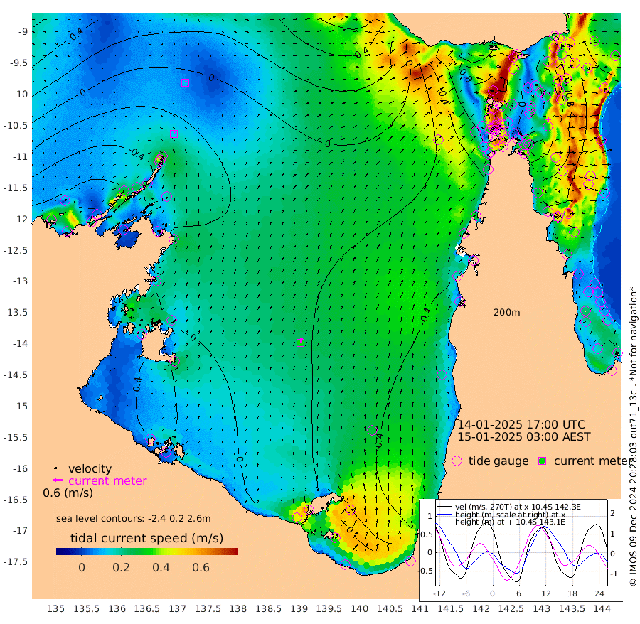 12cm/s 10T +3cm/s rms + 7cm/s -42T. ARA-GOC87 57m 34cm/s 15T +3cm/s rms + 2cm/s -2T. ARA-GOC87 60m 11cm/s 35T +2cm/s rms + 3cm/s 61T. ARA-GOC87 47m -78cm Daru -83cm Bobo Island -99cm Meer Island Barge -111cm Bramble Cay -98cm Unnamed Cay -102cm Pearce Cay -100cm Stephens Island -104cm Merrie England Shoals -87cm Mutacomal Reef -95cm Darnley Island Barge -113cm East Cay -82cm Yorke Island Barge -90cm Rennel Island -81cm Aureed Island -77cm Dungeness Reef -34cm Zagai Island -44cm Yam Island -39cm Dauan Island -27cm Saibai Island -61cm Phipi Reef -50cm Warrior Reef - West -25cm Mabuiag Island Barge -82cm Half Way Island -71cm Coconut Island -77cm Dugong Islet -54cm Poll Island -63cm Kirkcaldie Reef -38cm Suarji Island -43cm Sue Islet -101cm Hawkesbury Island -48cm Alert Patches -45cm Twin Island -85cm Badu Island -29cm St Pauls (Moa Island) -75cm Kubin (Moa Island) -46cm Ince Point -51cm Thursday Island -49cm Nardana Patches -80cm Turtle Head -74cm Round Island -102cm Goods Island -92cm Booby Island -94cm White Rocks Area -33cm Carpentaria -33cm Papou Point -86cm Bampfield Head -75cm Crab Island -90cm Red Wallis Island -95cm Packe Island -71cm Harrington Reef -96cm Herald Camp 5cm Sharp Point -76cm Red Island Point -47cm Possession Island -34cm Alpha Rock -55cm Frederick Point -72cm Wyborn Reef Light -64cm Tetley Island -90cm Triangle Reef -74cm Turtle Head Island -99cm Maclennan Cay -103cm Raine Island -89cm Mcsweeny Reef -95cm Collette Reef -97cm Shadwell Reef -105cm Hannibal Island -117cm Round Point -54cm Vrilya Point -107cm Cape Grenville -107cm Hicks Island -119cm Sir Charles Hardy Island -31cm Harvey Island -115cm Kay Reef -109cm Rocky Island -116cm Chapman Island -105cm Ham Reef -104cm Jubilee Reef -94cm Night Island -109cm Unnamed Reef No. 3 -112cm Morris Island -102cm 1st 3 Mile Opening -107cm Creech Reef -104cm Fife Island -133cm Eden Reef -114cm Stanley Island -123cm Normanby River -69cm Yabooma Island -90cm Hutchison River -63cm Elcho Island -60cm North West Crocodile Island -20cm Cape Wessel -44cm Stevens Island -35cm Guluwuru Island -50cm Hopeful Bay -28cm Auster Point -23cm Two Island Bay -66cm Cadell Strait -45cm Mallison Island -26cm Melville Bay (Gove Harbour) -23cm Truant Island -9cm Cape Arnhem 11cm Cape Grey 13cm Hawk Island 60cm Milner Bay (Groote Eylandt) 44cm Cape Beatrice 81cm West Island 80cm Centre Island 2cm Mornington Island 4cm West Wellesley Islands -18cm Bountiful Island -1cm Albert River Mouth 35cm Sweers Island -12cm Karumba -59cm Nassau River Offshore -89cm Christmas Creek -92cm Archer River -74cm Boyd Point -97cm Weipa (Humbug Point) -50cm Pennefather River -62cm Cullen Point