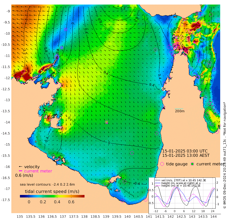 9cm/s 133T +3cm/s rms + 7cm/s -42T. ARA-GOC87 57m 39cm/s 165T +3cm/s rms + 2cm/s -2T. ARA-GOC87 60m 6cm/s -112T +2cm/s rms + 3cm/s 61T. ARA-GOC87 47m 171cm Daru 166cm Bobo Island 87cm Meer Island Barge 112cm Bramble Cay 146cm Unnamed Cay 161cm Pearce Cay 143cm Stephens Island 138cm Merrie England Shoals 165cm Mutacomal Reef 133cm Darnley Island Barge 97cm East Cay 152cm Yorke Island Barge 160cm Rennel Island 162cm Aureed Island 170cm Dungeness Reef 168cm Zagai Island 171cm Yam Island 161cm Dauan Island 150cm Saibai Island 154cm Phipi Reef 184cm Warrior Reef - West 128cm Mabuiag Island Barge 157cm Half Way Island 170cm Coconut Island 173cm Dugong Islet 173cm Poll Island 174cm Kirkcaldie Reef 175cm Suarji Island 169cm Sue Islet 111cm Hawkesbury Island 168cm Alert Patches 172cm Twin Island 107cm Badu Island 176cm St Pauls (Moa Island) 125cm Kubin (Moa Island) 150cm Ince Point 138cm Thursday Island 141cm Nardana Patches 126cm Turtle Head 104cm Round Island 96cm Goods Island 76cm Booby Island 80cm White Rocks Area 59cm Carpentaria 151cm Papou Point 88cm Bampfield Head 60cm Crab Island 85cm Red Wallis Island 117cm Packe Island 185cm Harrington Reef 105cm Herald Camp 48cm Sharp Point 111cm Red Island Point 136cm Possession Island 157cm Alpha Rock 178cm Frederick Point 171cm Wyborn Reef Light 174cm Tetley Island 96cm Triangle Reef 178cm Turtle Head Island 94cm Maclennan Cay 60cm Raine Island 144cm Mcsweeny Reef 127cm Collette Reef 87cm Shadwell Reef 131cm Hannibal Island 117cm Round Point 50cm Vrilya Point 103cm Cape Grenville 100cm Hicks Island 107cm Sir Charles Hardy Island 34cm Harvey Island 83cm Kay Reef 72cm Rocky Island 67cm Chapman Island 65cm Ham Reef 71cm Jubilee Reef 70cm Night Island 68cm Unnamed Reef No. 3 73cm Morris Island 67cm 1st 3 Mile Opening 74cm Creech Reef 82cm Fife Island 70cm Eden Reef 72cm Stanley Island 79cm Normanby River -93cm Yabooma Island -93cm Hutchison River -106cm Elcho Island -105cm North West Crocodile Island -23cm Cape Wessel -76cm Stevens Island 15cm Guluwuru Island -80cm Hopeful Bay -45cm Auster Point -43cm Two Island Bay -37cm Cadell Strait 88cm Mallison Island -2cm Melville Bay (Gove Harbour) 7cm Truant Island 7cm Cape Arnhem -16cm Cape Grey -27cm Hawk Island -69cm Milner Bay (Groote Eylandt) -61cm Cape Beatrice -74cm West Island -80cm Centre Island -57cm Mornington Island -52cm West Wellesley Islands -85cm Bountiful Island -149cm Albert River Mouth -170cm Sweers Island -129cm Karumba -11cm Nassau River Offshore 34cm Christmas Creek 38cm Archer River 56cm Boyd Point 46cm Weipa (Humbug Point) 38cm Pennefather River 53cm Cullen Point