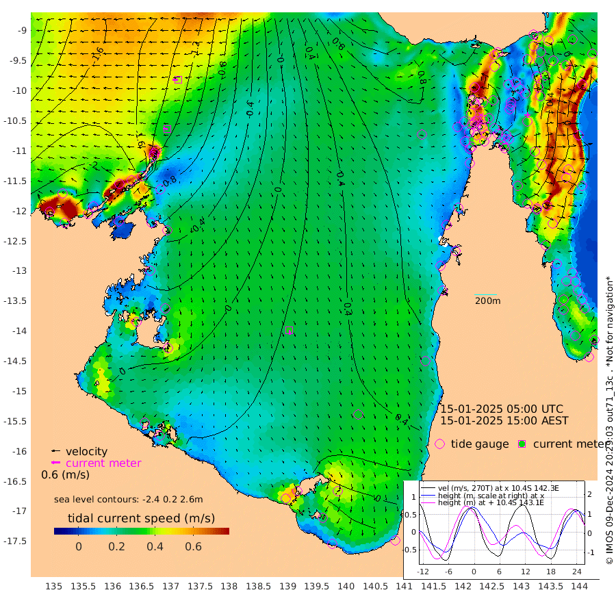 30cm/s -87T +3cm/s rms + 7cm/s -42T. ARA-GOC87 57m 34cm/s 170T +3cm/s rms + 2cm/s -2T. ARA-GOC87 60m 41cm/s -93T +2cm/s rms + 3cm/s 61T. ARA-GOC87 47m 79cm Daru 58cm Bobo Island 3cm Meer Island Barge 7cm Bramble Cay 39cm Unnamed Cay 44cm Pearce Cay 35cm Stephens Island 28cm Merrie England Shoals 63cm Mutacomal Reef 32cm Darnley Island Barge 3cm East Cay 55cm Yorke Island Barge 61cm Rennel Island 61cm Aureed Island 90cm Dungeness Reef 122cm Zagai Island 131cm Yam Island 168cm Dauan Island 156cm Saibai Island 158cm Phipi Reef 144cm Warrior Reef - West 135cm Mabuiag Island Barge 61cm Half Way Island 82cm Coconut Island 81cm Dugong Islet 105cm Poll Island 113cm Kirkcaldie Reef 133cm Suarji Island 112cm Sue Islet 117cm Hawkesbury Island 133cm Alert Patches 129cm Twin Island 119cm Badu Island 146cm St Pauls (Moa Island) 121cm Kubin (Moa Island) 133cm Ince Point 131cm Thursday Island 132cm Nardana Patches 126cm Turtle Head 110cm Round Island 105cm Goods Island 103cm Booby Island 91cm White Rocks Area 93cm Carpentaria 121cm Papou Point 98cm Bampfield Head 95cm Crab Island 106cm Red Wallis Island 118cm Packe Island 86cm Harrington Reef 130cm Herald Camp 51cm Sharp Point 114cm Red Island Point 116cm Possession Island 109cm Alpha Rock 111cm Frederick Point 68cm Wyborn Reef Light 79cm Tetley Island 19cm Triangle Reef 69cm Turtle Head Island 15cm Maclennan Cay -8cm Raine Island 43cm Mcsweeny Reef 31cm Collette Reef 10cm Shadwell Reef 23cm Hannibal Island 6cm Round Point 90cm Vrilya Point 9cm Cape Grenville 10cm Hicks Island 18cm Sir Charles Hardy Island 6cm Harvey Island -8cm Kay Reef -5cm Rocky Island -13cm Chapman Island -7cm Ham Reef -4cm Jubilee Reef 0cm Night Island -7cm Unnamed Reef No. 3 -9cm Morris Island -4cm 1st 3 Mile Opening -2cm Creech Reef -1cm Fife Island -26cm Eden Reef -11cm Stanley Island -19cm Normanby River -219cm Yabooma Island -248cm Hutchison River -229cm Elcho Island -215cm North West Crocodile Island -149cm Cape Wessel -212cm Stevens Island -118cm Guluwuru Island -199cm Hopeful Bay -167cm Auster Point -163cm Two Island Bay -196cm Cadell Strait -98cm Mallison Island -117cm Melville Bay (Gove Harbour) -120cm Truant Island -73cm Cape Arnhem -58cm Cape Grey -54cm Hawk Island -53cm Milner Bay (Groote Eylandt) -35cm Cape Beatrice -4cm West Island -7cm Centre Island 15cm Mornington Island 14cm West Wellesley Islands -4cm Bountiful Island -52cm Albert River Mouth -76cm Sweers Island -25cm Karumba 50cm Nassau River Offshore 79cm Christmas Creek 67cm Archer River 80cm Boyd Point 75cm Weipa (Humbug Point) 67cm Pennefather River 91cm Cullen Point