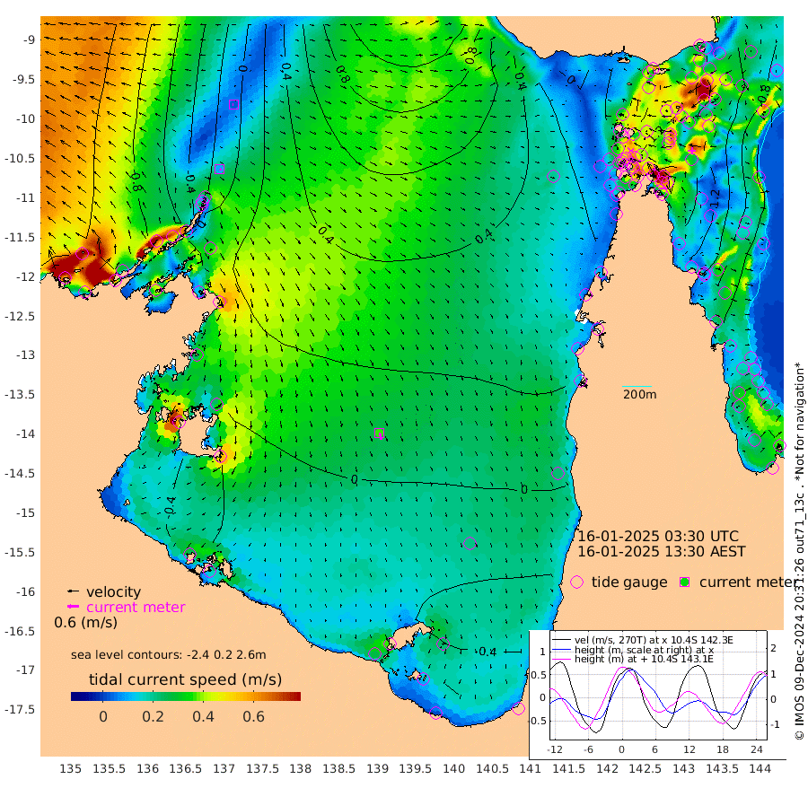 10cm/s 117T +3cm/s rms + 7cm/s -42T. ARA-GOC87 57m 36cm/s 166T +3cm/s rms + 2cm/s -2T. ARA-GOC87 60m 3cm/s -95T +2cm/s rms + 3cm/s 61T. ARA-GOC87 47m 152cm Daru 149cm Bobo Island 79cm Meer Island Barge 100cm Bramble Cay 128cm Unnamed Cay 143cm Pearce Cay 127cm Stephens Island 121cm Merrie England Shoals 145cm Mutacomal Reef 119cm Darnley Island Barge 89cm East Cay 136cm Yorke Island Barge 142cm Rennel Island 145cm Aureed Island 149cm Dungeness Reef 150cm Zagai Island 153cm Yam Island 147cm Dauan Island 140cm Saibai Island 135cm Phipi Reef 166cm Warrior Reef - West 112cm Mabuiag Island Barge 137cm Half Way Island 150cm Coconut Island 151cm Dugong Islet 151cm Poll Island 150cm Kirkcaldie Reef 151cm Suarji Island 149cm Sue Islet 93cm Hawkesbury Island 142cm Alert Patches 149cm Twin Island 88cm Badu Island 152cm St Pauls (Moa Island) 107cm Kubin (Moa Island) 128cm Ince Point 116cm Thursday Island 119cm Nardana Patches 105cm Turtle Head 88cm Round Island 76cm Goods Island 56cm Booby Island 59cm White Rocks Area 43cm Carpentaria 131cm Papou Point 72cm Bampfield Head 43cm Crab Island 66cm Red Wallis Island 99cm Packe Island 161cm Harrington Reef 91cm Herald Camp 41cm Sharp Point 92cm Red Island Point 115cm Possession Island 138cm Alpha Rock 156cm Frederick Point 152cm Wyborn Reef Light 155cm Tetley Island 88cm Triangle Reef 155cm Turtle Head Island 85cm Maclennan Cay 55cm Raine Island 128cm Mcsweeny Reef 113cm Collette Reef 78cm Shadwell Reef 117cm Hannibal Island 106cm Round Point 33cm Vrilya Point 92cm Cape Grenville 91cm Hicks Island 100cm Sir Charles Hardy Island 31cm Harvey Island 75cm Kay Reef 67cm Rocky Island 63cm Chapman Island 62cm Ham Reef 65cm Jubilee Reef 64cm Night Island 63cm Unnamed Reef No. 3 66cm Morris Island 58cm 1st 3 Mile Opening 67cm Creech Reef 78cm Fife Island 64cm Eden Reef 64cm Stanley Island 72cm Normanby River -69cm Yabooma Island -67cm Hutchison River -81cm Elcho Island -81cm North West Crocodile Island -2cm Cape Wessel -51cm Stevens Island 33cm Guluwuru Island -55cm Hopeful Bay -25cm Auster Point -20cm Two Island Bay -11cm Cadell Strait 124cm Mallison Island 16cm Melville Bay (Gove Harbour) 25cm Truant Island 19cm Cape Arnhem -10cm Cape Grey -21cm Hawk Island -66cm Milner Bay (Groote Eylandt) -60cm Cape Beatrice -79cm West Island -85cm Centre Island -60cm Mornington Island -57cm West Wellesley Islands -86cm Bountiful Island -147cm Albert River Mouth -166cm Sweers Island -127cm Karumba -17cm Nassau River Offshore 26cm Christmas Creek 27cm Archer River 46cm Boyd Point 36cm Weipa (Humbug Point) 23cm Pennefather River 41cm Cullen Point