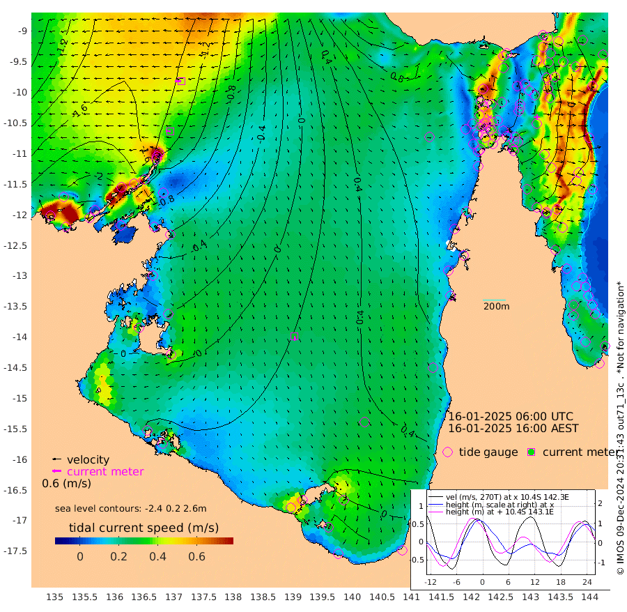33cm/s -85T +3cm/s rms + 7cm/s -42T. ARA-GOC87 57m 30cm/s 171T +3cm/s rms + 2cm/s -2T. ARA-GOC87 60m 43cm/s -92T +2cm/s rms + 3cm/s 61T. ARA-GOC87 47m 43cm Daru 25cm Bobo Island -10cm Meer Island Barge -13cm Bramble Cay 10cm Unnamed Cay 12cm Pearce Cay 9cm Stephens Island 1cm Merrie England Shoals 29cm Mutacomal Reef 9cm Darnley Island Barge -10cm East Cay 27cm Yorke Island Barge 29cm Rennel Island 29cm Aureed Island 54cm Dungeness Reef 83cm Zagai Island 94cm Yam Island 128cm Dauan Island 120cm Saibai Island 120cm Phipi Reef 103cm Warrior Reef - West 102cm Mabuiag Island Barge 31cm Half Way Island 45cm Coconut Island 47cm Dugong Islet 67cm Poll Island 77cm Kirkcaldie Reef 89cm Suarji Island 75cm Sue Islet 96cm Hawkesbury Island 92cm Alert Patches 89cm Twin Island 91cm Badu Island 104cm St Pauls (Moa Island) 94cm Kubin (Moa Island) 97cm Ince Point 98cm Thursday Island 98cm Nardana Patches 95cm Turtle Head 88cm Round Island 83cm Goods Island 87cm Booby Island 71cm White Rocks Area 85cm Carpentaria 87cm Papou Point 79cm Bampfield Head 84cm Crab Island 89cm Red Wallis Island 95cm Packe Island 48cm Harrington Reef 115cm Herald Camp 40cm Sharp Point 93cm Red Island Point 86cm Possession Island 73cm Alpha Rock 72cm Frederick Point 30cm Wyborn Reef Light 41cm Tetley Island 3cm Triangle Reef 32cm Turtle Head Island 2cm Maclennan Cay -15cm Raine Island 15cm Mcsweeny Reef 7cm Collette Reef -4cm Shadwell Reef -1cm Hannibal Island -14cm Round Point 84cm Vrilya Point -7cm Cape Grenville -4cm Hicks Island 3cm Sir Charles Hardy Island 2cm Harvey Island -19cm Kay Reef -14cm Rocky Island -21cm Chapman Island -13cm Ham Reef -13cm Jubilee Reef -9cm Night Island -14cm Unnamed Reef No. 3 -18cm Morris Island -13cm 1st 3 Mile Opening -11cm Creech Reef -12cm Fife Island -33cm Eden Reef -18cm Stanley Island -27cm Normanby River -219cm Yabooma Island -252cm Hutchison River -227cm Elcho Island -212cm North West Crocodile Island -154cm Cape Wessel -215cm Stevens Island -130cm Guluwuru Island -198cm Hopeful Bay -172cm Auster Point -164cm Two Island Bay -202cm Cadell Strait -115cm Mallison Island -127cm Melville Bay (Gove Harbour) -133cm Truant Island -82cm Cape Arnhem -63cm Cape Grey -55cm Hawk Island -48cm Milner Bay (Groote Eylandt) -29cm Cape Beatrice 6cm West Island 6cm Centre Island 25cm Mornington Island 20cm West Wellesley Islands 5cm Bountiful Island -36cm Albert River Mouth -57cm Sweers Island -6cm Karumba 55cm Nassau River Offshore 79cm Christmas Creek 65cm Archer River 74cm Boyd Point 69cm Weipa (Humbug Point) 64cm Pennefather River 86cm Cullen Point