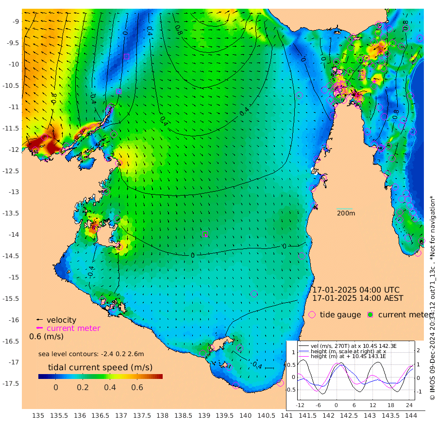 9cm/s 104T +3cm/s rms + 7cm/s -42T. ARA-GOC87 57m 33cm/s 166T +3cm/s rms + 2cm/s -2T. ARA-GOC87 60m 2cm/s -22T +2cm/s rms + 3cm/s 61T. ARA-GOC87 47m 128cm Daru 126cm Bobo Island 67cm Meer Island Barge 85cm Bramble Cay 106cm Unnamed Cay 118cm Pearce Cay 106cm Stephens Island 99cm Merrie England Shoals 121cm Mutacomal Reef 100cm Darnley Island Barge 76cm East Cay 114cm Yorke Island Barge 118cm Rennel Island 121cm Aureed Island 122cm Dungeness Reef 129cm Zagai Island 129cm Yam Island 130cm Dauan Island 125cm Saibai Island 113cm Phipi Reef 144cm Warrior Reef - West 93cm Mabuiag Island Barge 111cm Half Way Island 124cm Coconut Island 123cm Dugong Islet 125cm Poll Island 122cm Kirkcaldie Reef 123cm Suarji Island 124cm Sue Islet 71cm Hawkesbury Island 112cm Alert Patches 120cm Twin Island 66cm Badu Island 123cm St Pauls (Moa Island) 85cm Kubin (Moa Island) 102cm Ince Point 90cm Thursday Island 93cm Nardana Patches 80cm Turtle Head 70cm Round Island 53cm Goods Island 34cm Booby Island 37cm White Rocks Area 26cm Carpentaria 107cm Papou Point 53cm Bampfield Head 25cm Crab Island 46cm Red Wallis Island 77cm Packe Island 130cm Harrington Reef 74cm Herald Camp 34cm Sharp Point 69cm Red Island Point 91cm Possession Island 115cm Alpha Rock 128cm Frederick Point 128cm Wyborn Reef Light 131cm Tetley Island 76cm Triangle Reef 124cm Turtle Head Island 72cm Maclennan Cay 46cm Raine Island 106cm Mcsweeny Reef 95cm Collette Reef 66cm Shadwell Reef 97cm Hannibal Island 89cm Round Point 14cm Vrilya Point 77cm Cape Grenville 77cm Hicks Island 87cm Sir Charles Hardy Island 26cm Harvey Island 63cm Kay Reef 57cm Rocky Island 56cm Chapman Island 55cm Ham Reef 56cm Jubilee Reef 54cm Night Island 55cm Unnamed Reef No. 3 56cm Morris Island 47cm 1st 3 Mile Opening 56cm Creech Reef 70cm Fife Island 54cm Eden Reef 54cm Stanley Island 61cm Normanby River -49cm Yabooma Island -46cm Hutchison River -59cm Elcho Island -60cm North West Crocodile Island 15cm Cape Wessel -30cm Stevens Island 45cm Guluwuru Island -33cm Hopeful Bay -9cm Auster Point -2cm Two Island Bay 7cm Cadell Strait 154cm Mallison Island 28cm Melville Bay (Gove Harbour) 38cm Truant Island 27cm Cape Arnhem -5cm Cape Grey -13cm Hawk Island -59cm Milner Bay (Groote Eylandt) -55cm Cape Beatrice -77cm West Island -83cm Centre Island -57cm Mornington Island -56cm West Wellesley Islands -80cm Bountiful Island -133cm Albert River Mouth -150cm Sweers Island -116cm Karumba -19cm Nassau River Offshore 19cm Christmas Creek 17cm Archer River 35cm Boyd Point 25cm Weipa (Humbug Point) 8cm Pennefather River 28cm Cullen Point