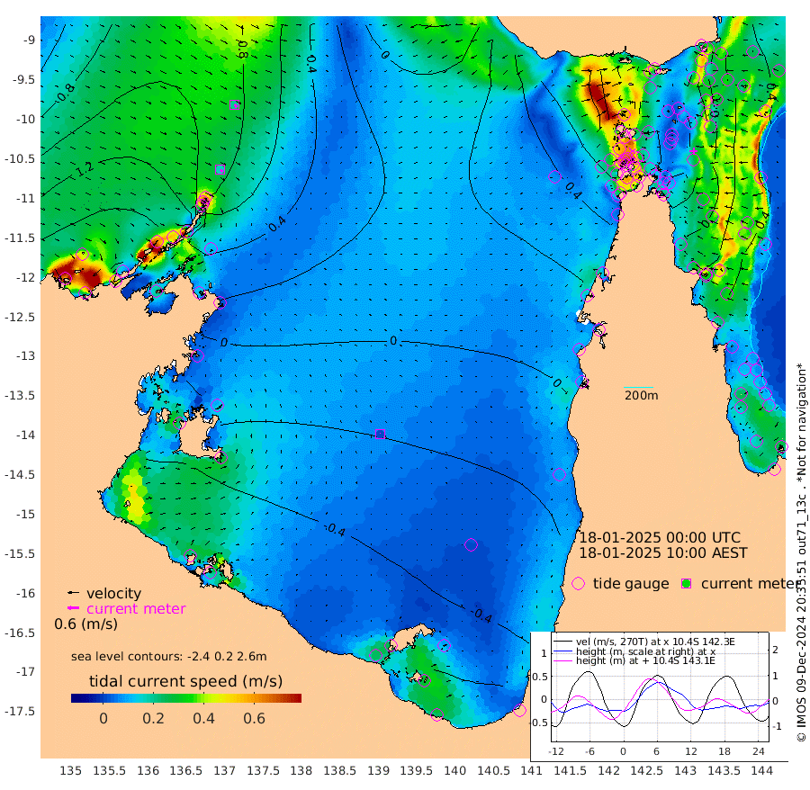 17cm/s 139T +3cm/s rms + 7cm/s -42T. ARA-GOC87 57m 2cm/s 25T +3cm/s rms + 2cm/s -2T. ARA-GOC87 60m 19cm/s 134T +2cm/s rms + 3cm/s 61T. ARA-GOC87 47m 4cm Daru 5cm Bobo Island 31cm Meer Island Barge 35cm Bramble Cay 30cm Unnamed Cay 18cm Pearce Cay 23cm Stephens Island 32cm Merrie England Shoals 20cm Mutacomal Reef 18cm Darnley Island Barge 33cm East Cay 10cm Yorke Island Barge 20cm Rennel Island 3cm Aureed Island 7cm Dungeness Reef -13cm Zagai Island -3cm Yam Island -10cm Dauan Island -17cm Saibai Island -20cm Phipi Reef -20cm Warrior Reef - West 19cm Mabuiag Island Barge 16cm Half Way Island 7cm Coconut Island 14cm Dugong Islet 5cm Poll Island 2cm Kirkcaldie Reef 2cm Suarji Island -2cm Sue Islet 105cm Hawkesbury Island 19cm Alert Patches 14cm Twin Island 80cm Badu Island 6cm St Pauls (Moa Island) 73cm Kubin (Moa Island) 29cm Ince Point 42cm Thursday Island 39cm Nardana Patches 63cm Turtle Head 85cm Round Island 101cm Goods Island 112cm Booby Island 116cm White Rocks Area 84cm Carpentaria 13cm Papou Point 136cm Bampfield Head 80cm Crab Island 101cm Red Wallis Island 79cm Packe Island 8cm Harrington Reef 99cm Herald Camp -15cm Sharp Point 45cm Red Island Point 37cm Possession Island 16cm Alpha Rock 10cm Frederick Point 22cm Wyborn Reef Light 19cm Tetley Island 28cm Triangle Reef 29cm Turtle Head Island 32cm Maclennan Cay 38cm Raine Island 20cm Mcsweeny Reef 23cm Collette Reef 31cm Shadwell Reef 27cm Hannibal Island 39cm Round Point 67cm Vrilya Point 35cm Cape Grenville 33cm Hicks Island 41cm Sir Charles Hardy Island 8cm Harvey Island 43cm Kay Reef 38cm Rocky Island 42cm Chapman Island 38cm Ham Reef 37cm Jubilee Reef 29cm Night Island 37cm Unnamed Reef No. 3 41cm Morris Island 45cm 1st 3 Mile Opening 37cm Creech Reef 25cm Fife Island 50cm Eden Reef 43cm Stanley Island 45cm Normanby River 178cm Yabooma Island 194cm Hutchison River 167cm Elcho Island 156cm North West Crocodile Island 101cm Cape Wessel 146cm Stevens Island 73cm Guluwuru Island 134cm Hopeful Bay 118cm Auster Point 115cm Two Island Bay 126cm Cadell Strait 7cm Mallison Island 68cm Melville Bay (Gove Harbour) 77cm Truant Island 35cm Cape Arnhem 9cm Cape Grey -5cm Hawk Island -33cm Milner Bay (Groote Eylandt) -43cm Cape Beatrice -84cm West Island -84cm Centre Island -109cm Mornington Island -101cm West Wellesley Islands -103cm Bountiful Island -115cm Albert River Mouth -132cm Sweers Island -126cm Karumba -83cm Nassau River Offshore -45cm Christmas Creek 9cm Archer River 29cm Boyd Point 41cm Weipa (Humbug Point) 30cm Pennefather River 59cm Cullen Point