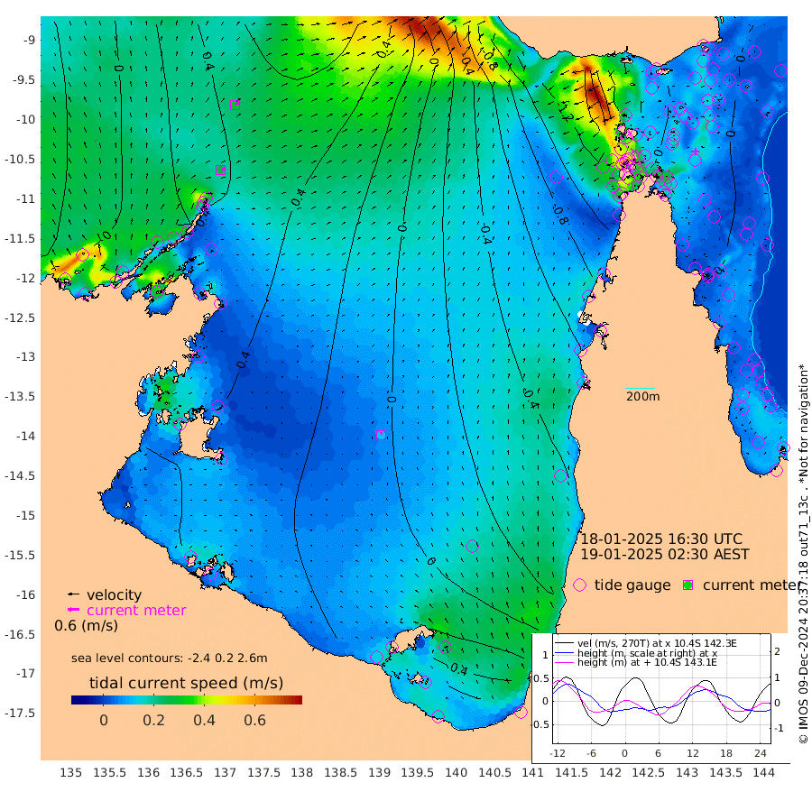 26cm/s 73T +3cm/s rms + 7cm/s -42T. ARA-GOC87 57m 13cm/s 1T +3cm/s rms + 2cm/s -2T. ARA-GOC87 60m 30cm/s 65T +2cm/s rms + 3cm/s 61T. ARA-GOC87 47m 3cm Daru 14cm Bobo Island -8cm Meer Island Barge -5cm Bramble Cay -8cm Unnamed Cay 6cm Pearce Cay -3cm Stephens Island -7cm Merrie England Shoals -7cm Mutacomal Reef 1cm Darnley Island Barge -10cm East Cay 3cm Yorke Island Barge -8cm Rennel Island 11cm Aureed Island -10cm Dungeness Reef 2cm Zagai Island -25cm Yam Island -27cm Dauan Island -16cm Saibai Island -24cm Phipi Reef -3cm Warrior Reef - West -49cm Mabuiag Island Barge -11cm Half Way Island 1cm Coconut Island -15cm Dugong Islet -13cm Poll Island -25cm Kirkcaldie Reef -20cm Suarji Island -9cm Sue Islet -153cm Hawkesbury Island -43cm Alert Patches -37cm Twin Island -111cm Badu Island -36cm St Pauls (Moa Island) -114cm Kubin (Moa Island) -62cm Ince Point -80cm Thursday Island -75cm Nardana Patches -102cm Turtle Head -127cm Round Island -139cm Goods Island -160cm Booby Island -151cm White Rocks Area -132cm Carpentaria -39cm Papou Point -167cm Bampfield Head -132cm Crab Island -151cm Red Wallis Island -128cm Packe Island -7cm Harrington Reef -172cm Herald Camp -4cm Sharp Point -92cm Red Island Point -69cm Possession Island -28cm Alpha Rock -21cm Frederick Point -2cm Wyborn Reef Light -5cm Tetley Island -9cm Triangle Reef -13cm Turtle Head Island -18cm Maclennan Cay -16cm Raine Island 0cm Mcsweeny Reef -1cm Collette Reef -9cm Shadwell Reef 0cm Hannibal Island -7cm Round Point -125cm Vrilya Point -15cm Cape Grenville -14cm Hicks Island -22cm Sir Charles Hardy Island -5cm Harvey Island -16cm Kay Reef -15cm Rocky Island -12cm Chapman Island -16cm Ham Reef -14cm Jubilee Reef -13cm Night Island -15cm Unnamed Reef No. 3 -15cm Morris Island -21cm 1st 3 Mile Opening -17cm Creech Reef 0cm Fife Island -16cm Eden Reef -20cm Stanley Island -17cm Normanby River -8cm Yabooma Island 11cm Hutchison River 9cm Elcho Island 2cm North West Crocodile Island 43cm Cape Wessel 34cm Stevens Island 72cm Guluwuru Island 24cm Hopeful Bay 32cm Auster Point 23cm Two Island Bay 55cm Cadell Strait 173cm Mallison Island 65cm Melville Bay (Gove Harbour) 67cm Truant Island 58cm Cape Arnhem 55cm Cape Grey 50cm Hawk Island 55cm Milner Bay (Groote Eylandt) 46cm Cape Beatrice 44cm West Island 40cm Centre Island 52cm Mornington Island 51cm West Wellesley Islands 57cm Bountiful Island 81cm Albert River Mouth 113cm Sweers Island 67cm Karumba 10cm Nassau River Offshore -28cm Christmas Creek -60cm Archer River -76cm Boyd Point -88cm Weipa (Humbug Point) -76cm Pennefather River -119cm Cullen Point