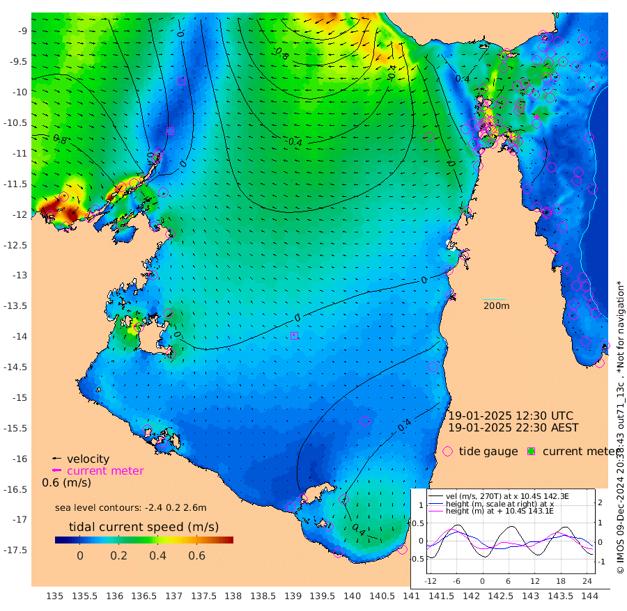 6cm/s -169T +3cm/s rms + 7cm/s -42T. ARA-GOC87 57m 12cm/s -55T +3cm/s rms + 2cm/s -2T. ARA-GOC87 60m 5cm/s 142T +2cm/s rms + 3cm/s 61T. ARA-GOC87 47m -32cm Daru -37cm Bobo Island -24cm Meer Island Barge -22cm Bramble Cay -28cm Unnamed Cay -26cm Pearce Cay -31cm Stephens Island -23cm Merrie England Shoals -28cm Mutacomal Reef -34cm Darnley Island Barge -24cm East Cay -37cm Yorke Island Barge -31cm Rennel Island -39cm Aureed Island -25cm Dungeness Reef -39cm Zagai Island -31cm Yam Island -19cm Dauan Island -35cm Saibai Island 6cm Phipi Reef -35cm Warrior Reef - West -14cm Mabuiag Island Barge -28cm Half Way Island -35cm Coconut Island -33cm Dugong Islet -30cm Poll Island -25cm Kirkcaldie Reef -33cm Suarji Island -37cm Sue Islet 26cm Hawkesbury Island -20cm Alert Patches -26cm Twin Island 21cm Badu Island -26cm St Pauls (Moa Island) 5cm Kubin (Moa Island) -15cm Ince Point -7cm Thursday Island -9cm Nardana Patches 5cm Turtle Head 10cm Round Island 19cm Goods Island 18cm Booby Island 18cm White Rocks Area -30cm Carpentaria -23cm Papou Point -7cm Bampfield Head 23cm Crab Island 13cm Red Wallis Island 9cm Packe Island -38cm Harrington Reef 9cm Herald Camp -9cm Sharp Point 14cm Red Island Point -9cm Possession Island -35cm Alpha Rock -32cm Frederick Point -36cm Wyborn Reef Light -37cm Tetley Island -25cm Triangle Reef -26cm Turtle Head Island -27cm Maclennan Cay -16cm Raine Island -32cm Mcsweeny Reef -28cm Collette Reef -21cm Shadwell Reef -28cm Hannibal Island -20cm Round Point 18cm Vrilya Point -24cm Cape Grenville -22cm Hicks Island -36cm Sir Charles Hardy Island -8cm Harvey Island -23cm Kay Reef -20cm Rocky Island -18cm Chapman Island -24cm Ham Reef -22cm Jubilee Reef -19cm Night Island -23cm Unnamed Reef No. 3 -20cm Morris Island -19cm 1st 3 Mile Opening -22cm Creech Reef -26cm Fife Island -19cm Eden Reef -19cm Stanley Island -20cm Normanby River 88cm Yabooma Island 86cm Hutchison River 79cm Elcho Island 87cm North West Crocodile Island -3cm Cape Wessel 59cm Stevens Island -27cm Guluwuru Island 58cm Hopeful Bay 29cm Auster Point 29cm Two Island Bay 54cm Cadell Strait -112cm Mallison Island -8cm Melville Bay (Gove Harbour) -17cm Truant Island -18cm Cape Arnhem -4cm Cape Grey 8cm Hawk Island 15cm Milner Bay (Groote Eylandt) 18cm Cape Beatrice 16cm West Island 20cm Centre Island 47cm Mornington Island 41cm West Wellesley Islands 71cm Bountiful Island 105cm Albert River Mouth 113cm Sweers Island 113cm Karumba 53cm Nassau River Offshore 32cm Christmas Creek 26cm Archer River 1cm Boyd Point 18cm Weipa (Humbug Point) 24cm Pennefather River 7cm Cullen Point