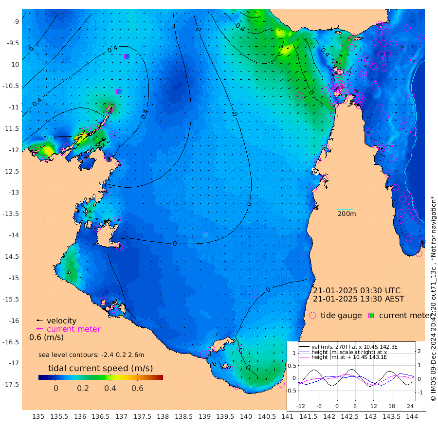 6cm/s 111T +3cm/s rms + 7cm/s -42T. ARA-GOC87 57m 11cm/s -162T +3cm/s rms + 2cm/s -2T. ARA-GOC87 60m 5cm/s 86T +2cm/s rms + 3cm/s 61T. ARA-GOC87 47m 43cm Daru 32cm Bobo Island 18cm Meer Island Barge 26cm Bramble Cay 36cm Unnamed Cay 28cm Pearce Cay 27cm Stephens Island 27cm Merrie England Shoals 40cm Mutacomal Reef 24cm Darnley Island Barge 19cm East Cay 30cm Yorke Island Barge 37cm Rennel Island 27cm Aureed Island 41cm Dungeness Reef 55cm Zagai Island 59cm Yam Island 90cm Dauan Island 77cm Saibai Island 70cm Phipi Reef 67cm Warrior Reef - West 62cm Mabuiag Island Barge 27cm Half Way Island 36cm Coconut Island 35cm Dugong Islet 44cm Poll Island 40cm Kirkcaldie Reef 50cm Suarji Island 44cm Sue Islet 60cm Hawkesbury Island 45cm Alert Patches 45cm Twin Island 66cm Badu Island 52cm St Pauls (Moa Island) 60cm Kubin (Moa Island) 50cm Ince Point 47cm Thursday Island 50cm Nardana Patches 56cm Turtle Head 54cm Round Island 55cm Goods Island 41cm Booby Island 46cm White Rocks Area 5cm Carpentaria 44cm Papou Point 51cm Bampfield Head 27cm Crab Island 40cm Red Wallis Island 50cm Packe Island 29cm Harrington Reef 56cm Herald Camp 10cm Sharp Point 37cm Red Island Point 38cm Possession Island 46cm Alpha Rock 41cm Frederick Point 44cm Wyborn Reef Light 46cm Tetley Island 23cm Triangle Reef 33cm Turtle Head Island 20cm Maclennan Cay 18cm Raine Island 30cm Mcsweeny Reef 27cm Collette Reef 22cm Shadwell Reef 26cm Hannibal Island 25cm Round Point 4cm Vrilya Point 18cm Cape Grenville 23cm Hicks Island 33cm Sir Charles Hardy Island 6cm Harvey Island 16cm Kay Reef 19cm Rocky Island 18cm Chapman Island 16cm Ham Reef 19cm Jubilee Reef 12cm Night Island 14cm Unnamed Reef No. 3 17cm Morris Island 20cm 1st 3 Mile Opening 15cm Creech Reef 19cm Fife Island 16cm Eden Reef 14cm Stanley Island 15cm Normanby River 102cm Yabooma Island 117cm Hutchison River 92cm Elcho Island 87cm North West Crocodile Island 66cm Cape Wessel 88cm Stevens Island 77cm Guluwuru Island 74cm Hopeful Bay 68cm Auster Point 69cm Two Island Bay 99cm Cadell Strait 91cm Mallison Island 68cm Melville Bay (Gove Harbour) 72cm Truant Island 44cm Cape Arnhem 23cm Cape Grey 8cm Hawk Island -19cm Milner Bay (Groote Eylandt) -21cm Cape Beatrice -53cm West Island -63cm Centre Island -33cm Mornington Island -26cm West Wellesley Islands -11cm Bountiful Island -13cm Albert River Mouth -40cm Sweers Island -24cm Karumba -12cm Nassau River Offshore 5cm Christmas Creek 8cm Archer River 17cm Boyd Point 26cm Weipa (Humbug Point) -8cm Pennefather River 15cm Cullen Point