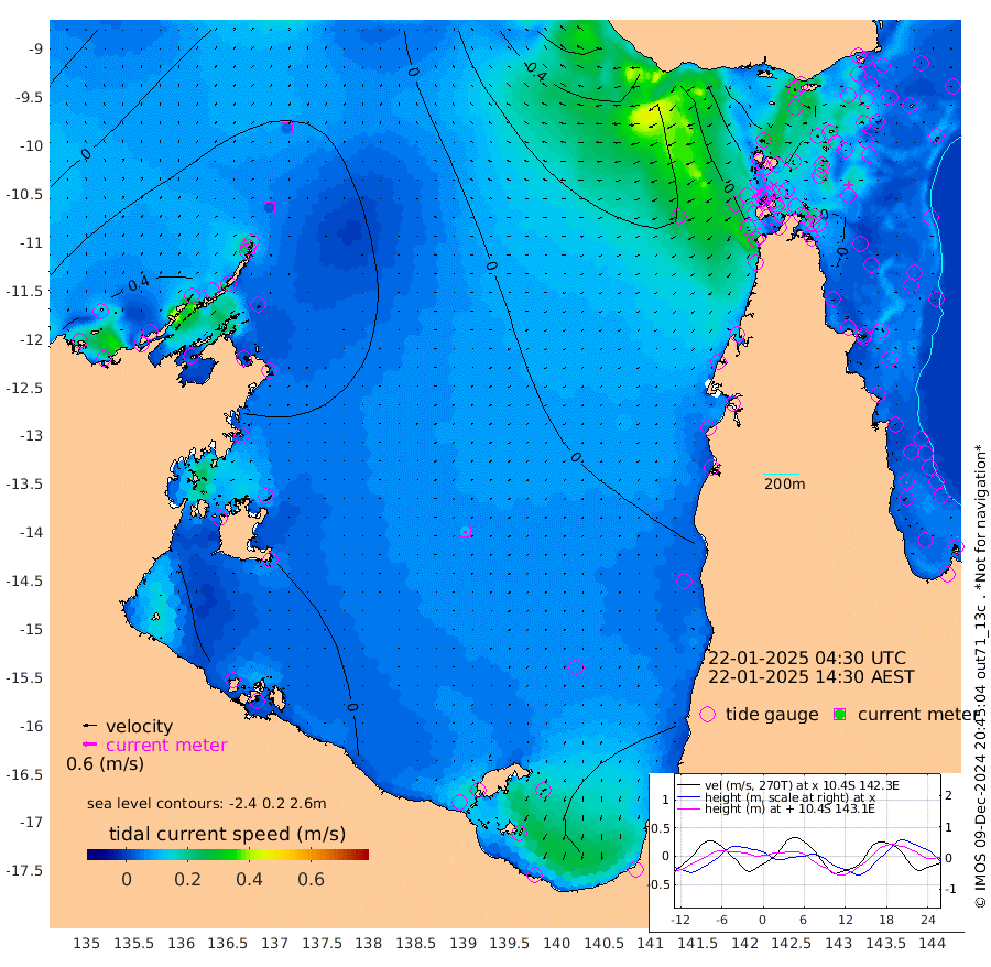 2cm/s 31T +3cm/s rms + 7cm/s -42T. ARA-GOC87 57m 11cm/s -155T +3cm/s rms + 2cm/s -2T. ARA-GOC87 60m 4cm/s 2T +2cm/s rms + 3cm/s 61T. ARA-GOC87 47m 25cm Daru 14cm Bobo Island 7cm Meer Island Barge 9cm Bramble Cay 16cm Unnamed Cay 6cm Pearce Cay 9cm Stephens Island 7cm Merrie England Shoals 18cm Mutacomal Reef 10cm Darnley Island Barge 7cm East Cay 15cm Yorke Island Barge 16cm Rennel Island 9cm Aureed Island 21cm Dungeness Reef 41cm Zagai Island 43cm Yam Island 80cm Dauan Island 70cm Saibai Island 61cm Phipi Reef 54cm Warrior Reef - West 45cm Mabuiag Island Barge 8cm Half Way Island 15cm Coconut Island 15cm Dugong Islet 23cm Poll Island 22cm Kirkcaldie Reef 27cm Suarji Island 27cm Sue Islet 27cm Hawkesbury Island 21cm Alert Patches 21cm Twin Island 39cm Badu Island 30cm St Pauls (Moa Island) 31cm Kubin (Moa Island) 26cm Ince Point 22cm Thursday Island 25cm Nardana Patches 29cm Turtle Head 25cm Round Island 23cm Goods Island 10cm Booby Island 11cm White Rocks Area -18cm Carpentaria 25cm Papou Point 13cm Bampfield Head 5cm Crab Island 9cm Red Wallis Island 20cm Packe Island 6cm Harrington Reef 28cm Herald Camp 8cm Sharp Point 17cm Red Island Point 14cm Possession Island 24cm Alpha Rock 18cm Frederick Point 19cm Wyborn Reef Light 21cm Tetley Island 9cm Triangle Reef 7cm Turtle Head Island 8cm Maclennan Cay 8cm Raine Island 11cm Mcsweeny Reef 10cm Collette Reef 11cm Shadwell Reef 8cm Hannibal Island 6cm Round Point -14cm Vrilya Point 2cm Cape Grenville 9cm Hicks Island 20cm Sir Charles Hardy Island 2cm Harvey Island 3cm Kay Reef 8cm Rocky Island 6cm Chapman Island 7cm Ham Reef 9cm Jubilee Reef 2cm Night Island 4cm Unnamed Reef No. 3 6cm Morris Island 9cm 1st 3 Mile Opening 5cm Creech Reef 8cm Fife Island 4cm Eden Reef 3cm Stanley Island 2cm Normanby River 64cm Yabooma Island 76cm Hutchison River 58cm Elcho Island 56cm North West Crocodile Island 41cm Cape Wessel 55cm Stevens Island 62cm Guluwuru Island 45cm Hopeful Bay 40cm Auster Point 43cm Two Island Bay 72cm Cadell Strait 93cm Mallison Island 51cm Melville Bay (Gove Harbour) 52cm Truant Island 35cm Cape Arnhem 22cm Cape Grey 8cm Hawk Island -10cm Milner Bay (Groote Eylandt) -9cm Cape Beatrice -32cm West Island -41cm Centre Island -2cm Mornington Island 1cm West Wellesley Islands 22cm Bountiful Island 26cm Albert River Mouth 0cm Sweers Island 17cm Karumba 10cm Nassau River Offshore 18cm Christmas Creek 7cm Archer River 10cm Boyd Point 17cm Weipa (Humbug Point) -17cm Pennefather River -1cm Cullen Point