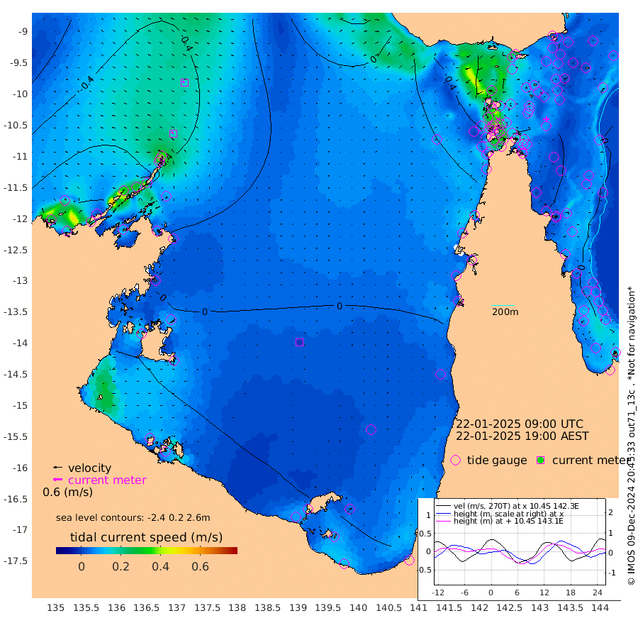 17cm/s -50T +3cm/s rms + 7cm/s -42T. ARA-GOC87 57m 0cm/s -94T +3cm/s rms + 2cm/s -2T. ARA-GOC87 60m 16cm/s -58T +2cm/s rms + 3cm/s 61T. ARA-GOC87 47m -5cm Daru -2cm Bobo Island -3cm Meer Island Barge 2cm Bramble Cay -1cm Unnamed Cay -8cm Pearce Cay -1cm Stephens Island 6cm Merrie England Shoals 5cm Mutacomal Reef -1cm Darnley Island Barge 3cm East Cay -4cm Yorke Island Barge -5cm Rennel Island -3cm Aureed Island -15cm Dungeness Reef -18cm Zagai Island -12cm Yam Island -44cm Dauan Island -29cm Saibai Island -45cm Phipi Reef -18cm Warrior Reef - West -44cm Mabuiag Island Barge -1cm Half Way Island -9cm Coconut Island -4cm Dugong Islet -14cm Poll Island -10cm Kirkcaldie Reef -30cm Suarji Island -14cm Sue Islet -67cm Hawkesbury Island -36cm Alert Patches -26cm Twin Island -74cm Badu Island -33cm St Pauls (Moa Island) -52cm Kubin (Moa Island) -38cm Ince Point -43cm Thursday Island -43cm Nardana Patches -55cm Turtle Head -56cm Round Island -67cm Goods Island -69cm Booby Island -64cm White Rocks Area -36cm Carpentaria -27cm Papou Point -76cm Bampfield Head -52cm Crab Island -51cm Red Wallis Island -41cm Packe Island -5cm Harrington Reef -49cm Herald Camp -1cm Sharp Point -42cm Red Island Point -42cm Possession Island -11cm Alpha Rock -17cm Frederick Point -6cm Wyborn Reef Light -7cm Tetley Island -3cm Triangle Reef -25cm Turtle Head Island -1cm Maclennan Cay -6cm Raine Island -3cm Mcsweeny Reef -1cm Collette Reef -3cm Shadwell Reef 2cm Hannibal Island 2cm Round Point -42cm Vrilya Point 7cm Cape Grenville -1cm Hicks Island 4cm Sir Charles Hardy Island 1cm Harvey Island 7cm Kay Reef -1cm Rocky Island 0cm Chapman Island 1cm Ham Reef -2cm Jubilee Reef 2cm Night Island 4cm Unnamed Reef No. 3 -1cm Morris Island -13cm 1st 3 Mile Opening -2cm Creech Reef 2cm Fife Island 0cm Eden Reef 2cm Stanley Island 6cm Normanby River -90cm Yabooma Island -107cm Hutchison River -86cm Elcho Island -79cm North West Crocodile Island -42cm Cape Wessel -70cm Stevens Island -43cm Guluwuru Island -61cm Hopeful Bay -64cm Auster Point -55cm Two Island Bay -81cm Cadell Strait 40cm Mallison Island -46cm Melville Bay (Gove Harbour) -49cm Truant Island -29cm Cape Arnhem -24cm Cape Grey -8cm Hawk Island 9cm Milner Bay (Groote Eylandt) 17cm Cape Beatrice 41cm West Island 43cm Centre Island 45cm Mornington Island 43cm West Wellesley Islands 30cm Bountiful Island 40cm Albert River Mouth 29cm Sweers Island 40cm Karumba 36cm Nassau River Offshore 21cm Christmas Creek -10cm Archer River -20cm Boyd Point -26cm Weipa (Humbug Point) -29cm Pennefather River -28cm Cullen Point
